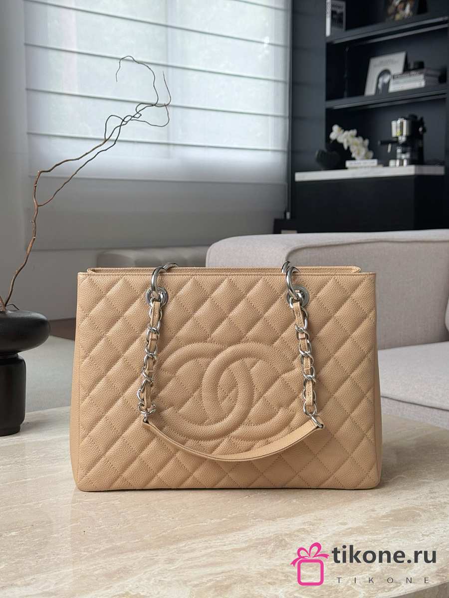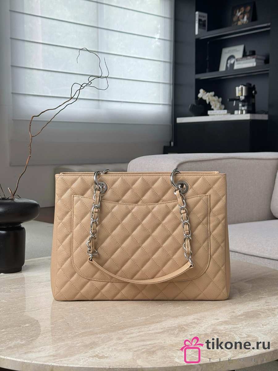 Chanel Quilted Caviar Leather Grand Shopper Tote Beige Silver Hardware - 33.5x24x12.5cm