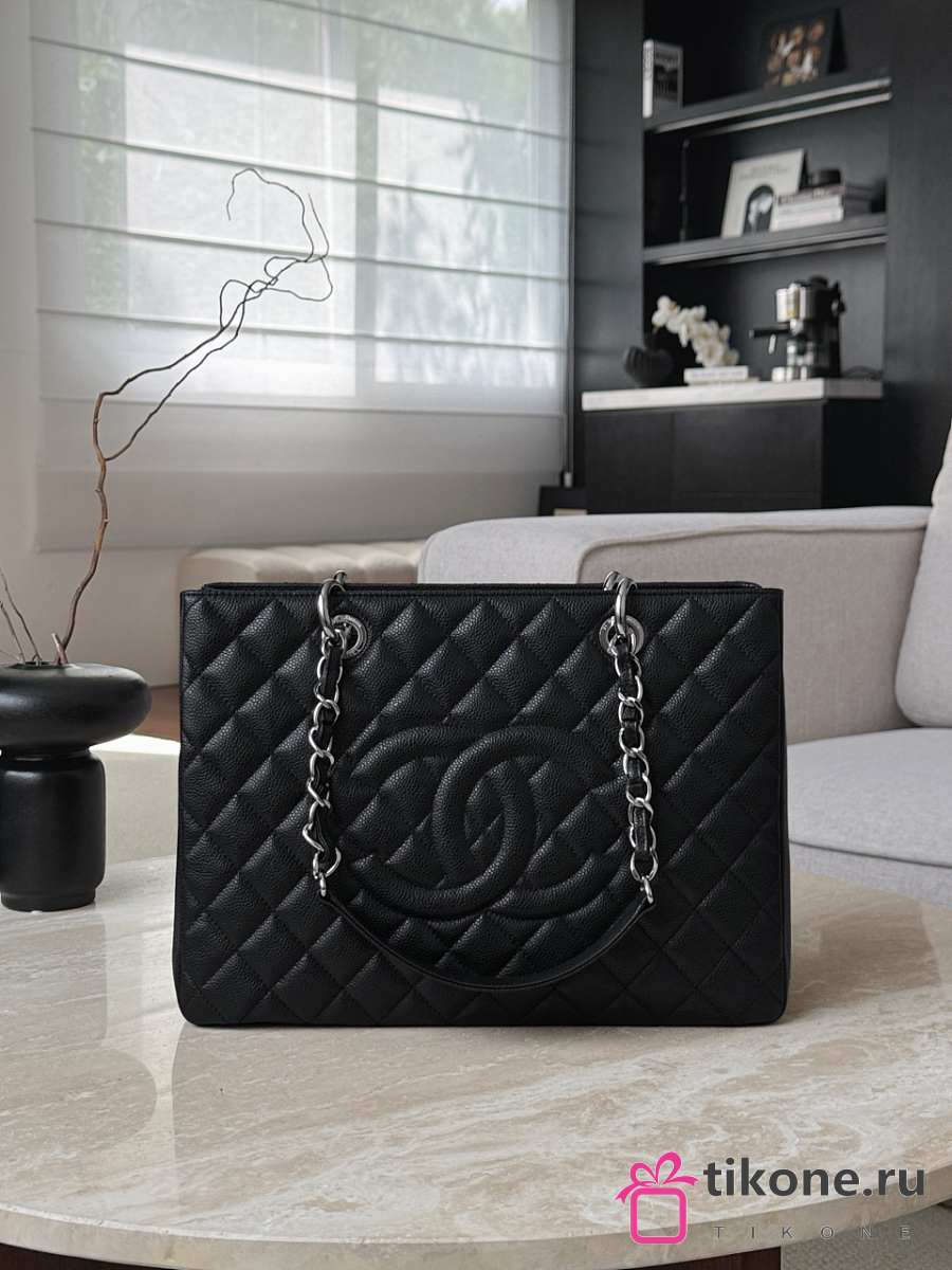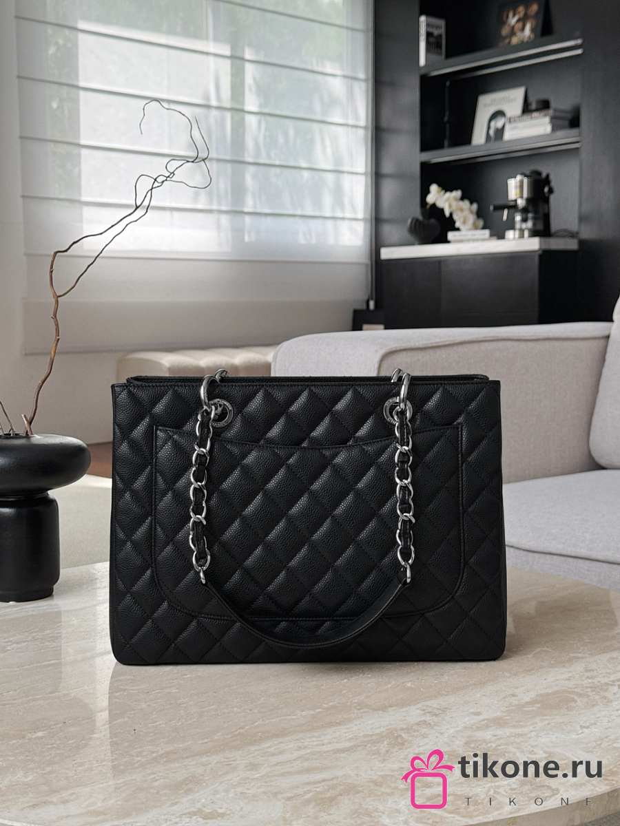 Chanel Quilted Caviar Leather Grand Shopper Tote Black Silver Hardware - 33.5x24x12.5cm