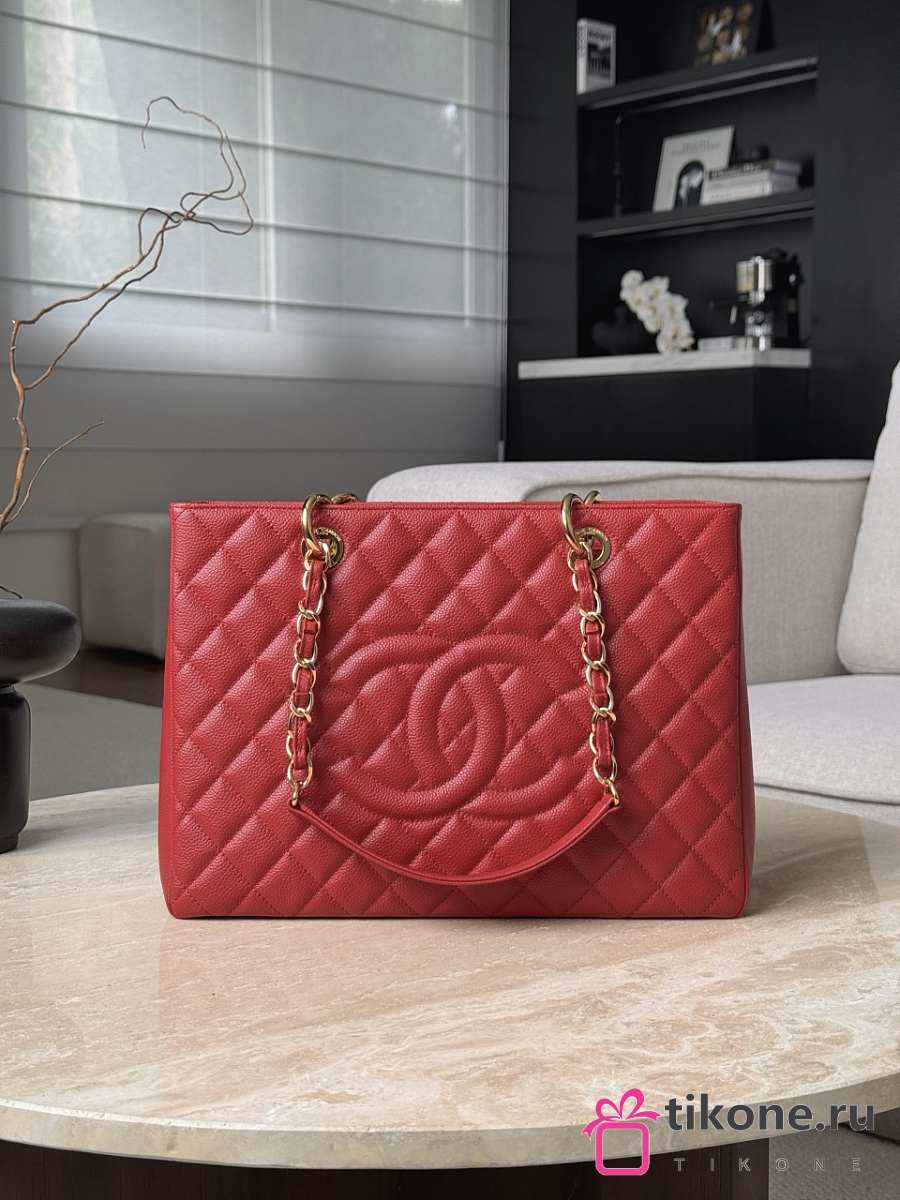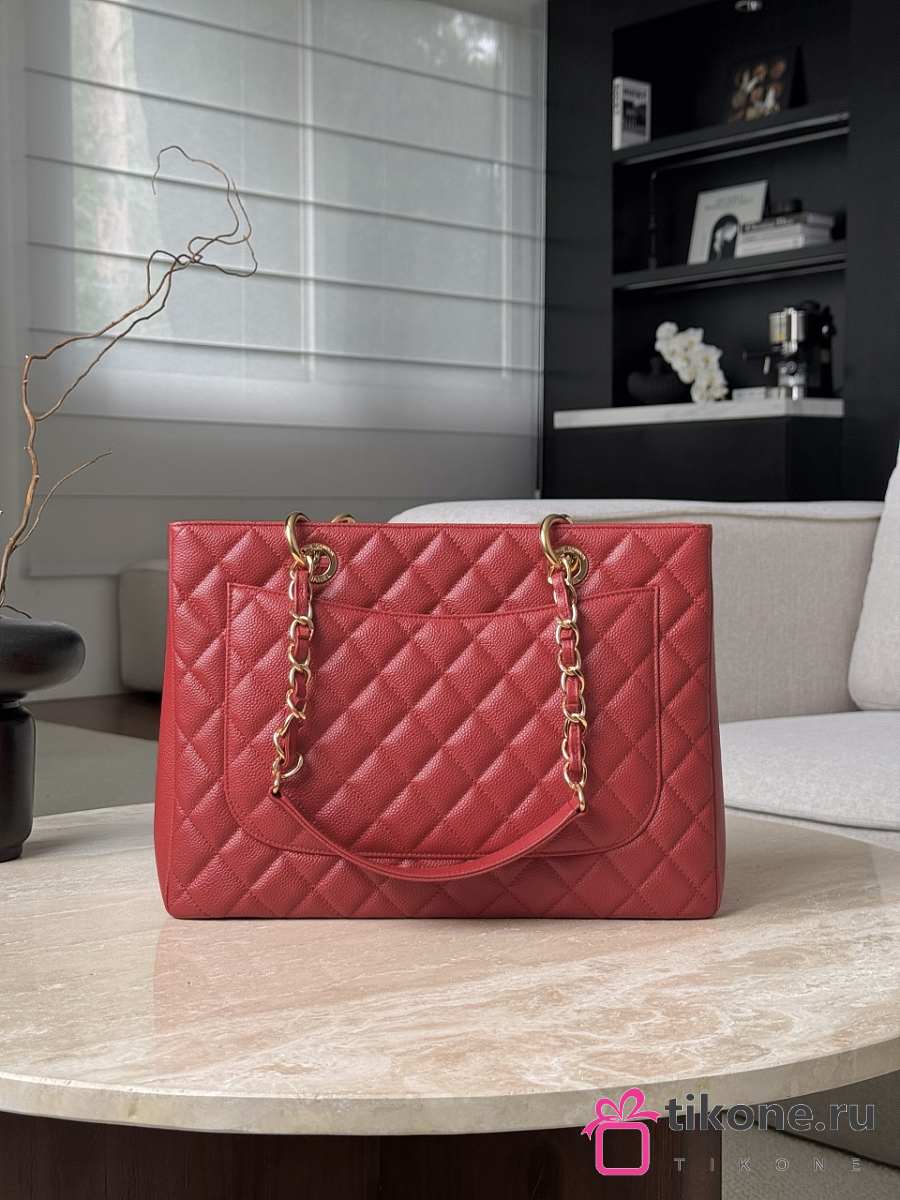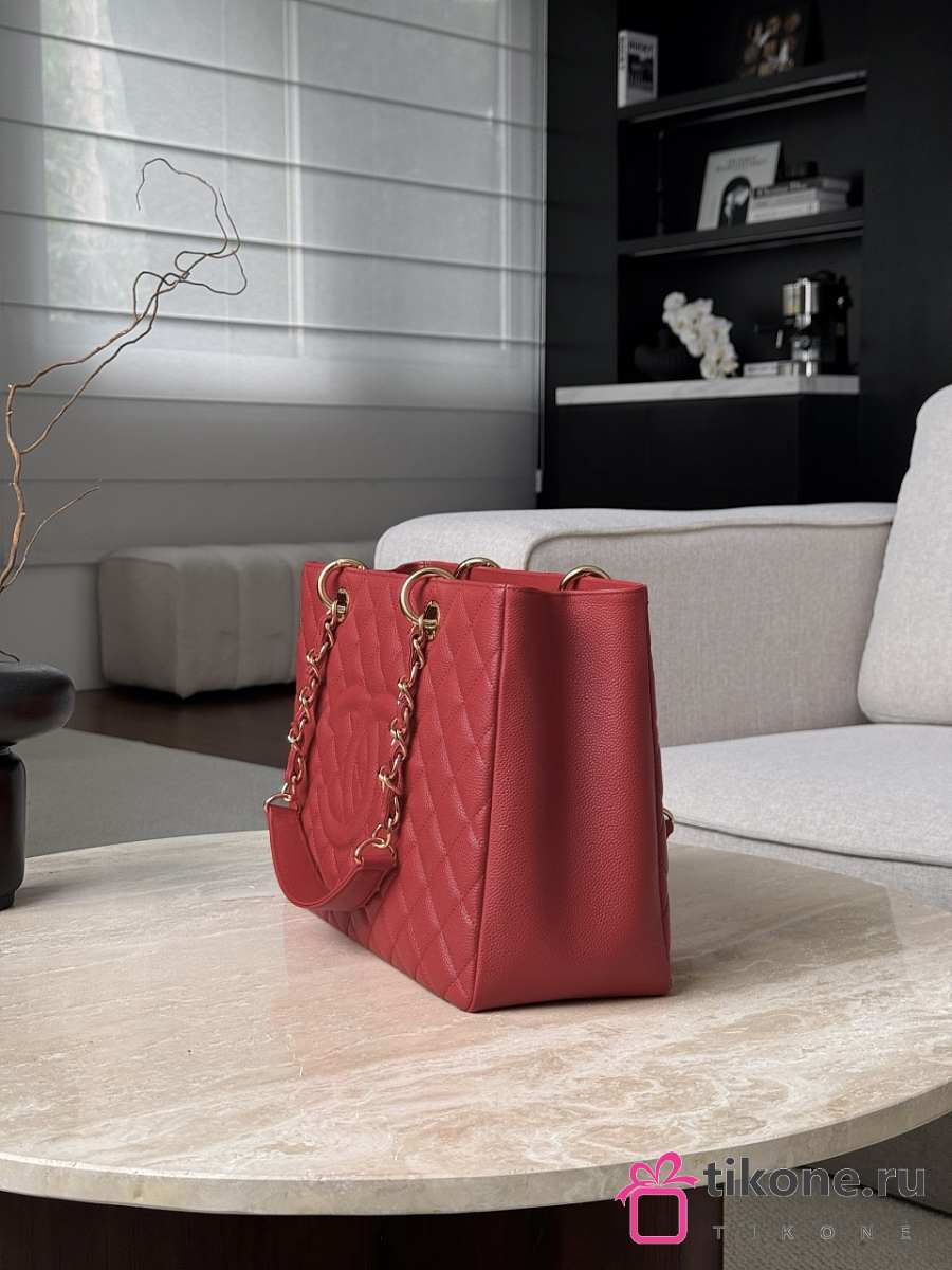 Chanel Quilted Caviar Leather Grand Shopper Tote Red Gold Hardware - 33.5x24x12.5cm