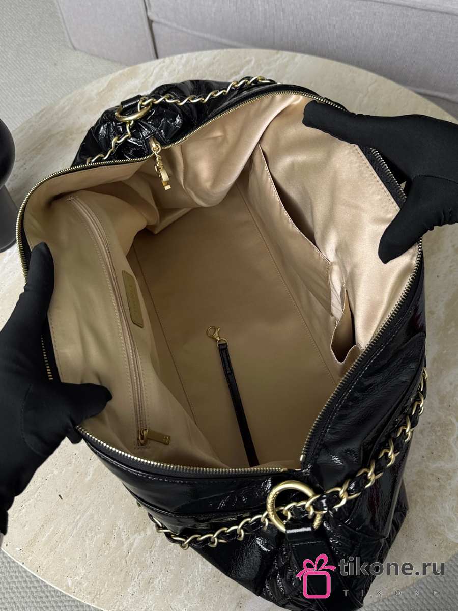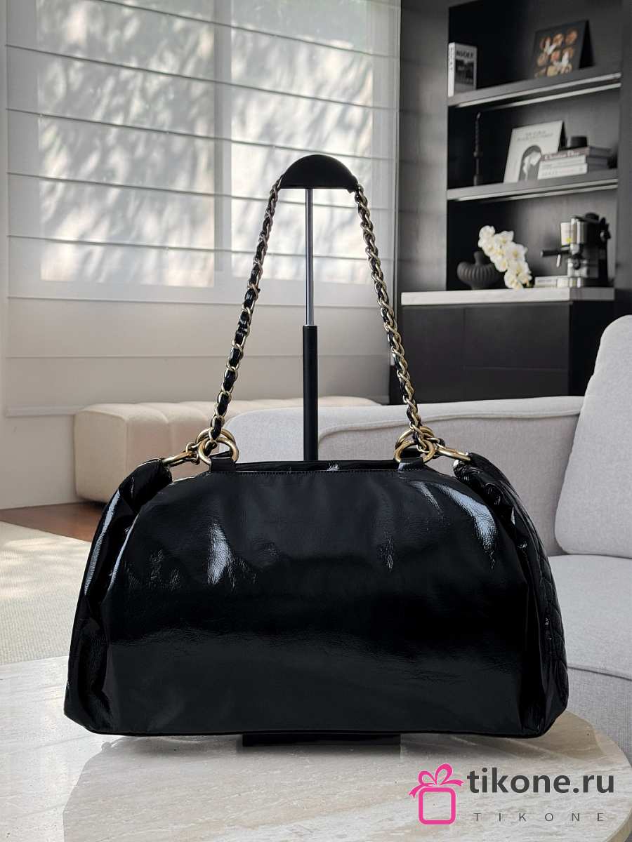 Chanel Rock Chain Bowler Bag Patent Leather Black - 56x26x16
