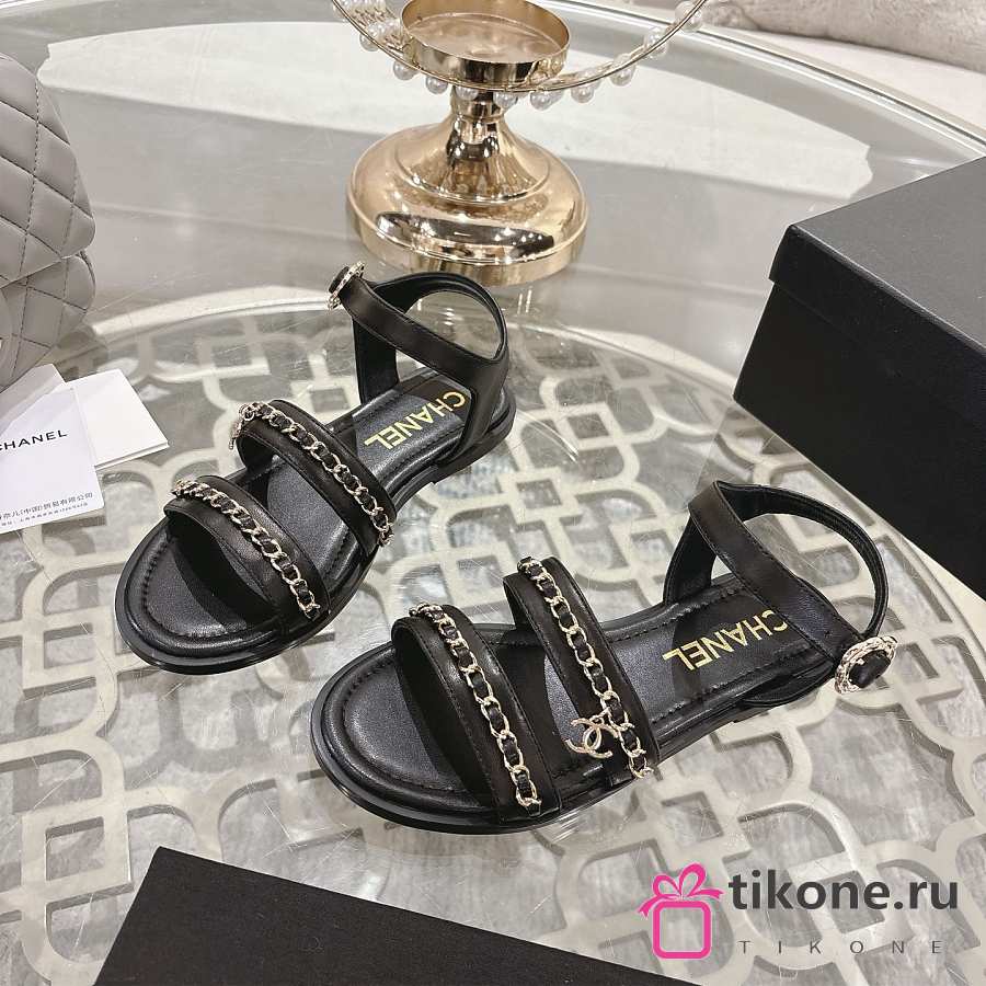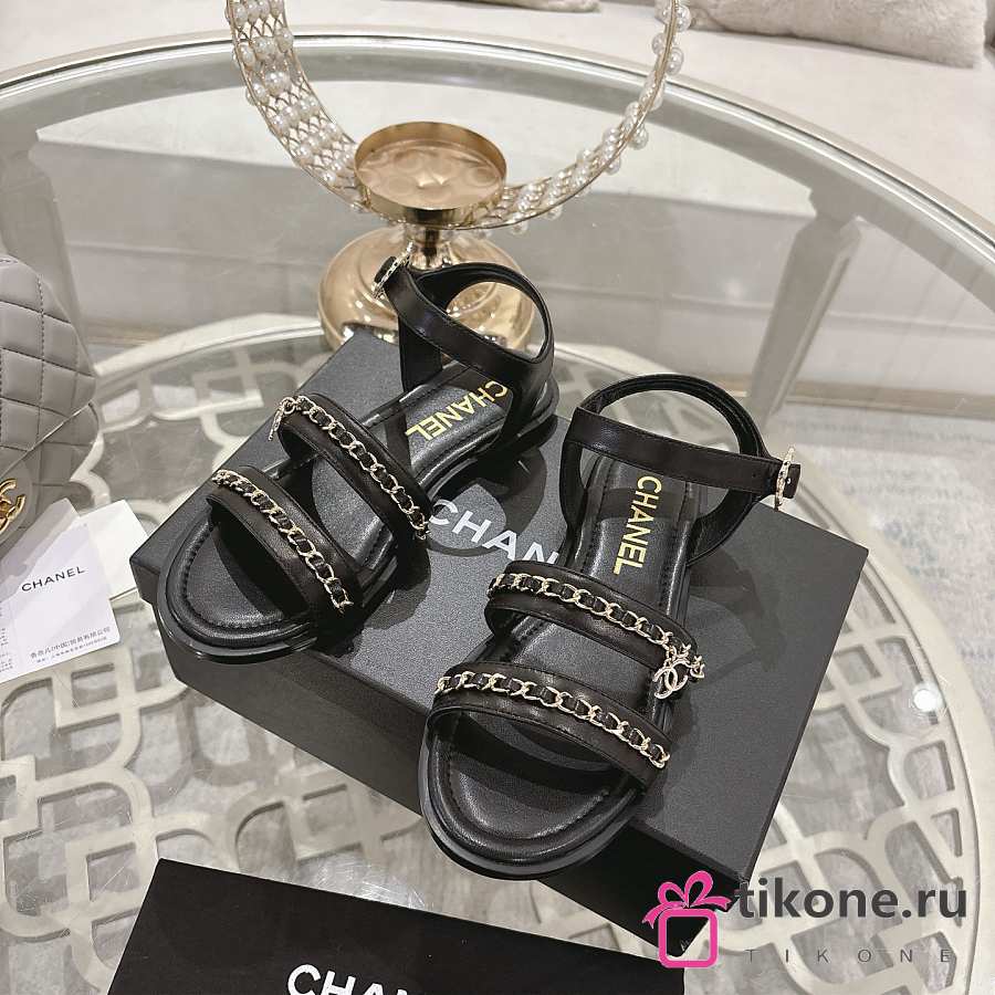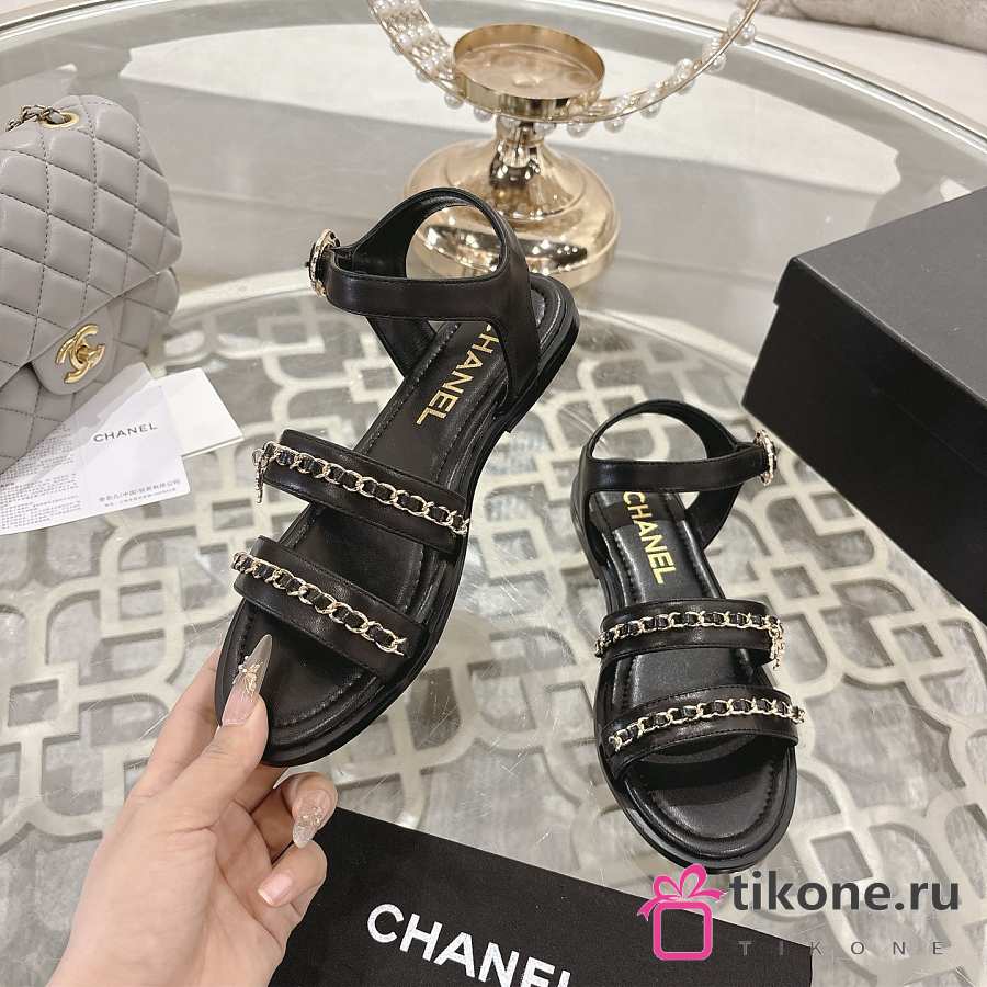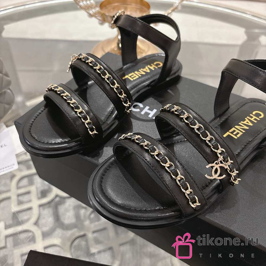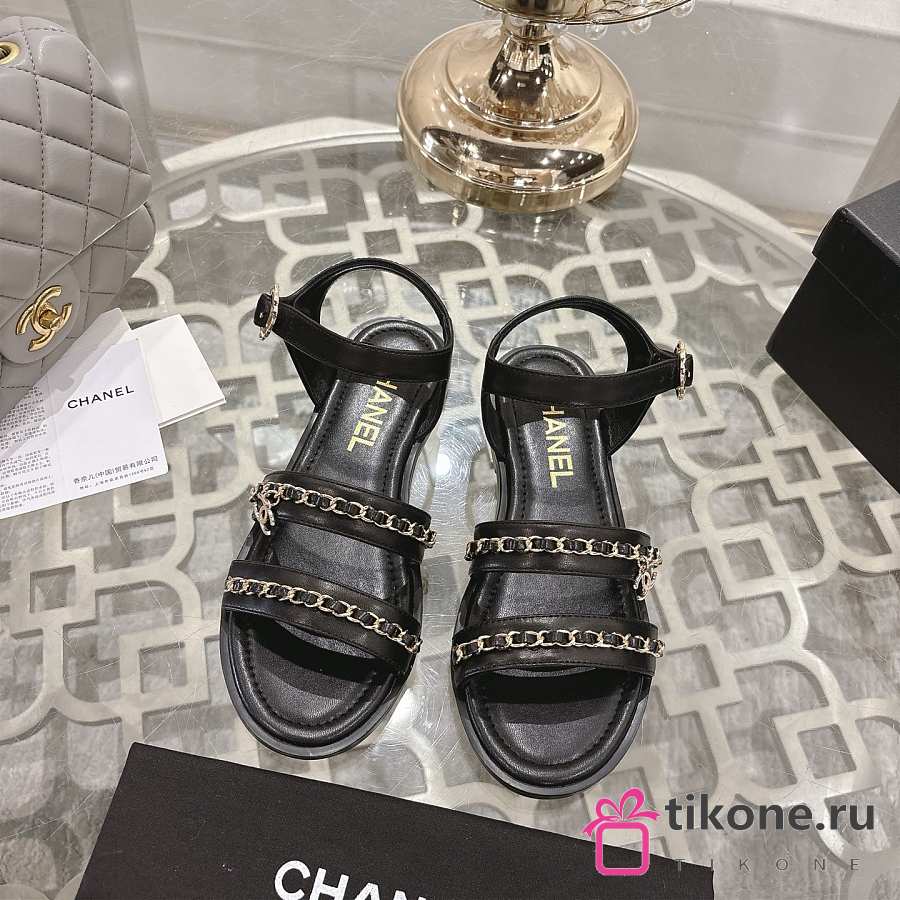 Chanel Sandals Calfskin Black 15mm