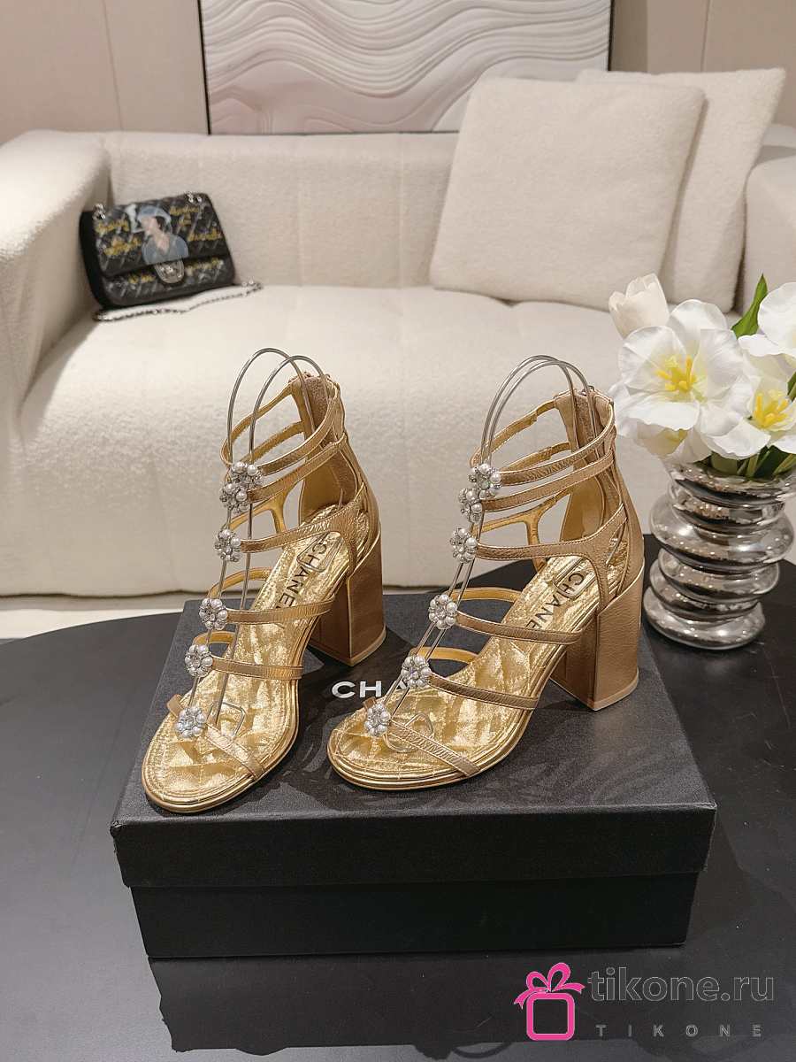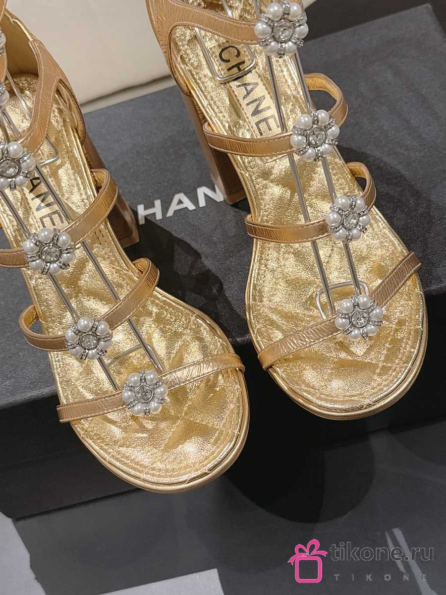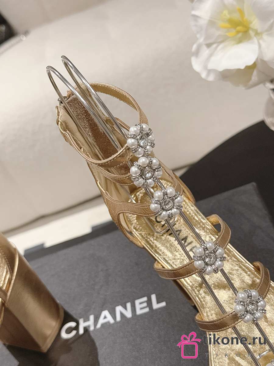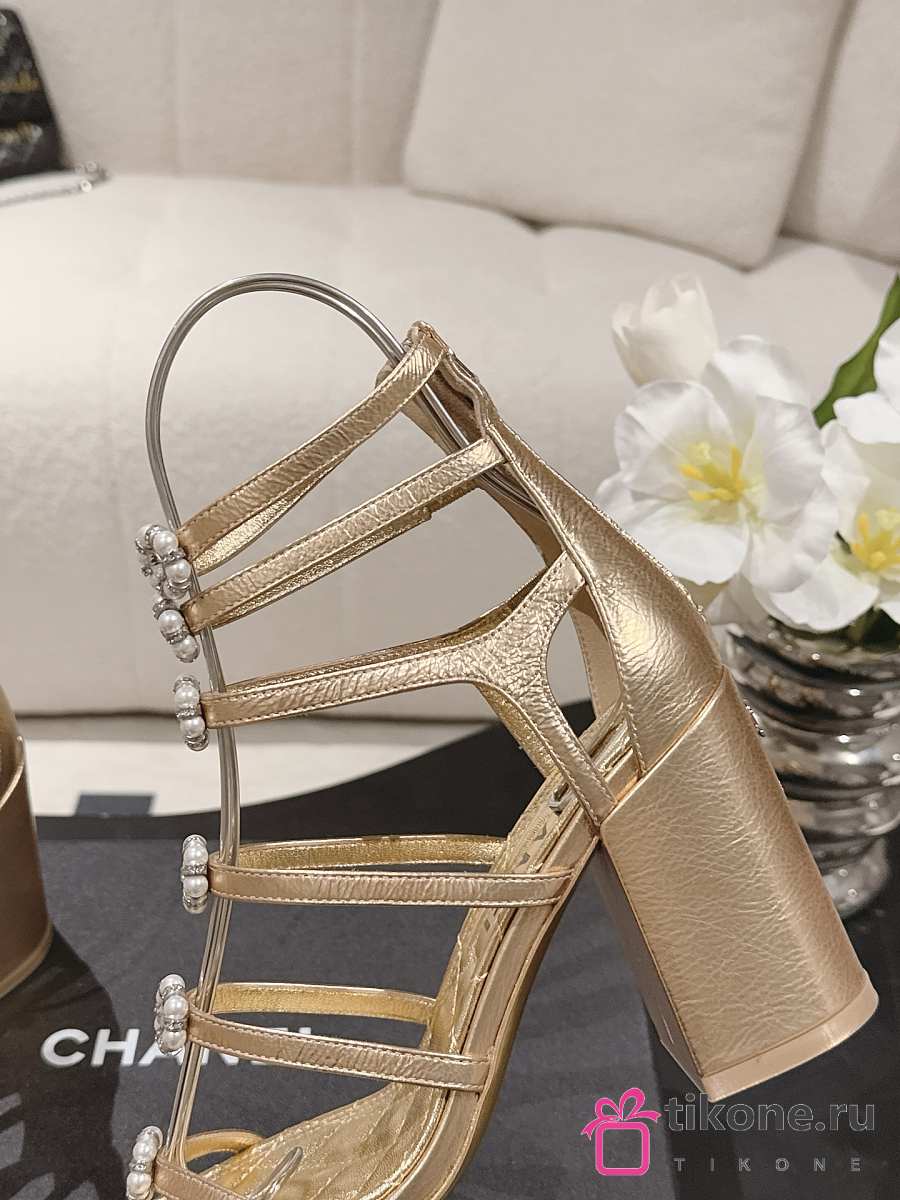 Chanel Sandals Laminated Lambskin Dark Gold G46999 95mm