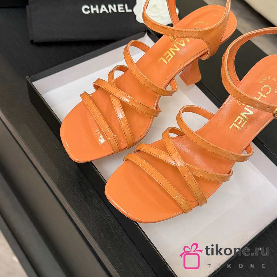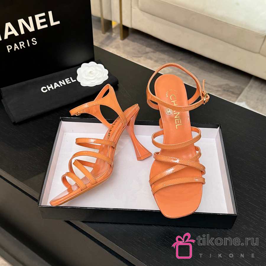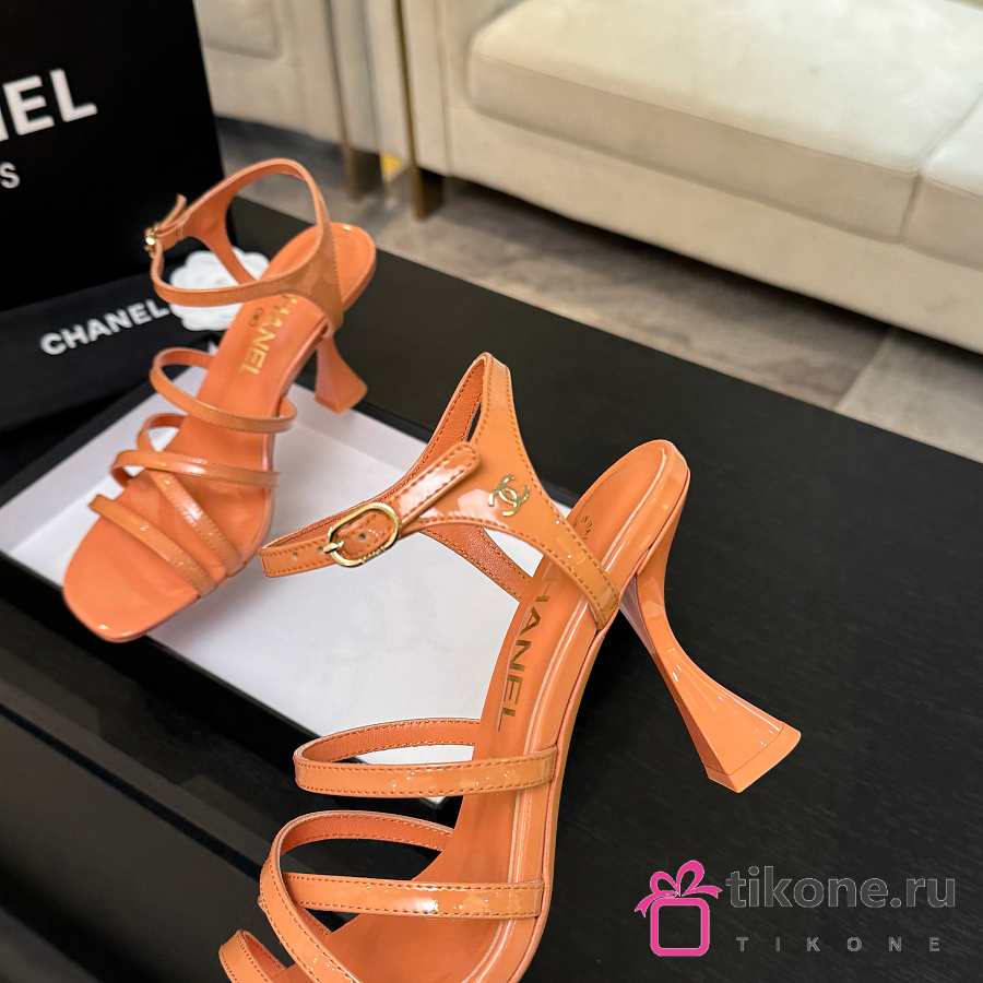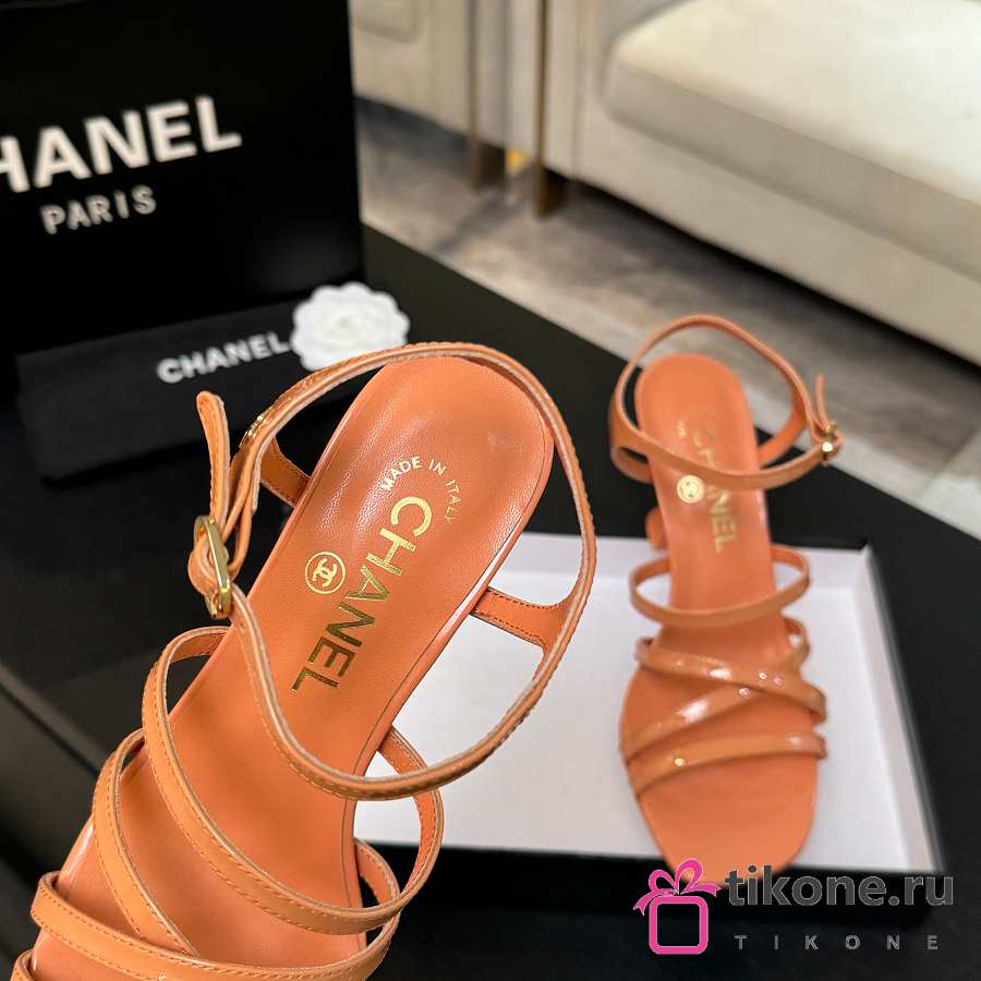Chanel Sandals Patent Calfskin Coral 95mm