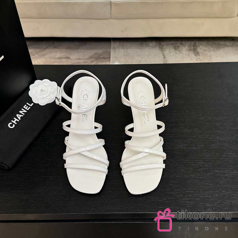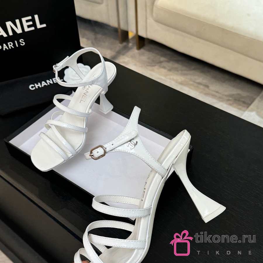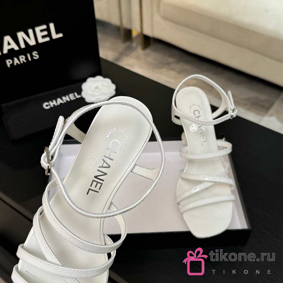 Chanel Sandals Patent Calfskin White 95mm