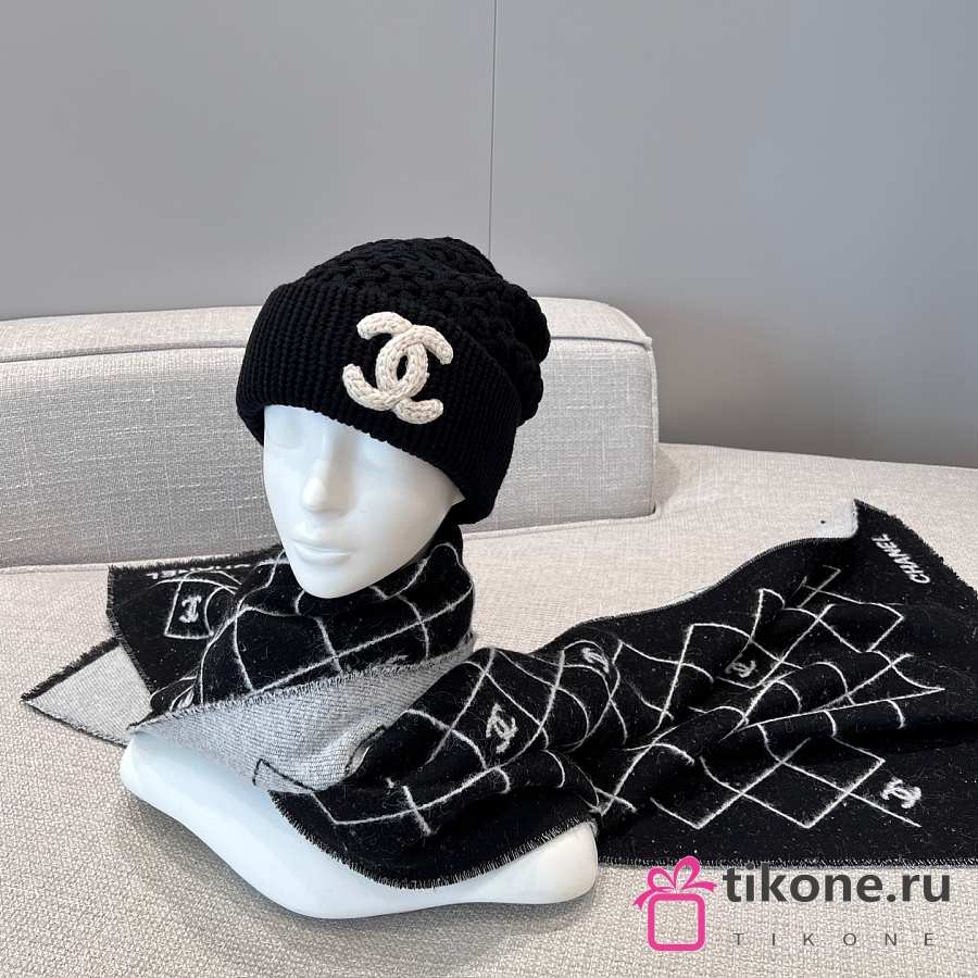 Chanel Scarf Reversible Diamond Quilt Black Gray