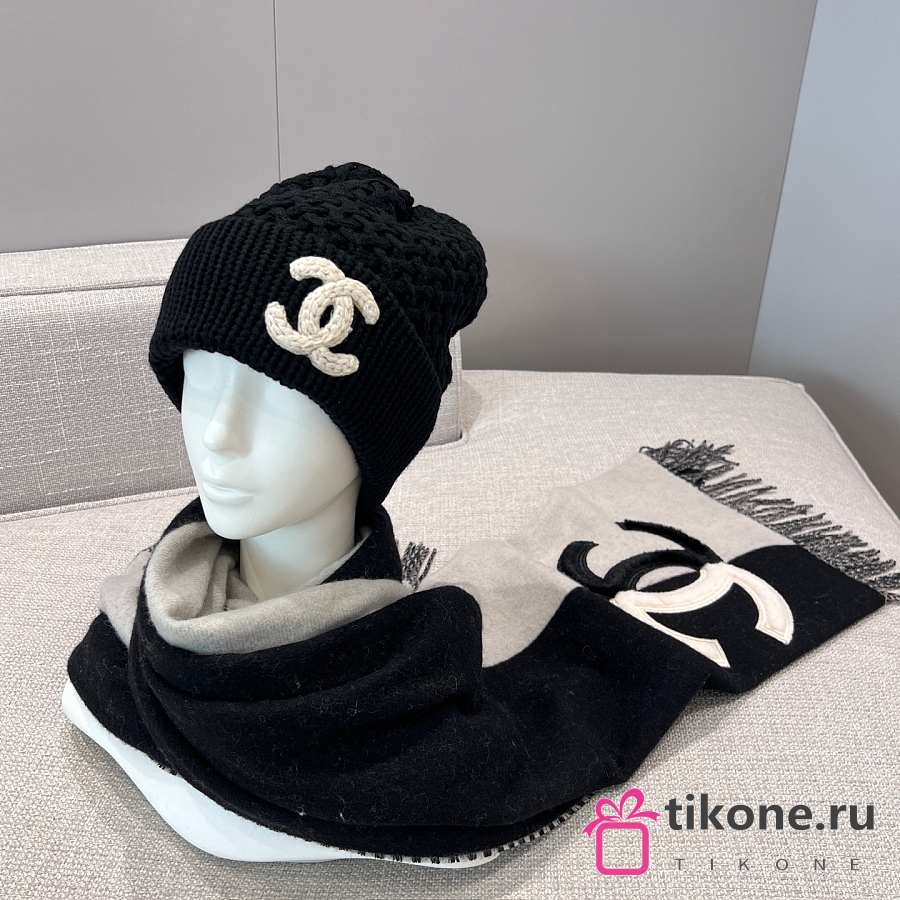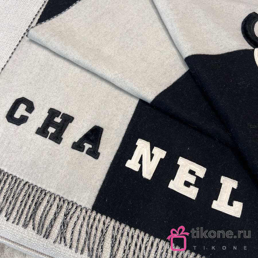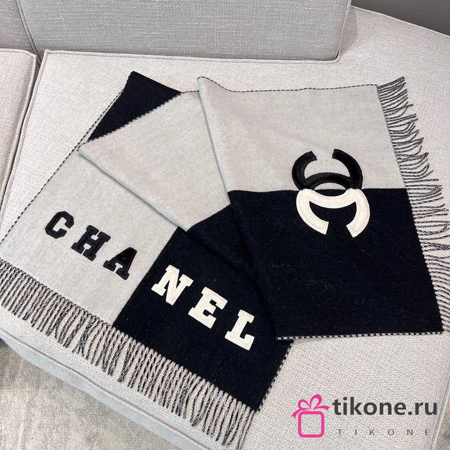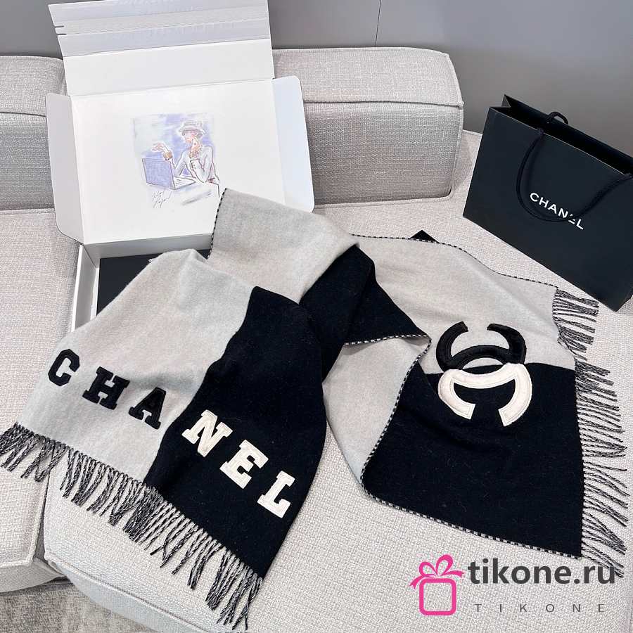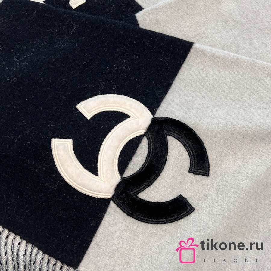 Chanel Scarf Two Tone Logo Patch Black Gray