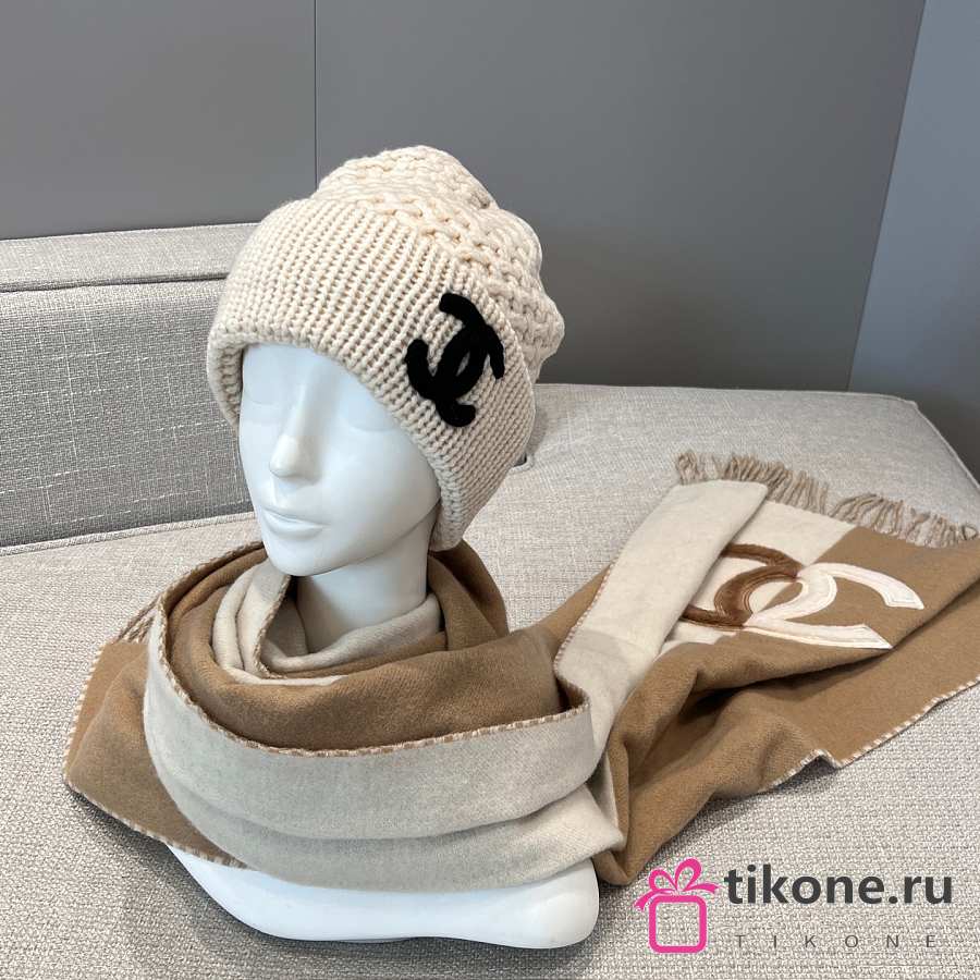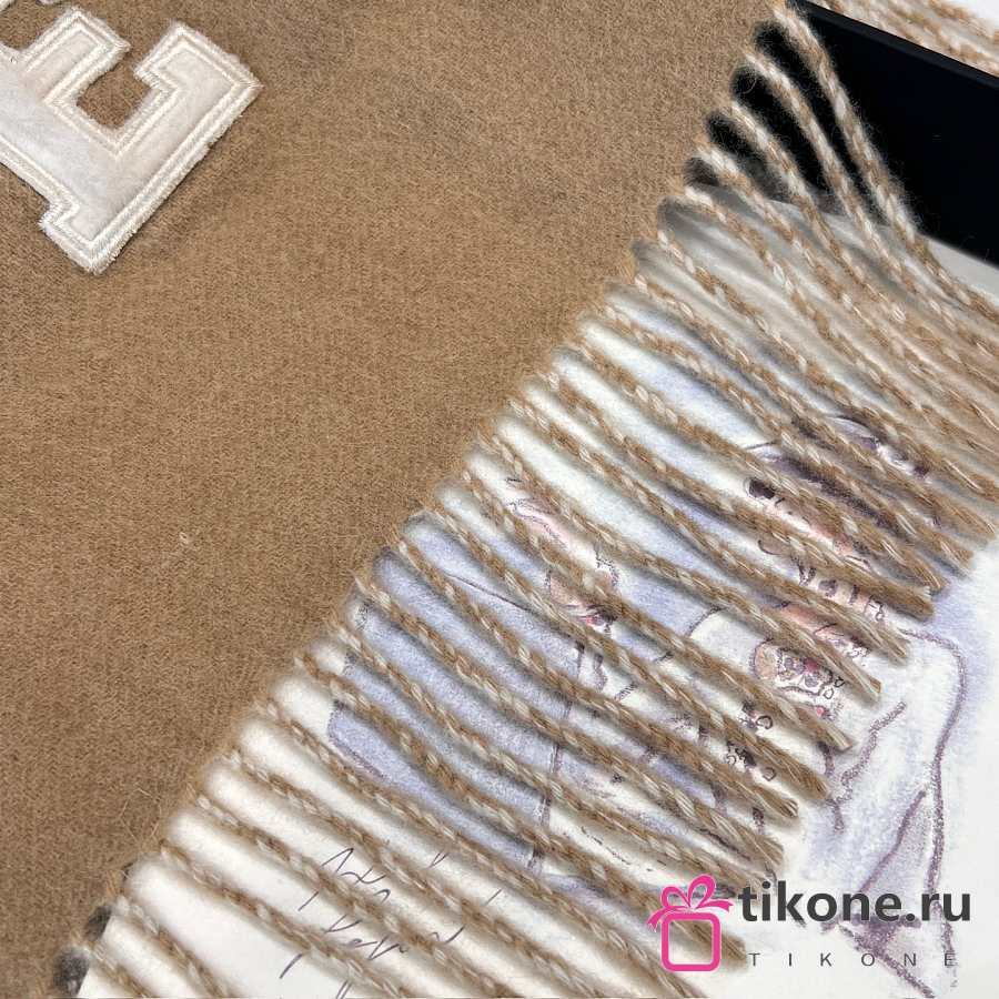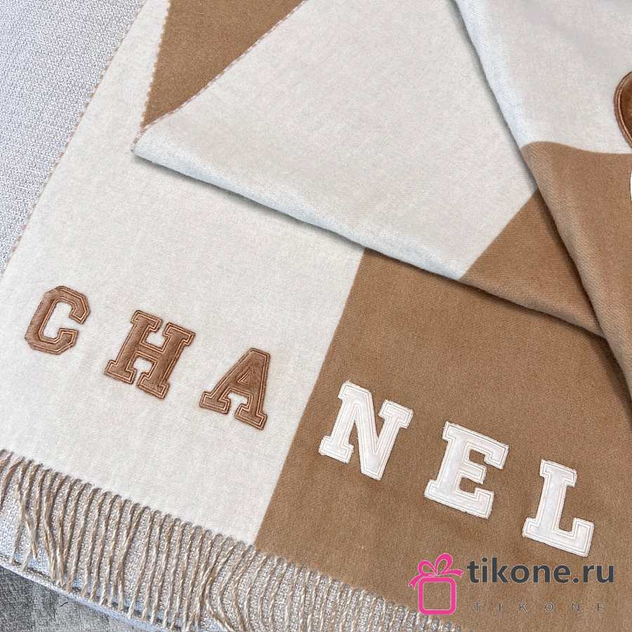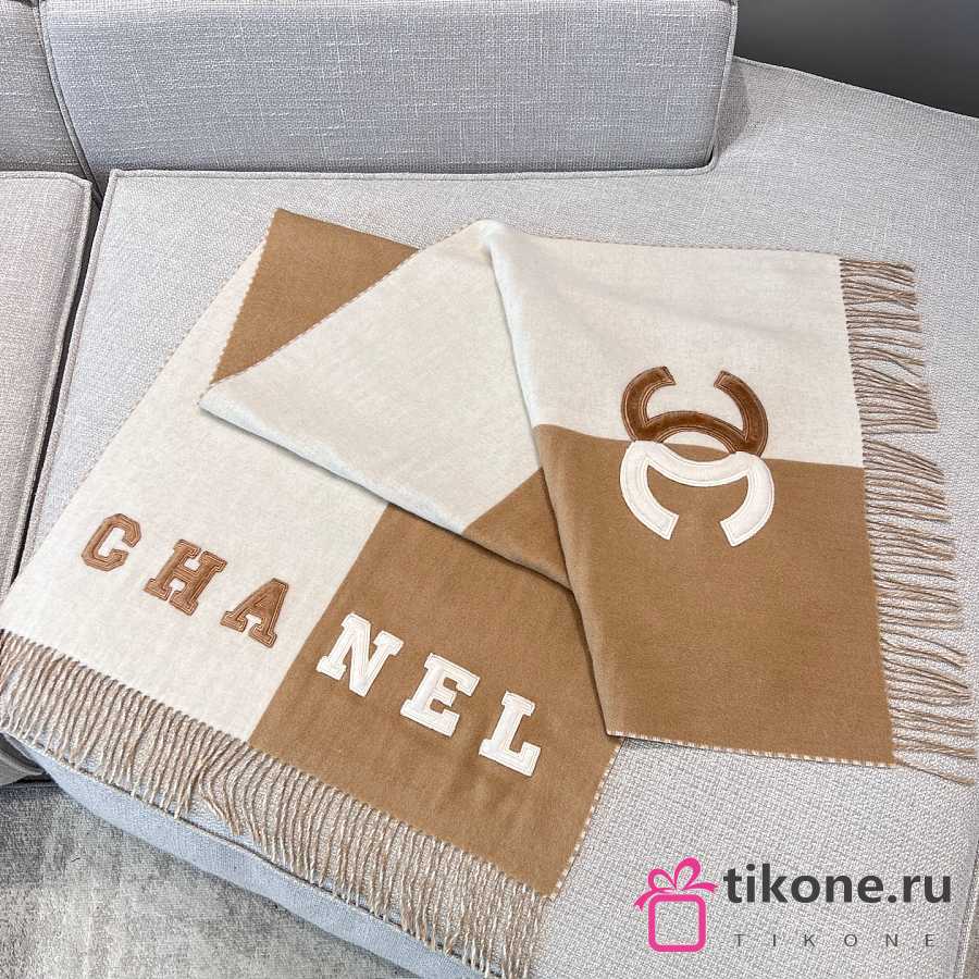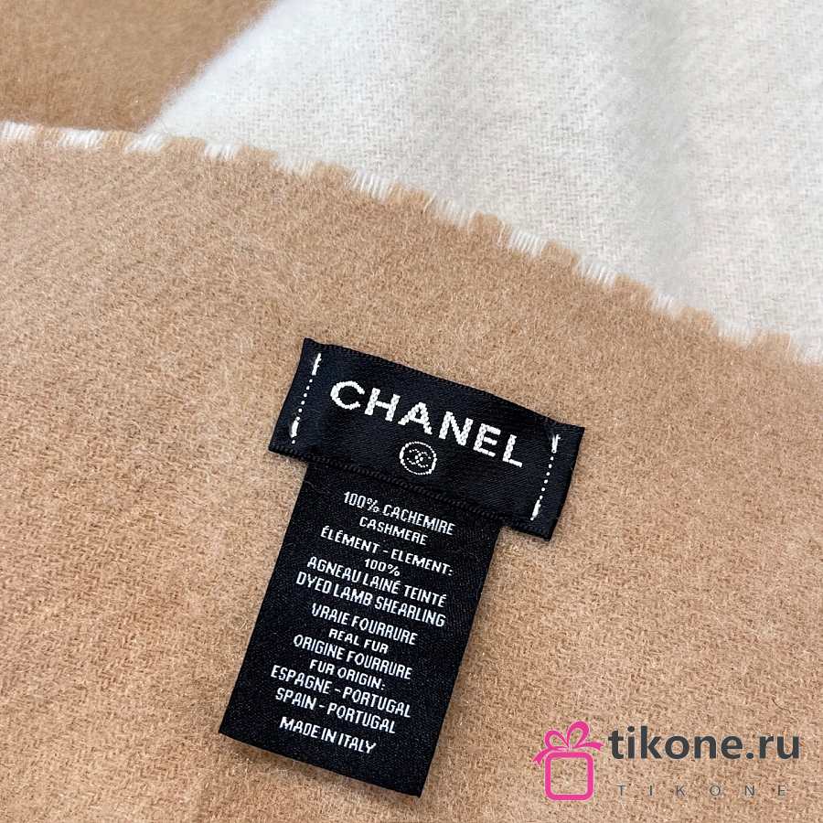 Chanel Scarf Two Tone Logo Patch Camel Beige