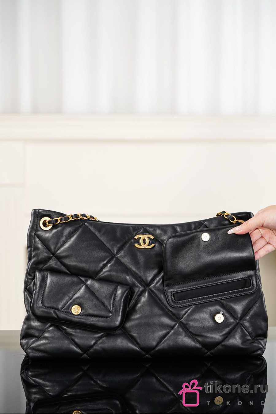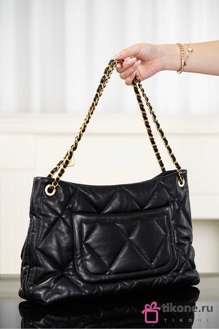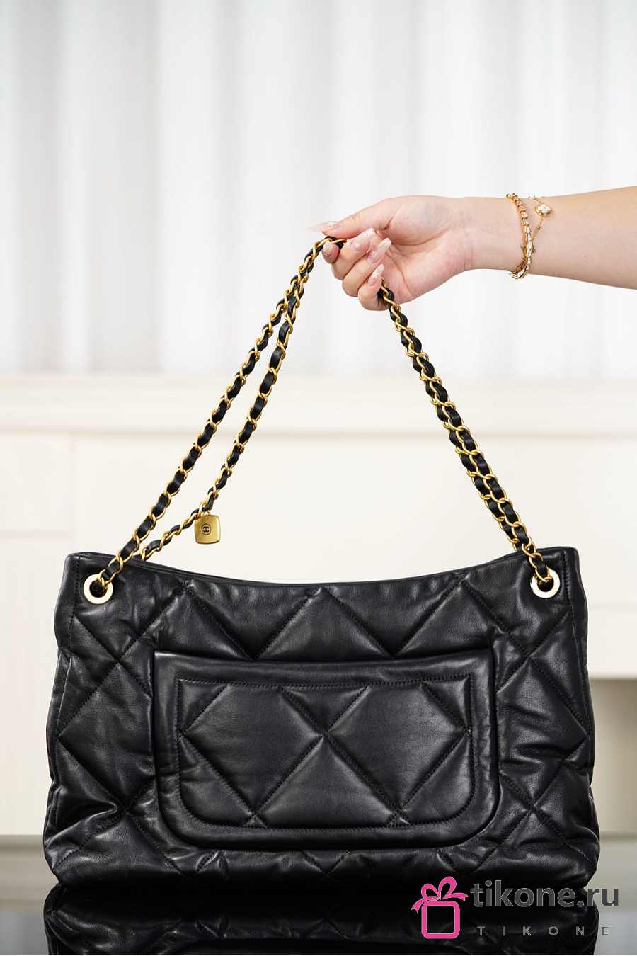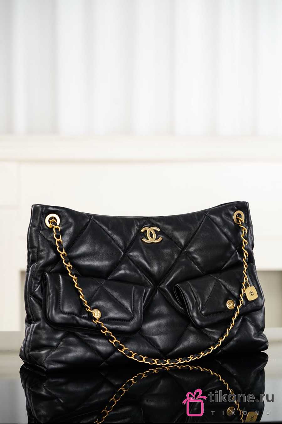 Chanel Shopping Bag Shiny Lambskin & Gold Tone Metal Black - 38x26x11cm