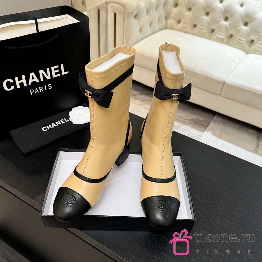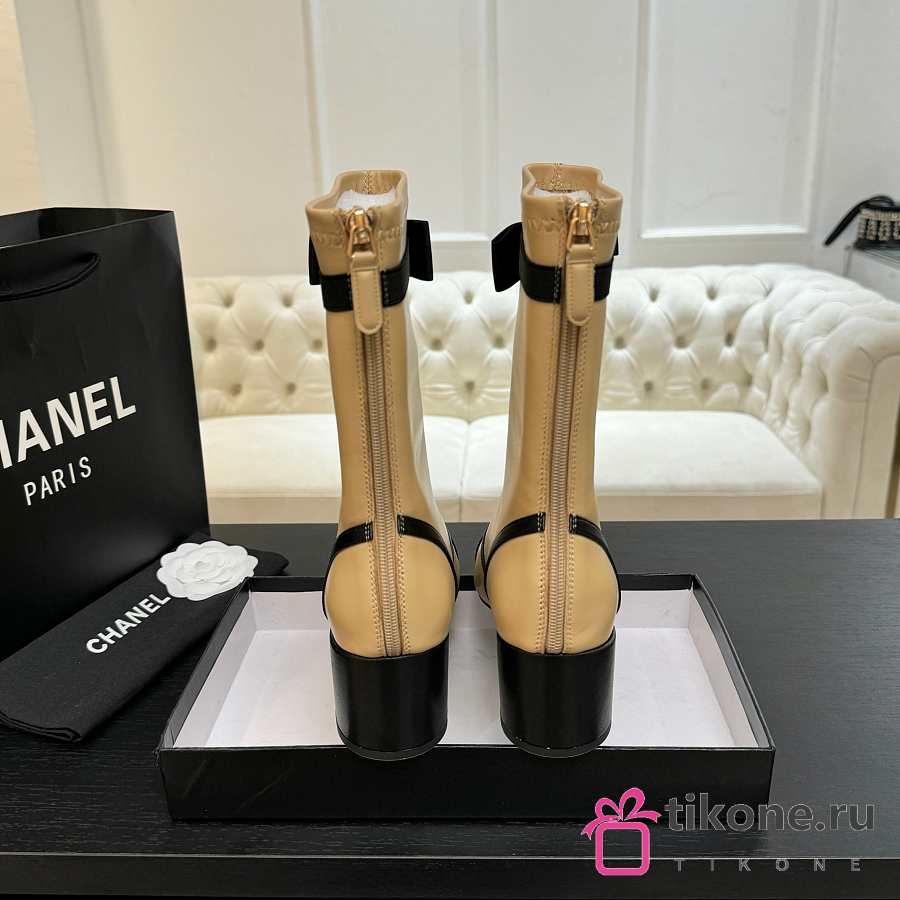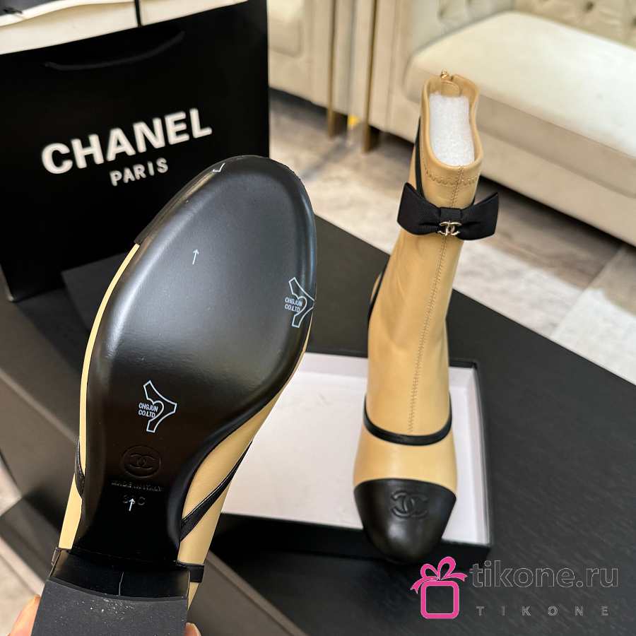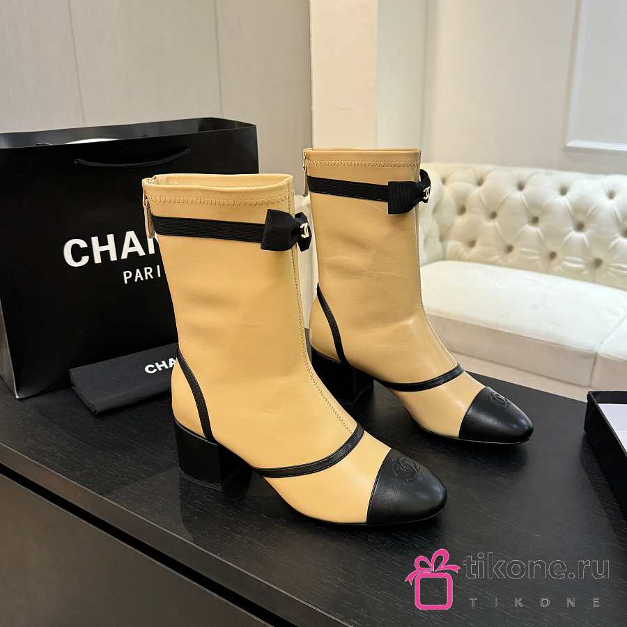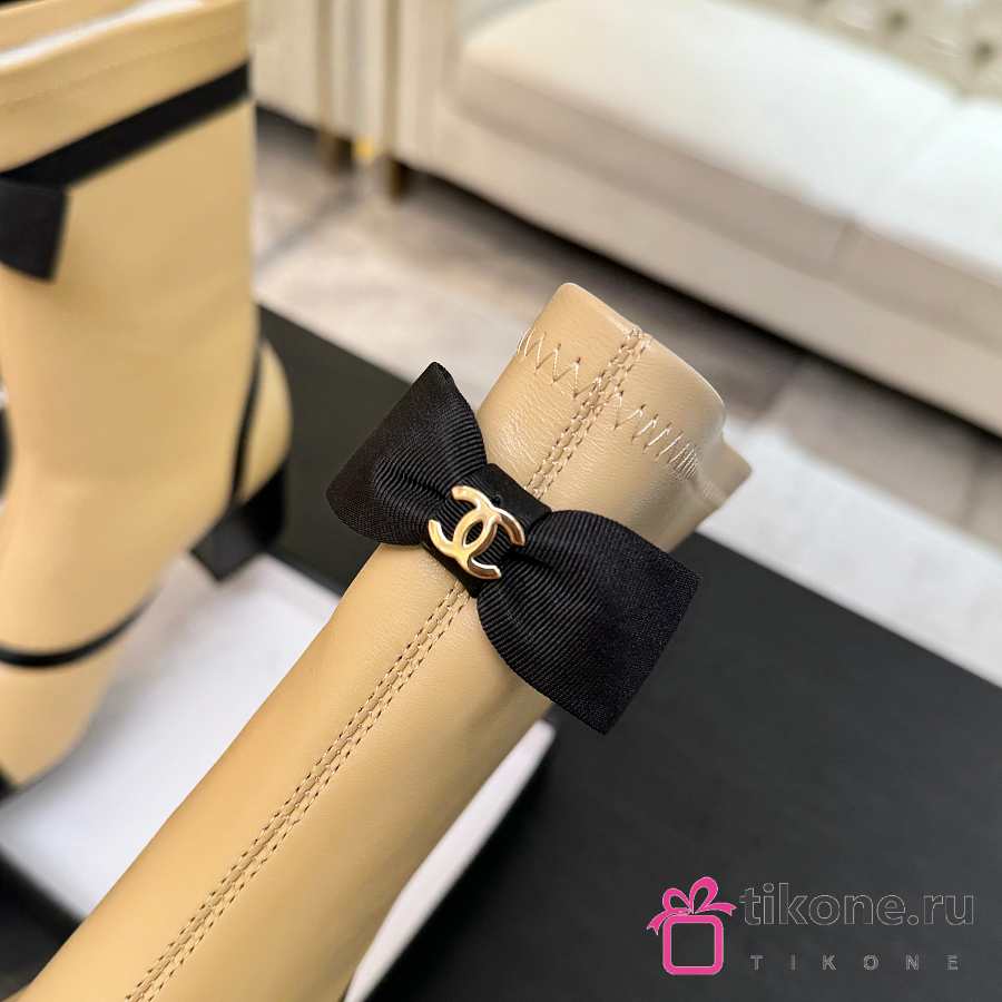 Chanel Short Boots Stretch Lambskin & Lambskin Beige Black 5cm