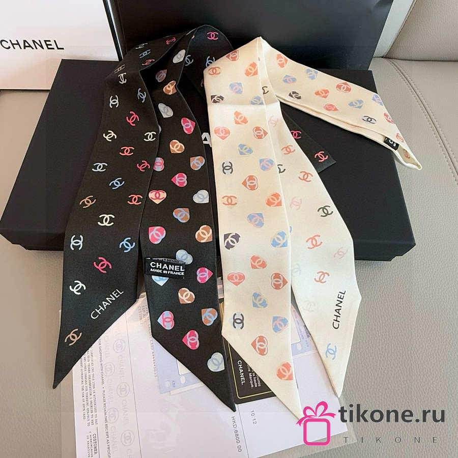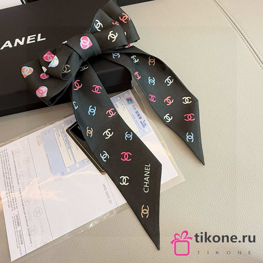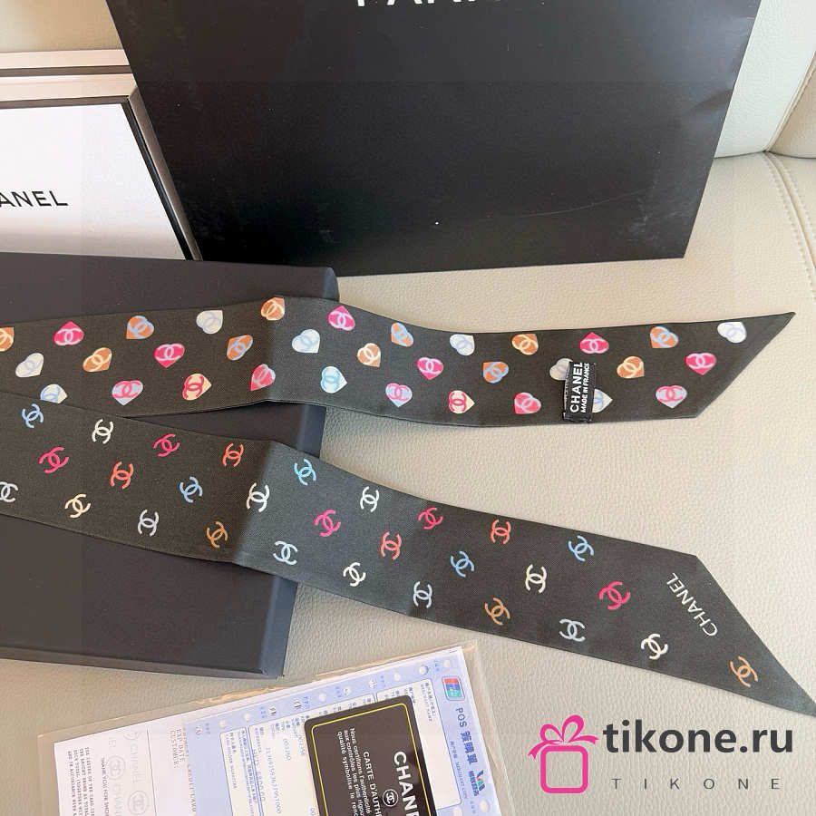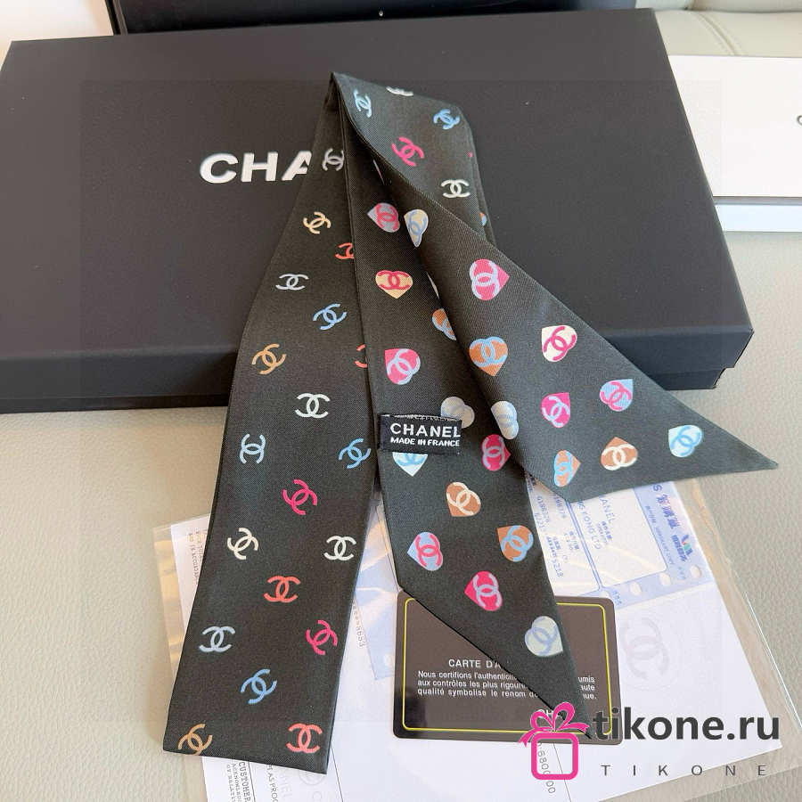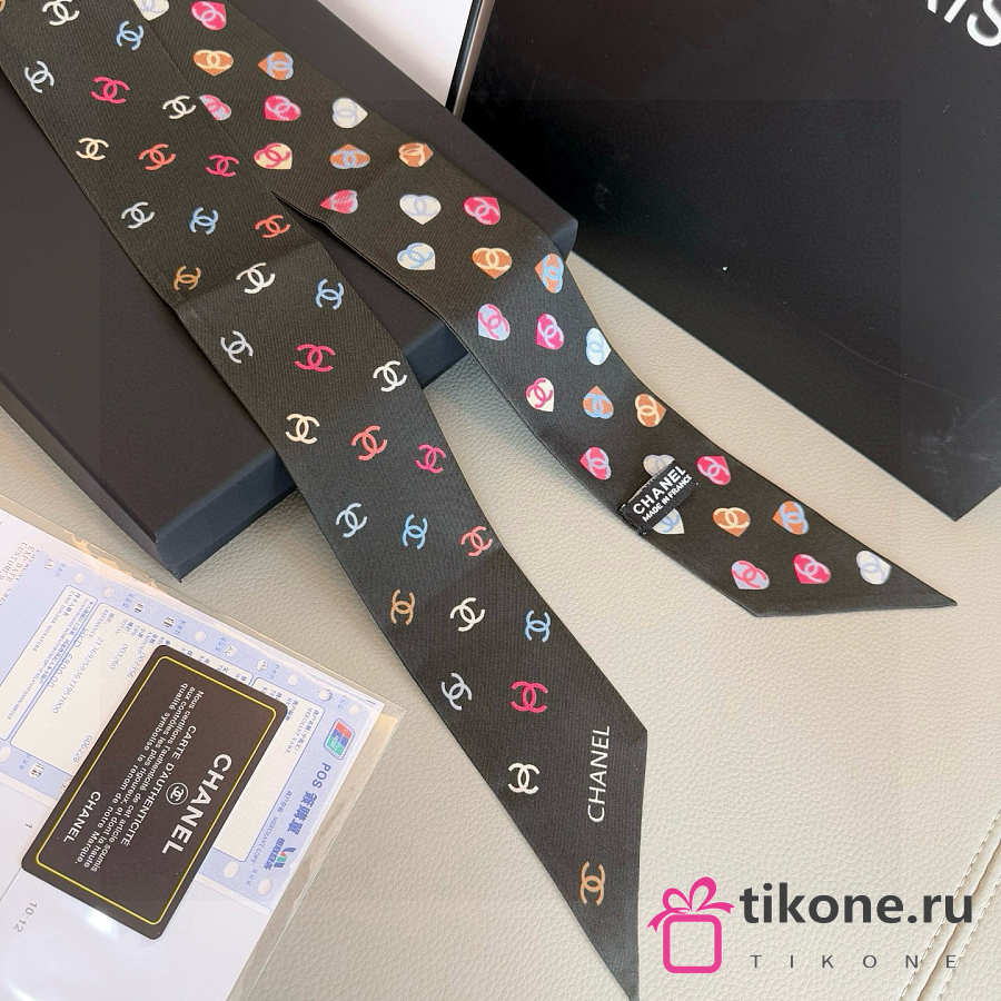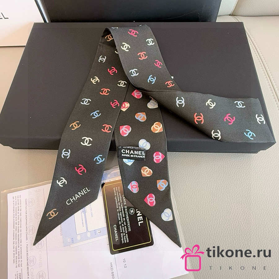 Chanel Silk Heart CC Slim Bandeau Scarf Black - 6x120cm