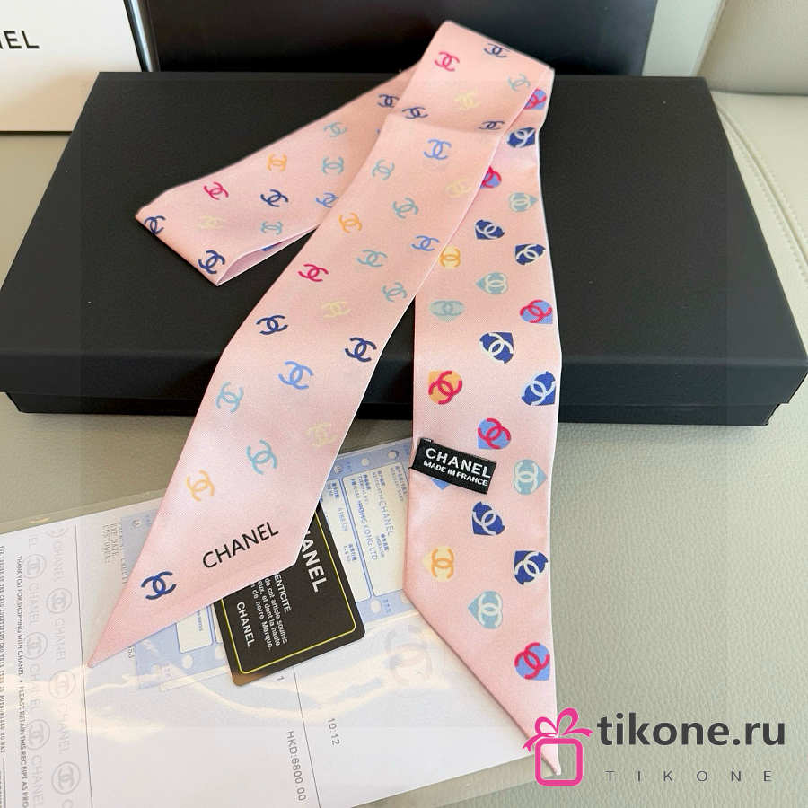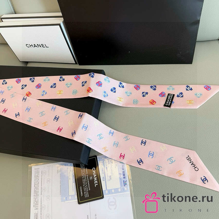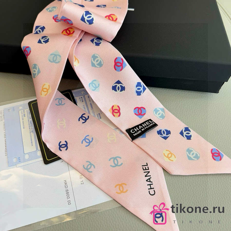 Chanel Silk Heart CC Slim Bandeau Scarf Light Pink - 6x120cm