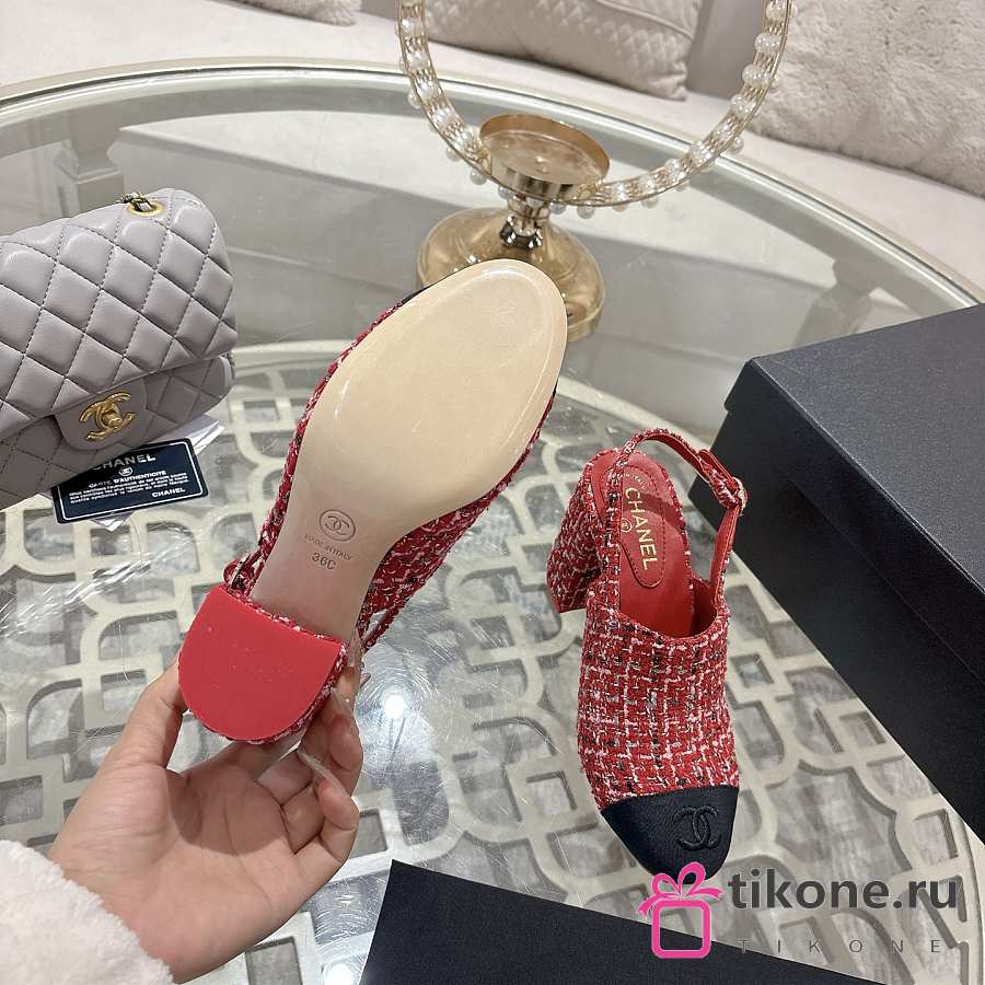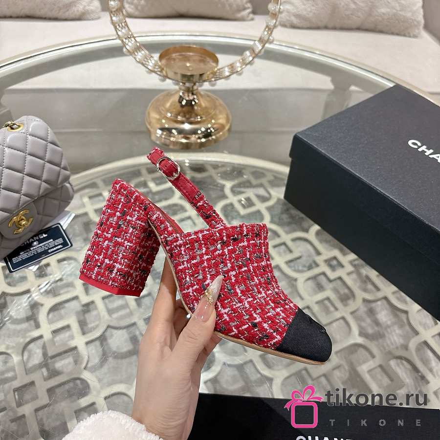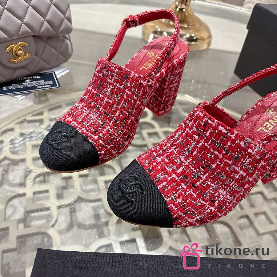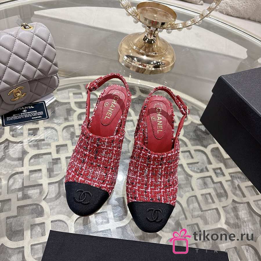 Chanel Slingbacks Cotton Tweed & Grosgrain Red, Pink & Black G46865