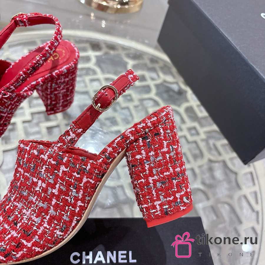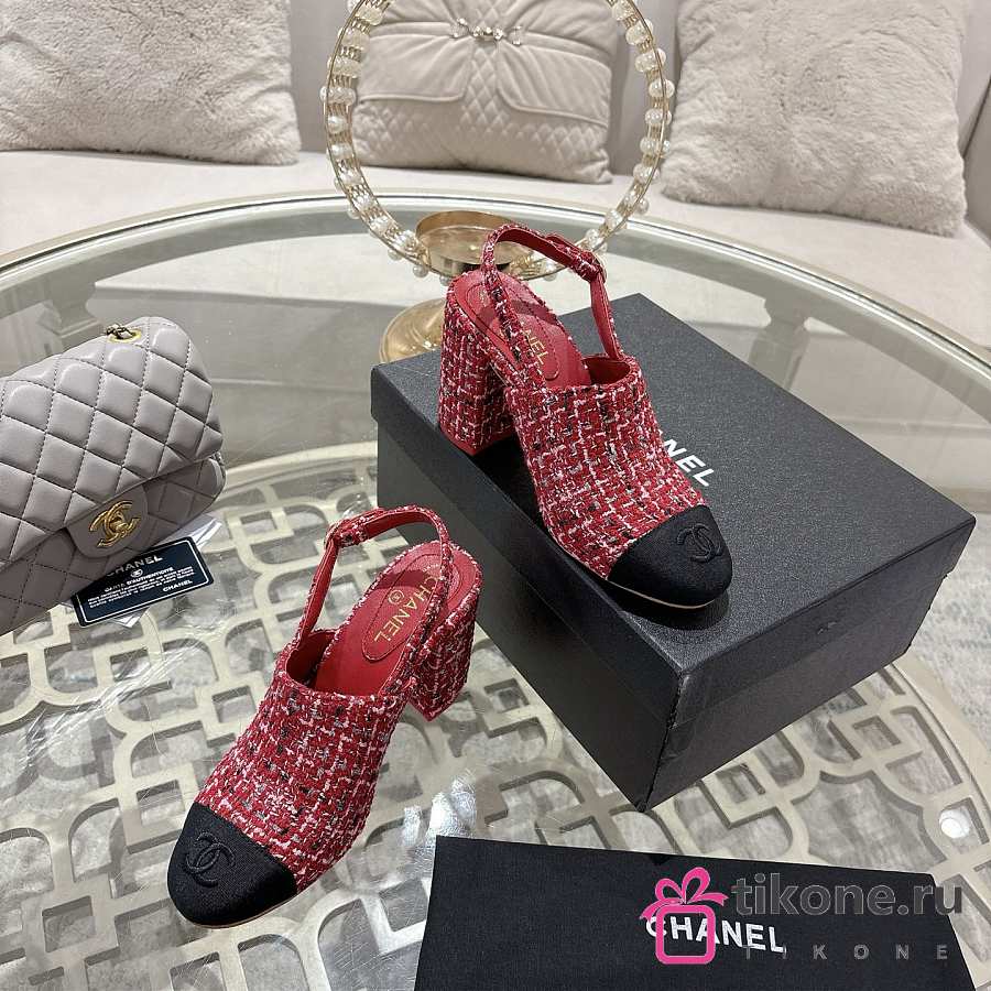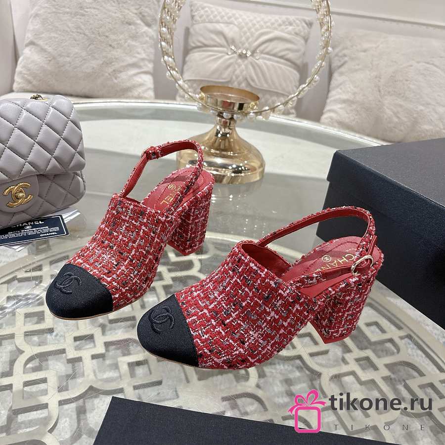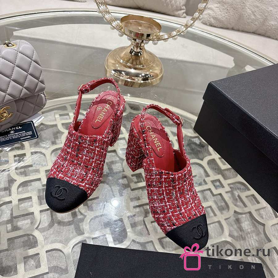 Chanel Slingbacks Cotton Tweed & Grosgrain Red, Pink & Black G46865