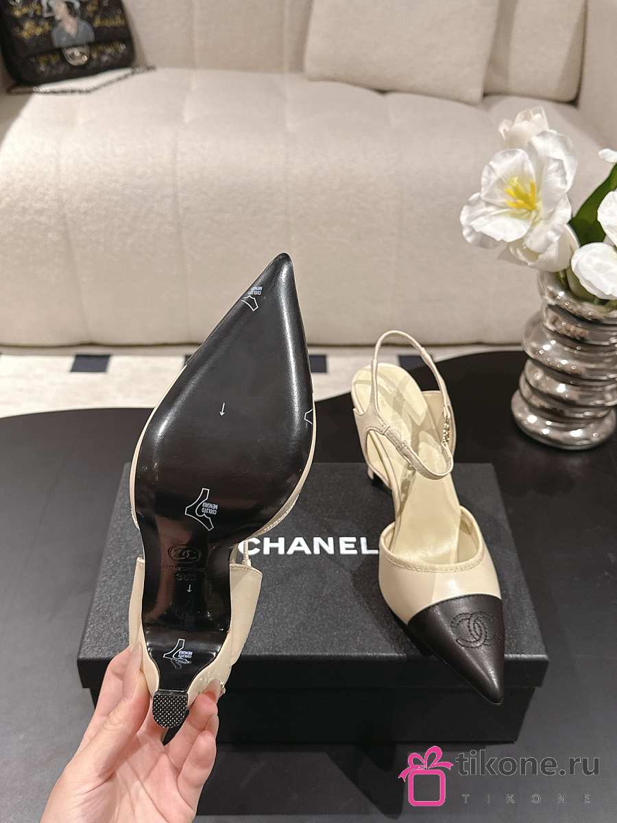 Chanel Slingbacks Iridescent Lambskin & Lambskin Beige & Black 90mm G47082