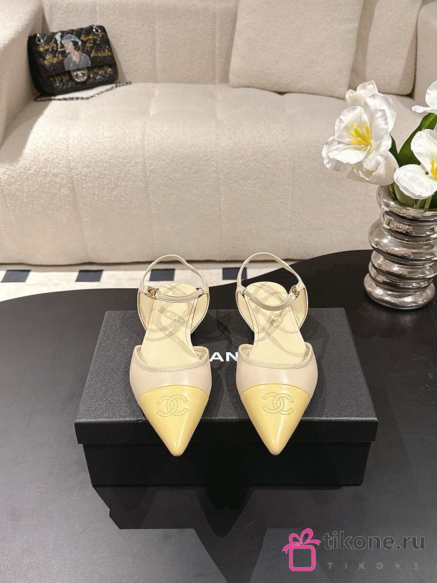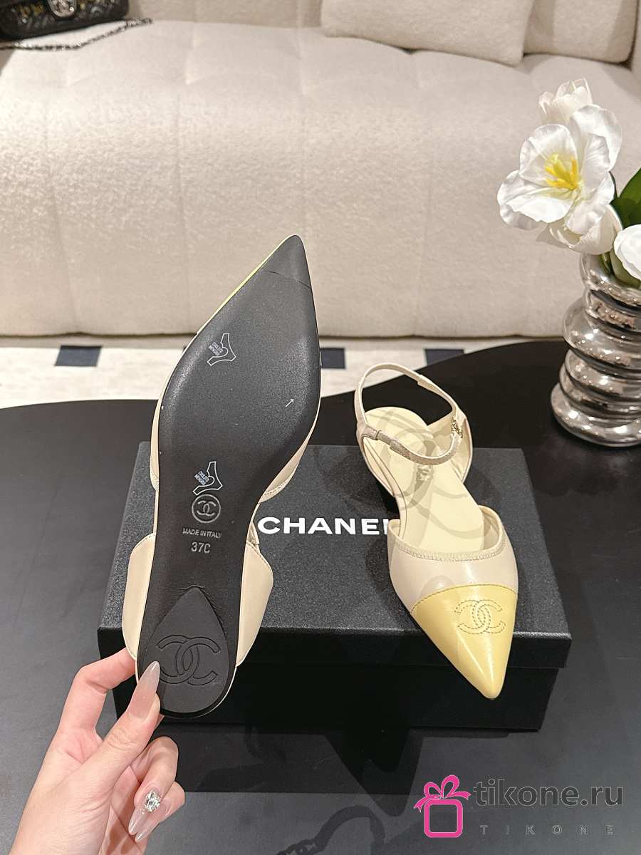 Chanel Slingbacks Iridescent Lambskin & Lambskin Light Khaki & Yellow G47085