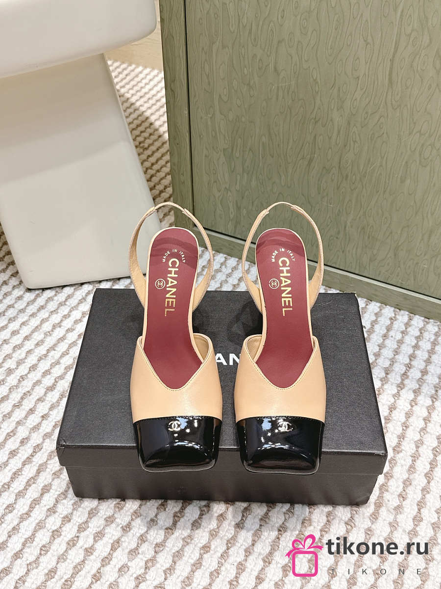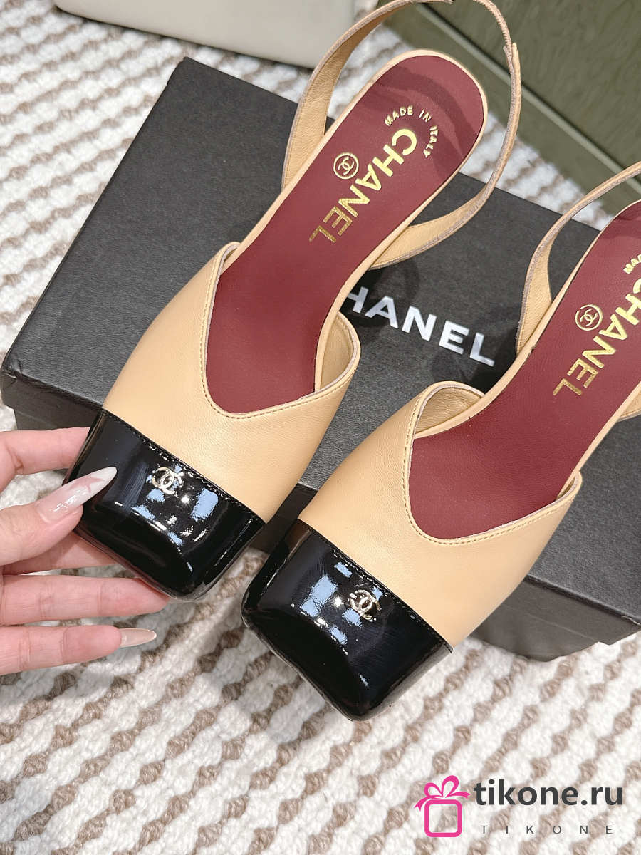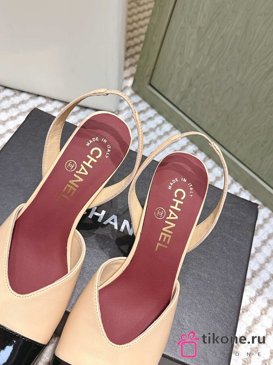Chanel Slingbacks Lambskin & Patent Calfskin Beige & Black 90mm