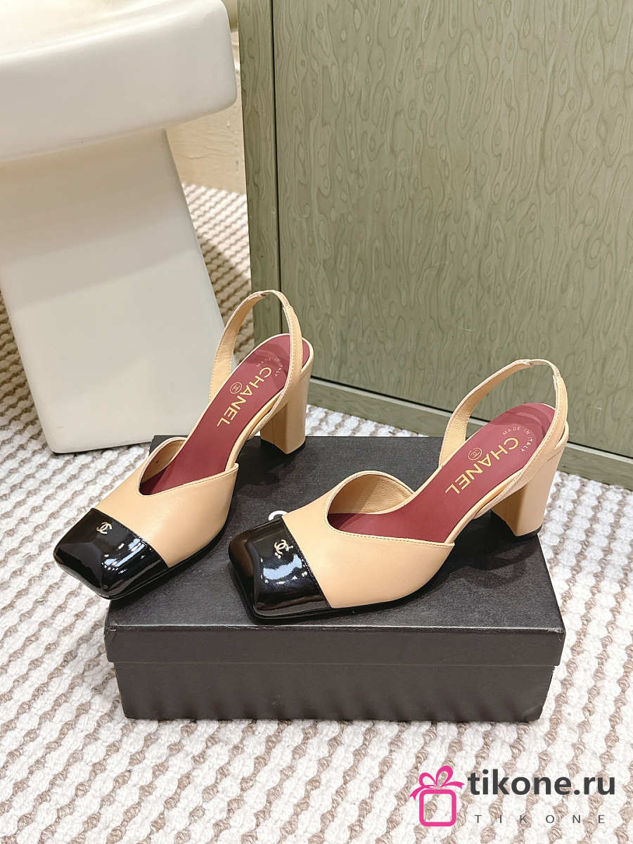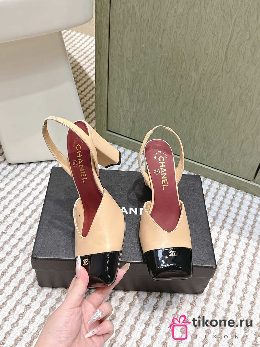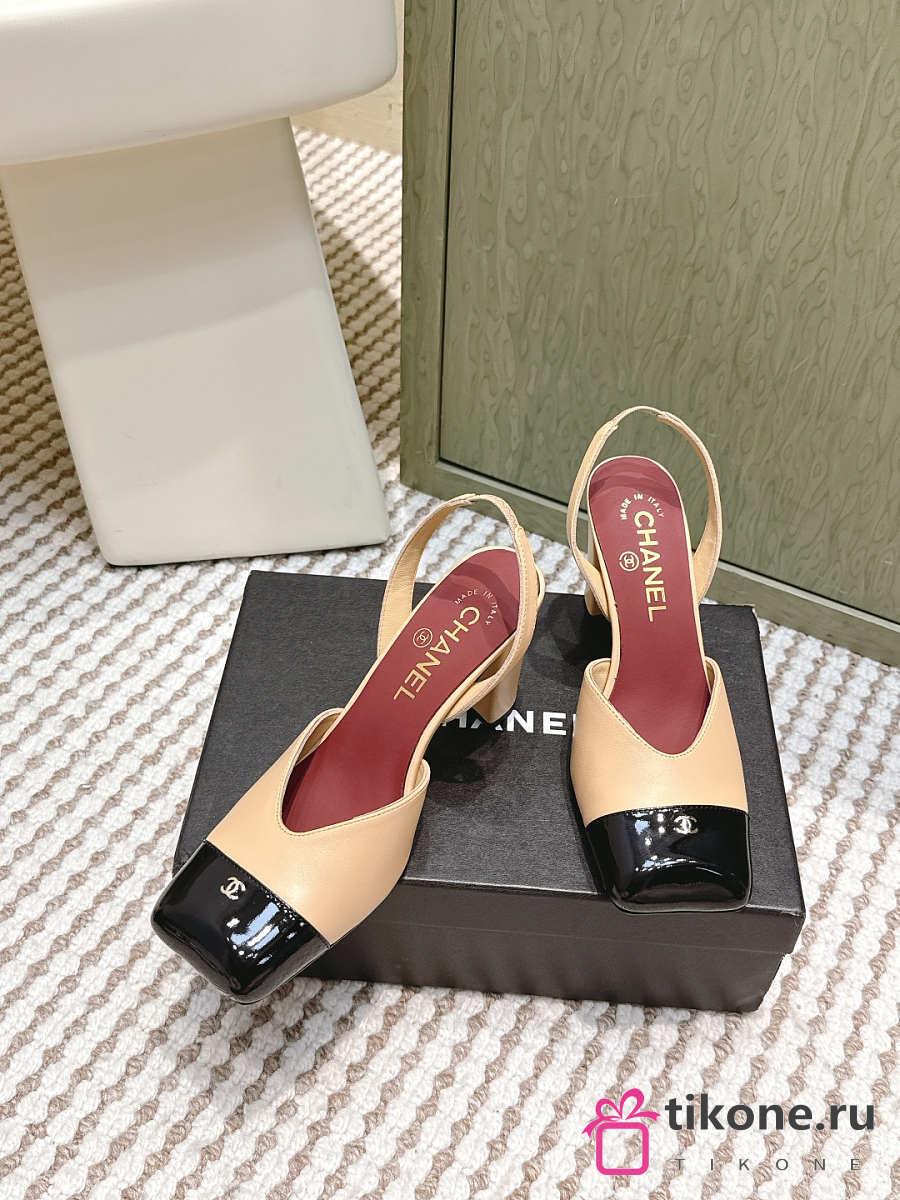 Chanel Slingbacks Lambskin & Patent Calfskin Beige & Black 90mm