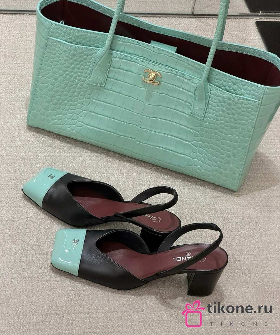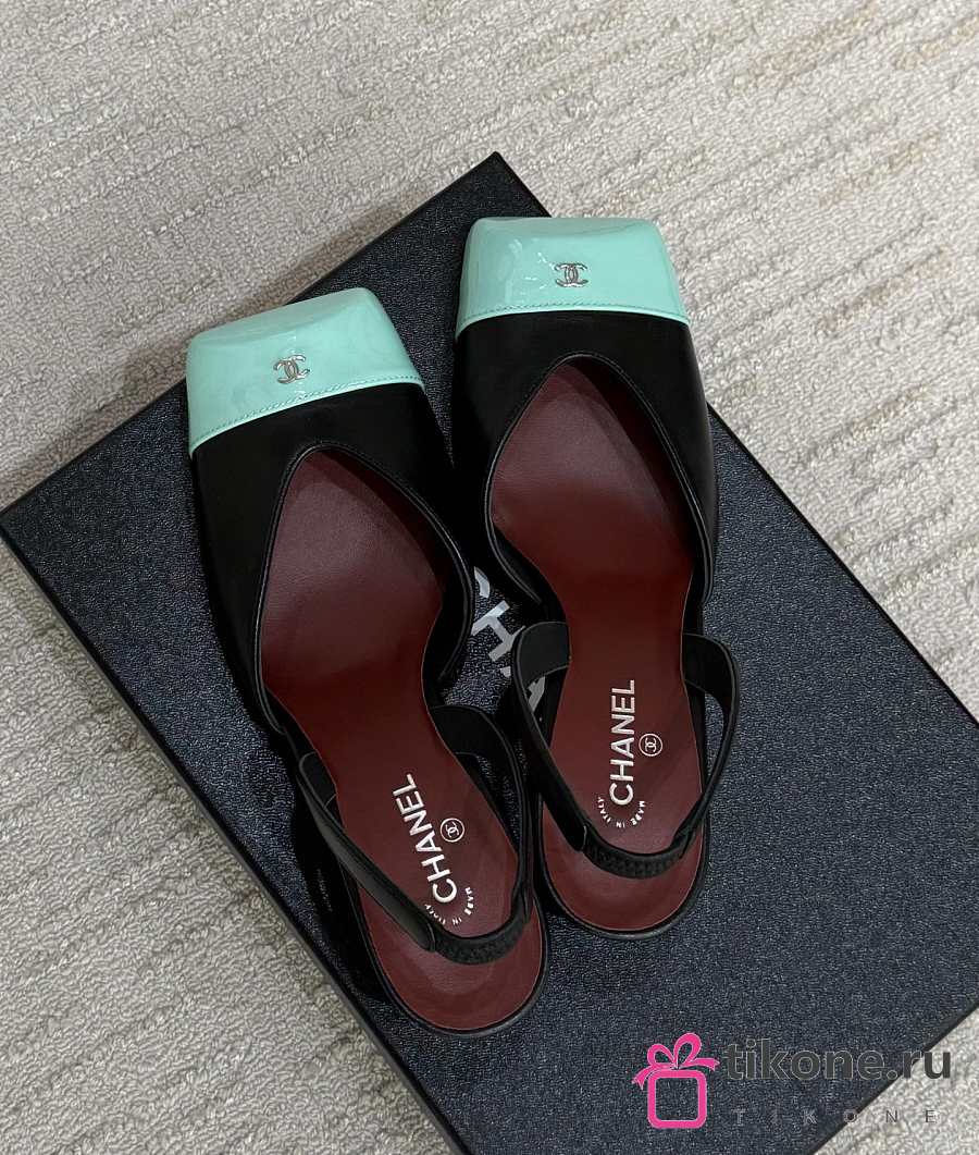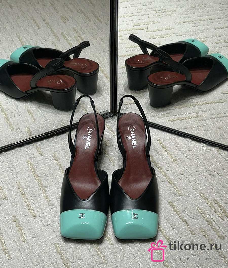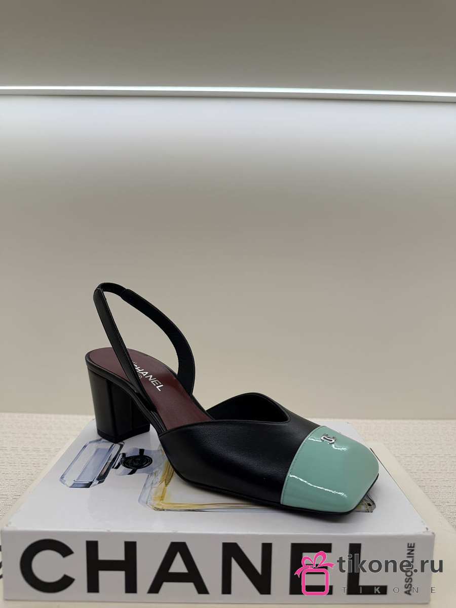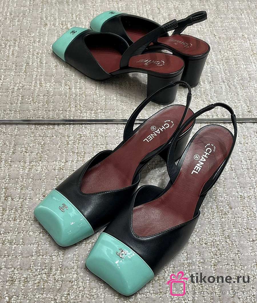Chanel Slingbacks Lambskin & Patent Calfskin Black & Green 90mm