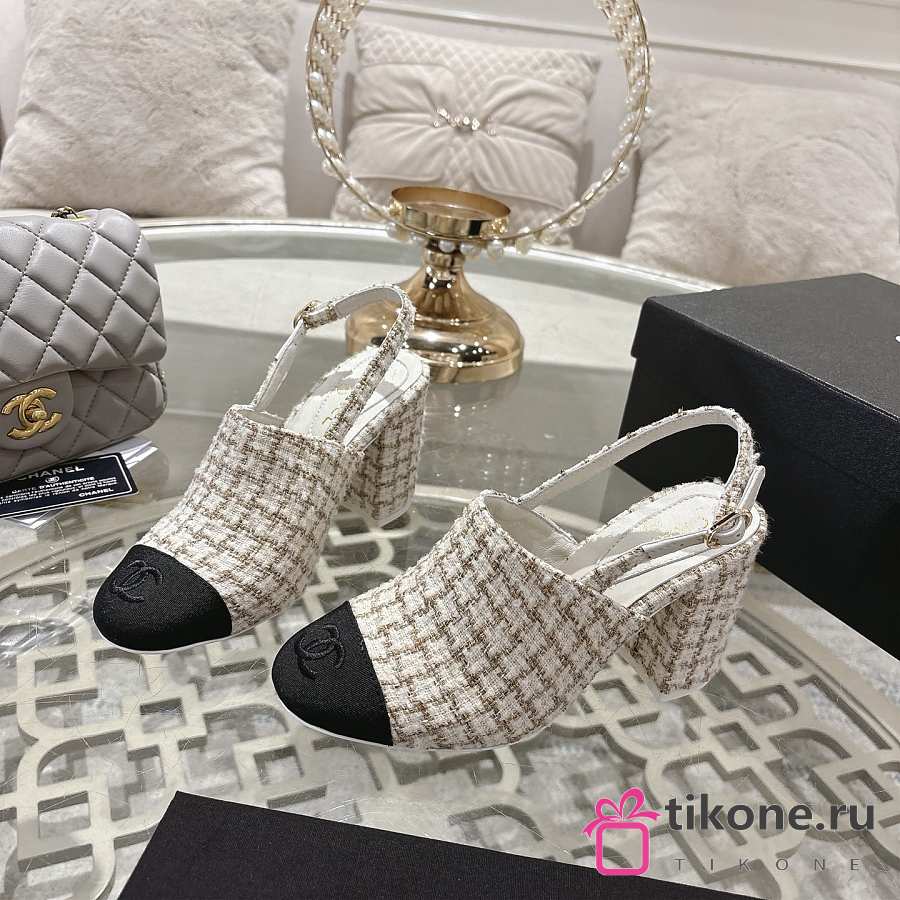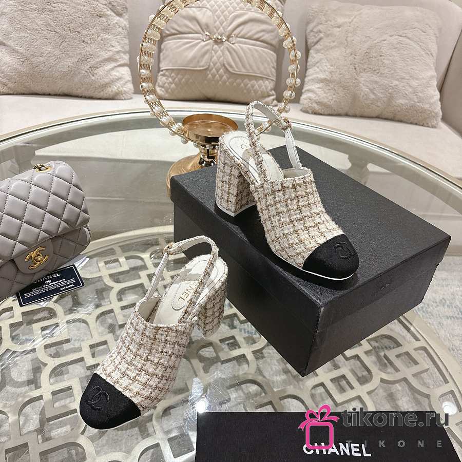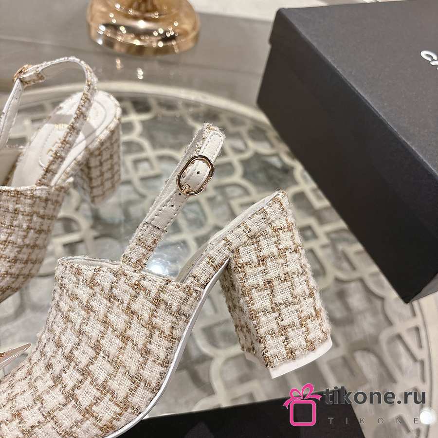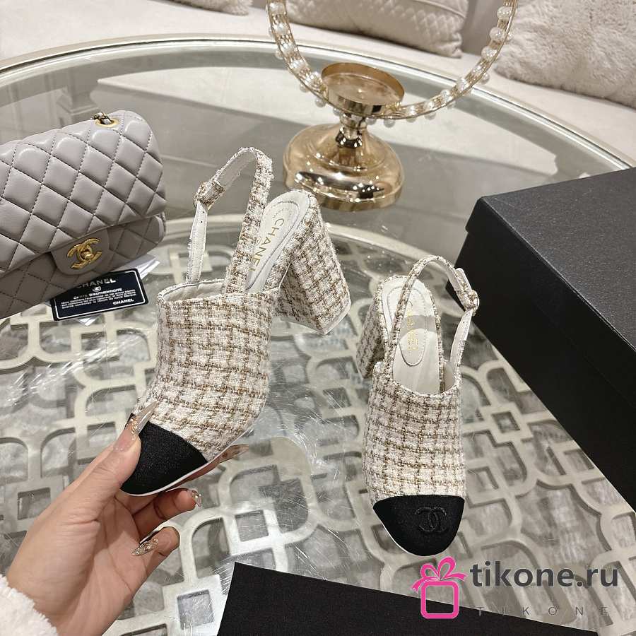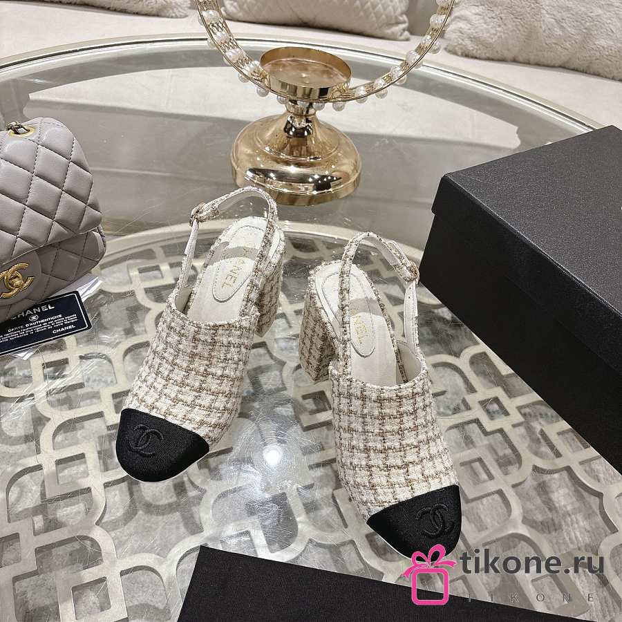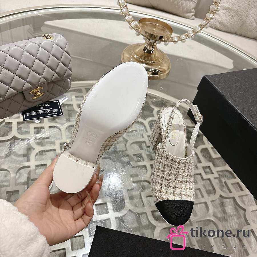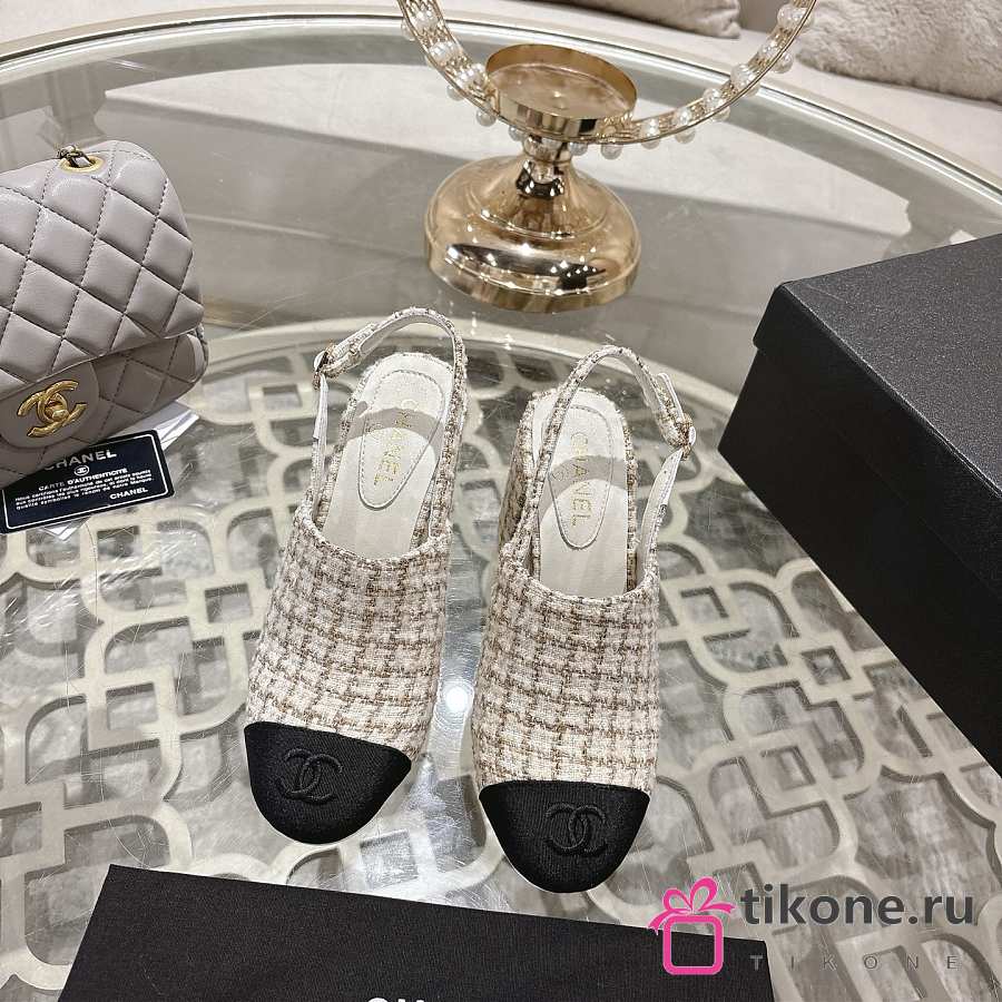 Chanel Slingbacks Wool and Mohair Tweed & Grosgrain Ecru, Beige & Gold G46865