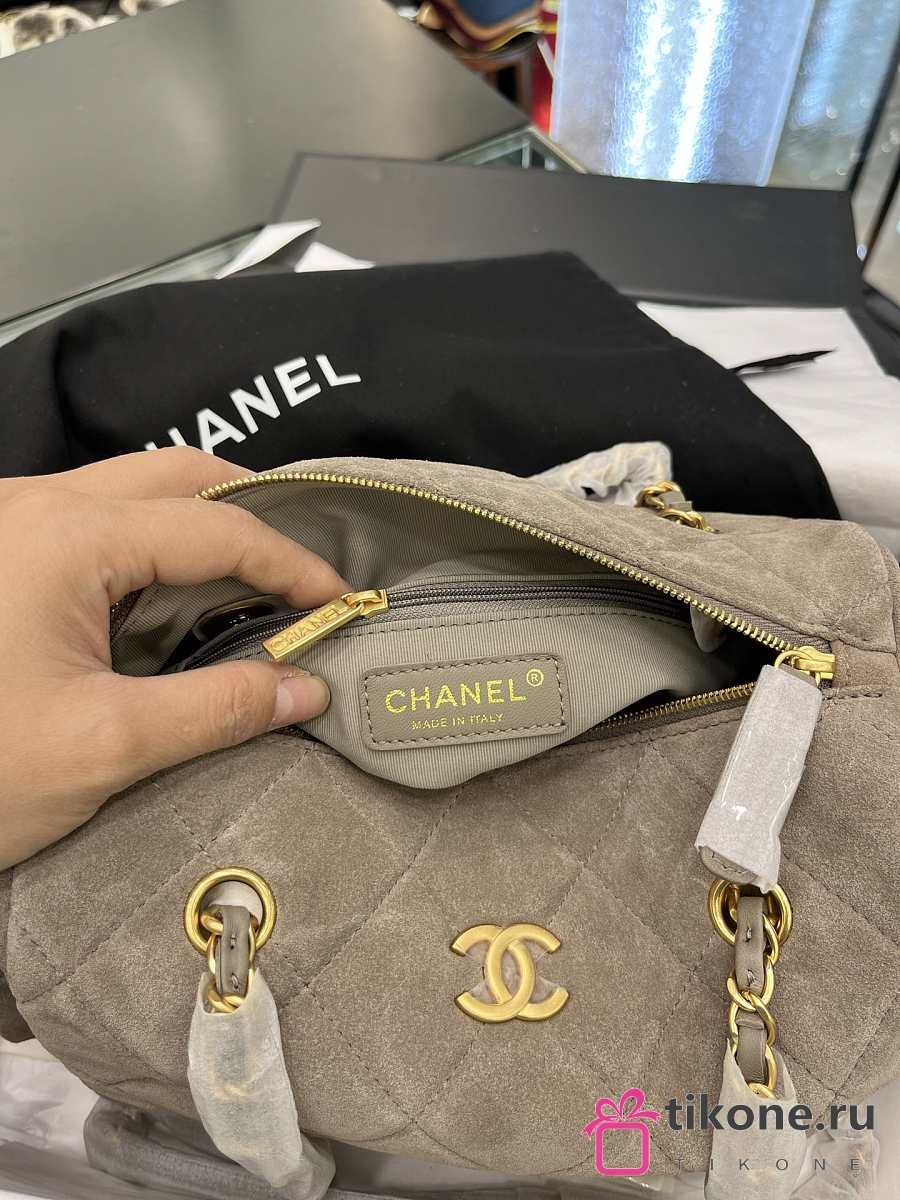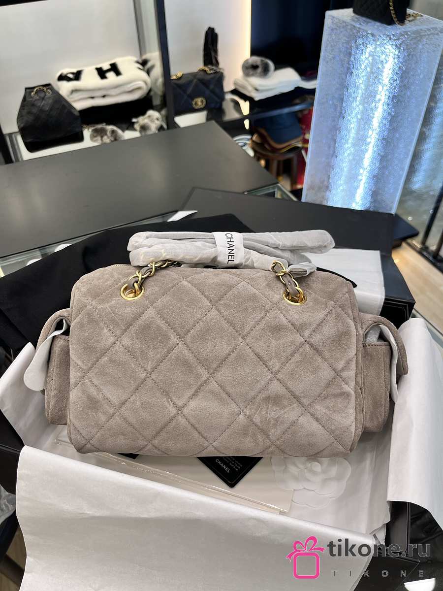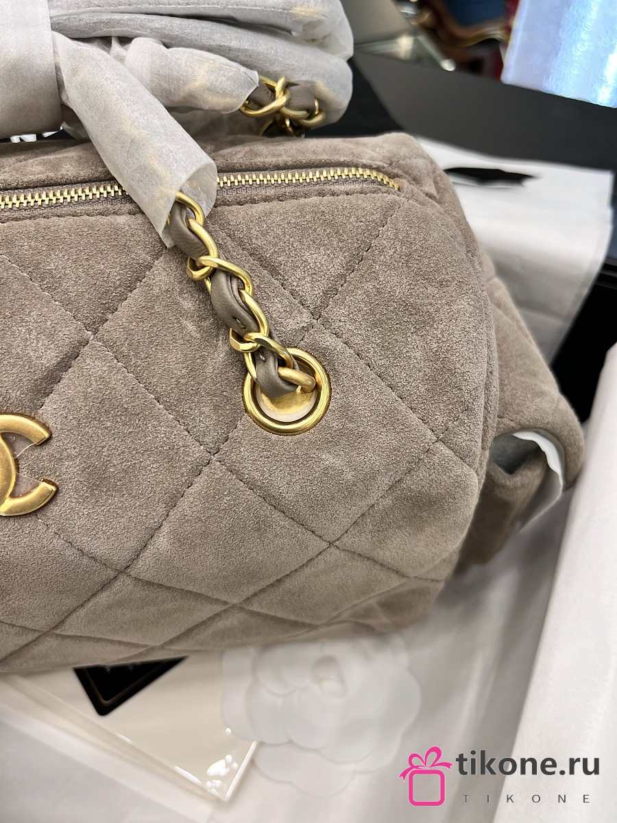 Chanel Small Bowling Bag Suede & Gold Metal Gray - 24x15.5x11.5cm