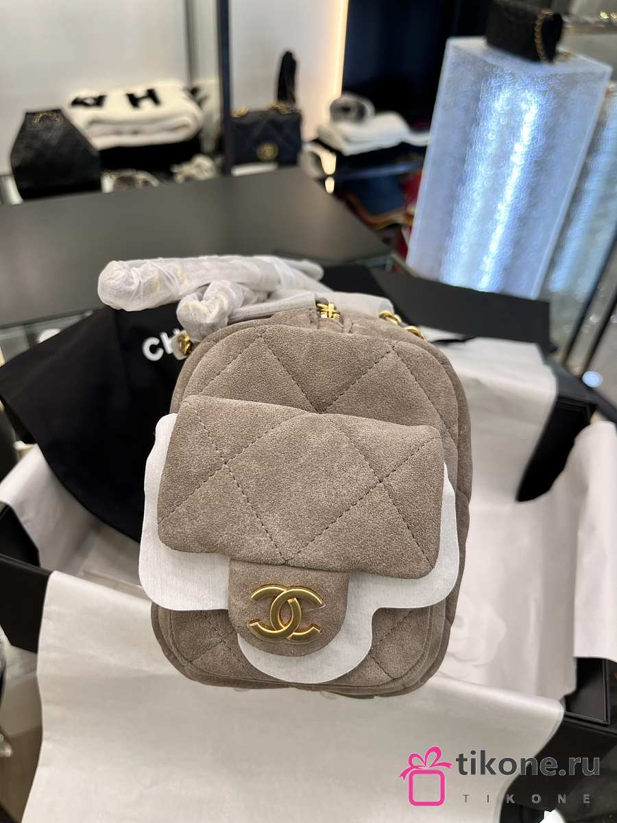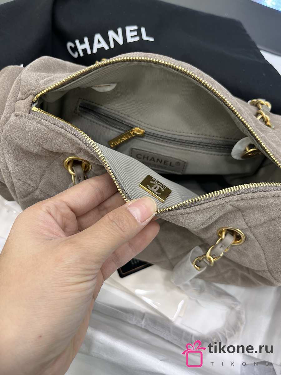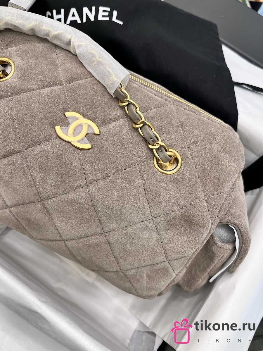 Chanel Small Bowling Bag Suede & Gold Metal Gray - 24x15.5x11.5cm