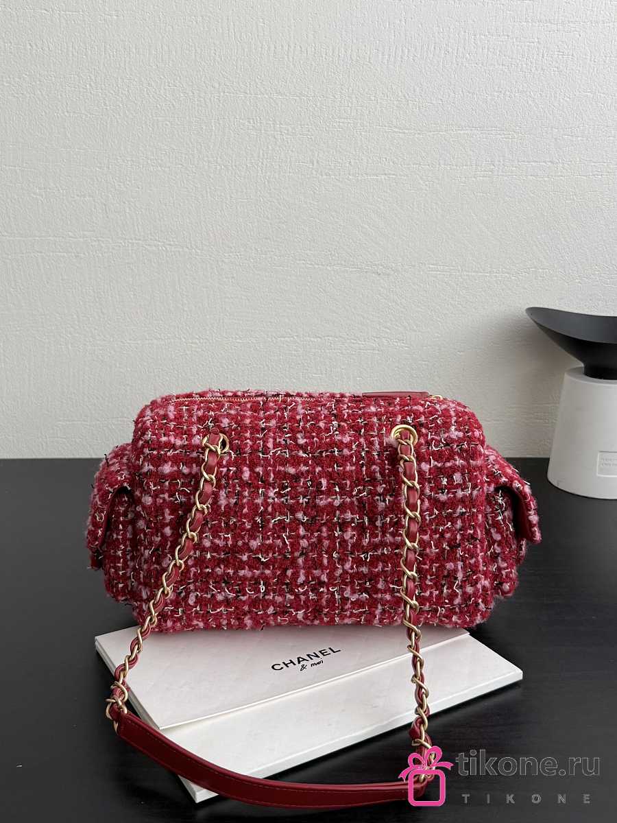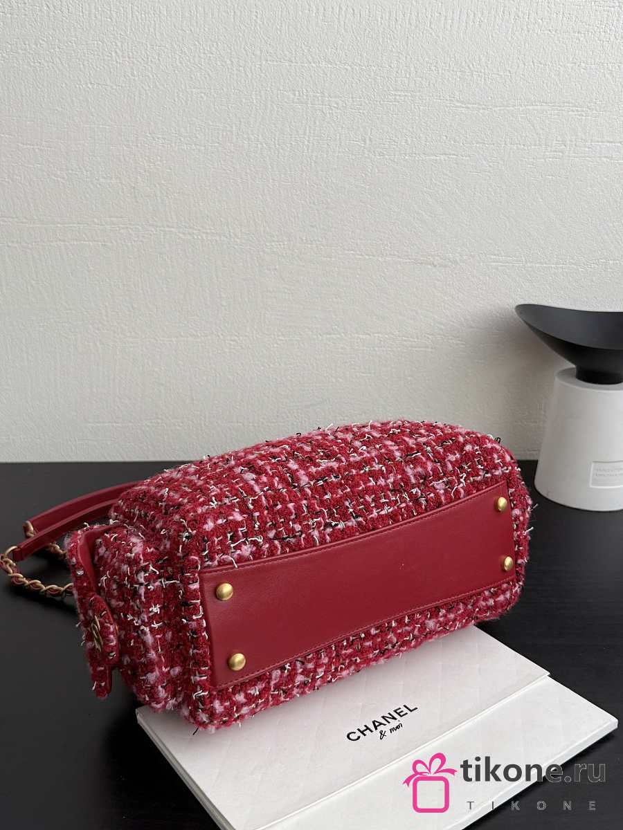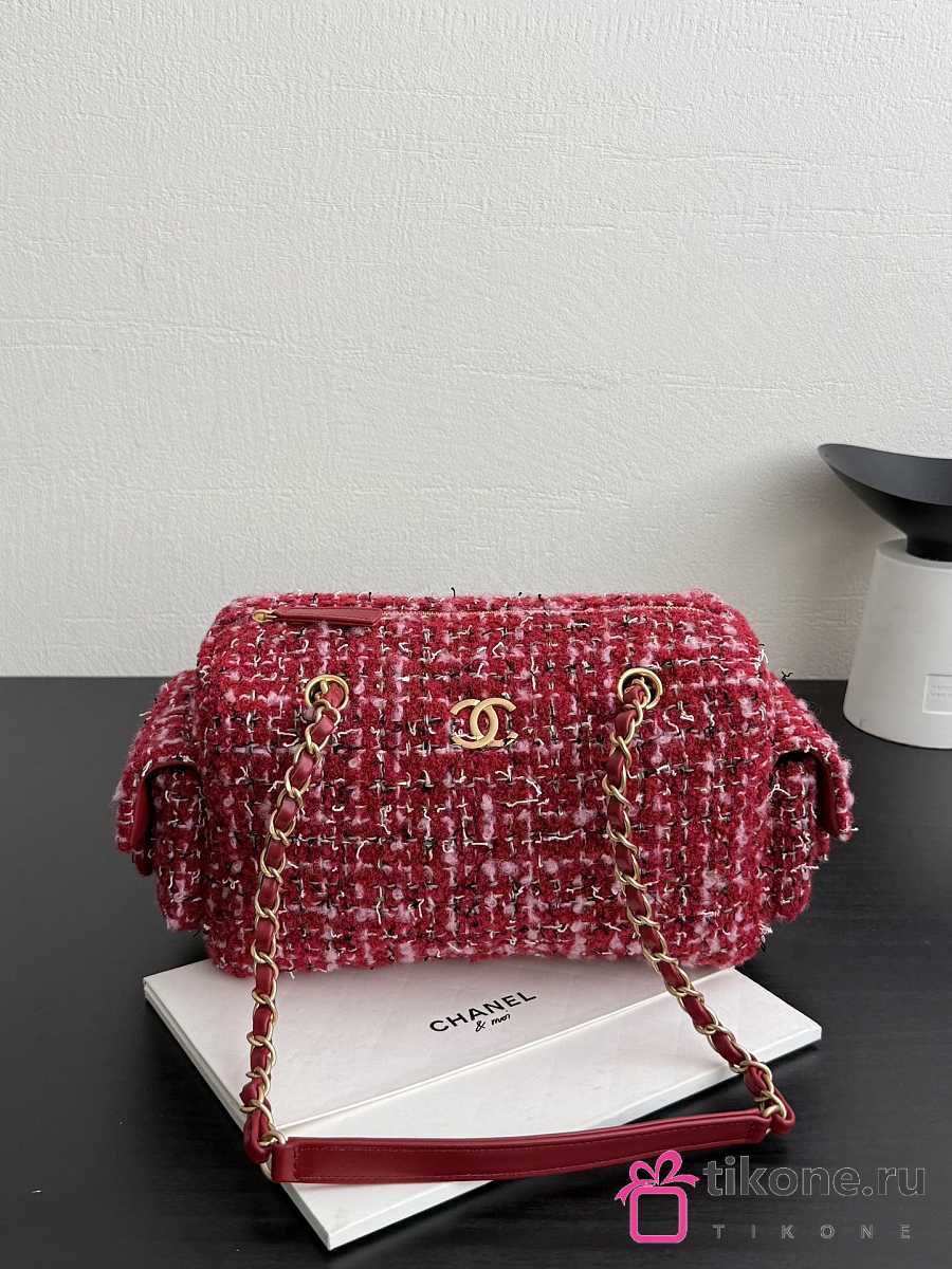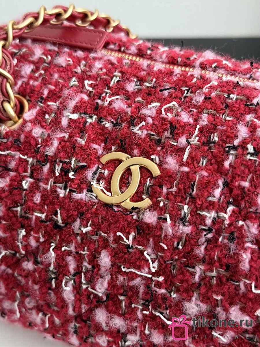 Chanel Small Bowling Bag Tweed & Gold Metal Red Pink & Black - 24x15.5x11.5cm