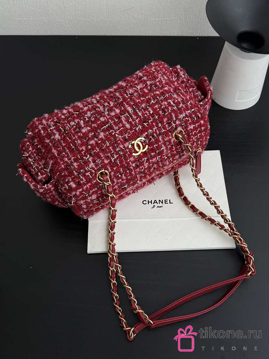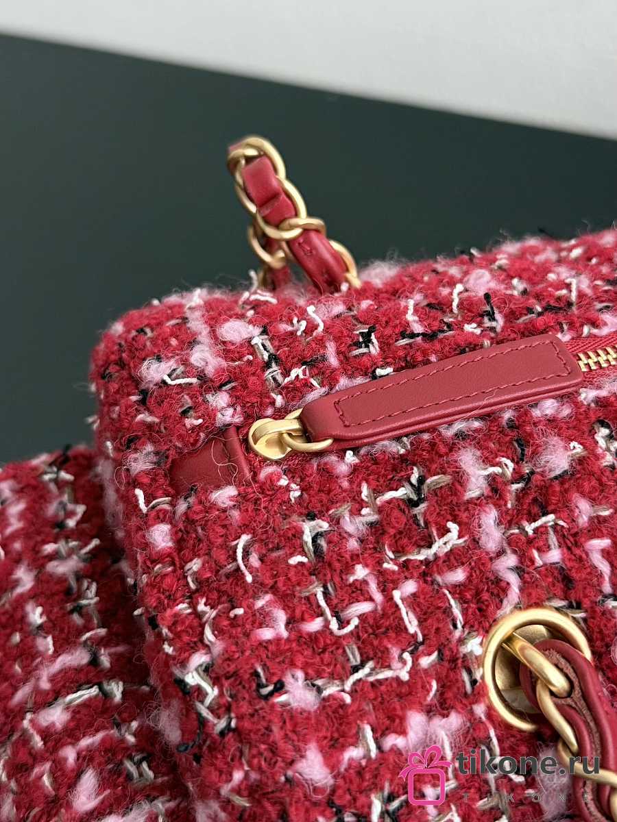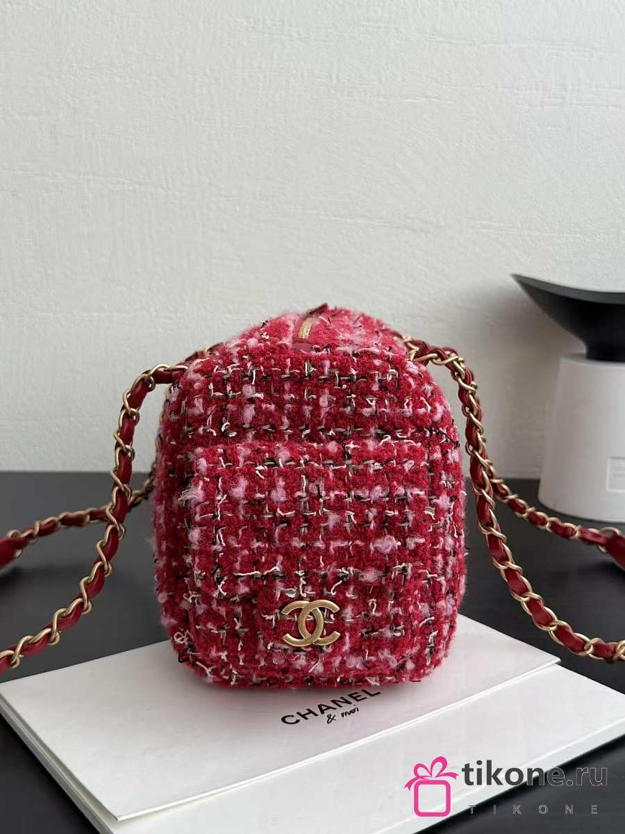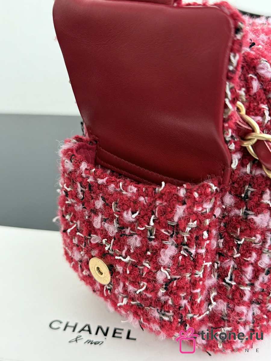 Chanel Small Bowling Bag Tweed & Gold Metal Red Pink & Black - 24x15.5x11.5cm