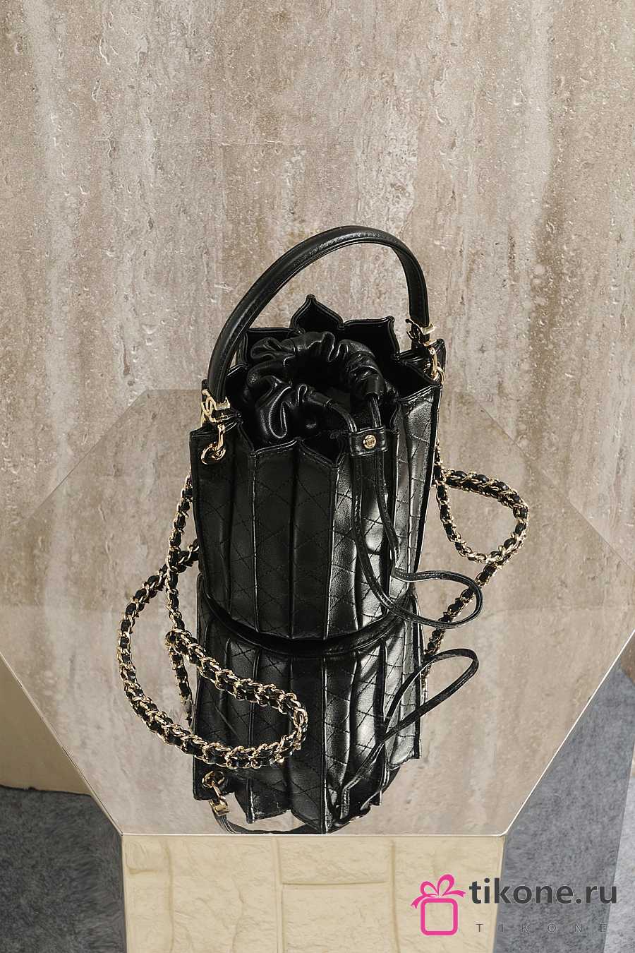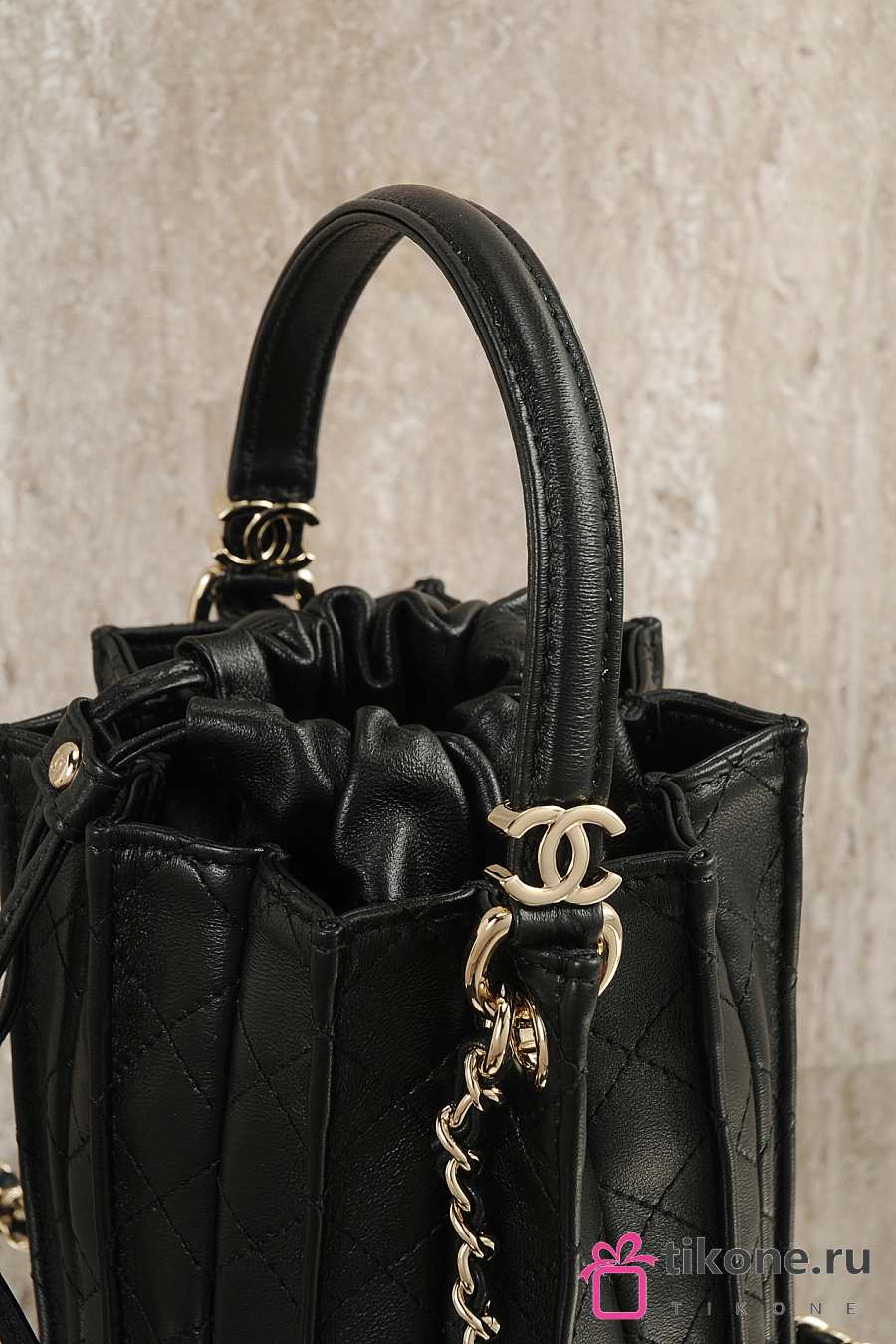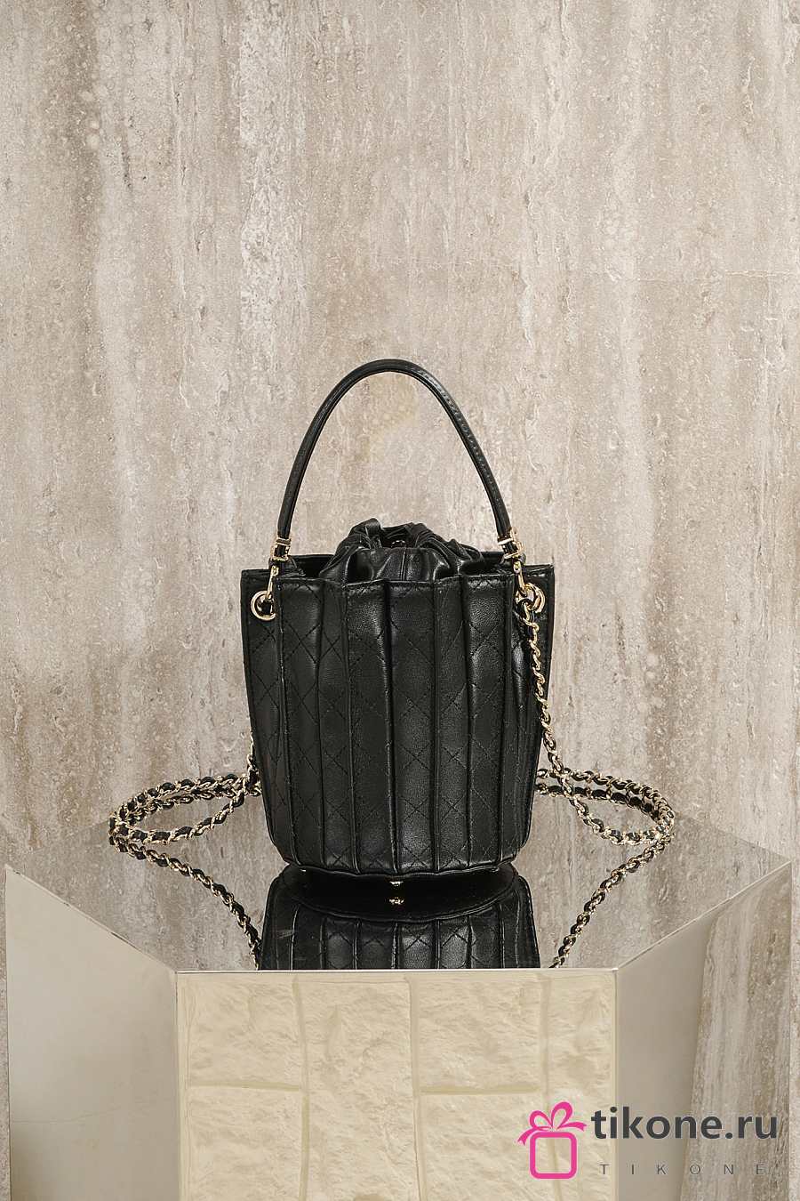 Chanel Small Bucket Bag Lambskin Gold Tone Metal Black - 15.2x14x14cm