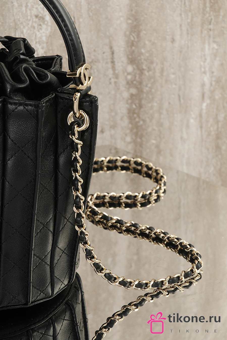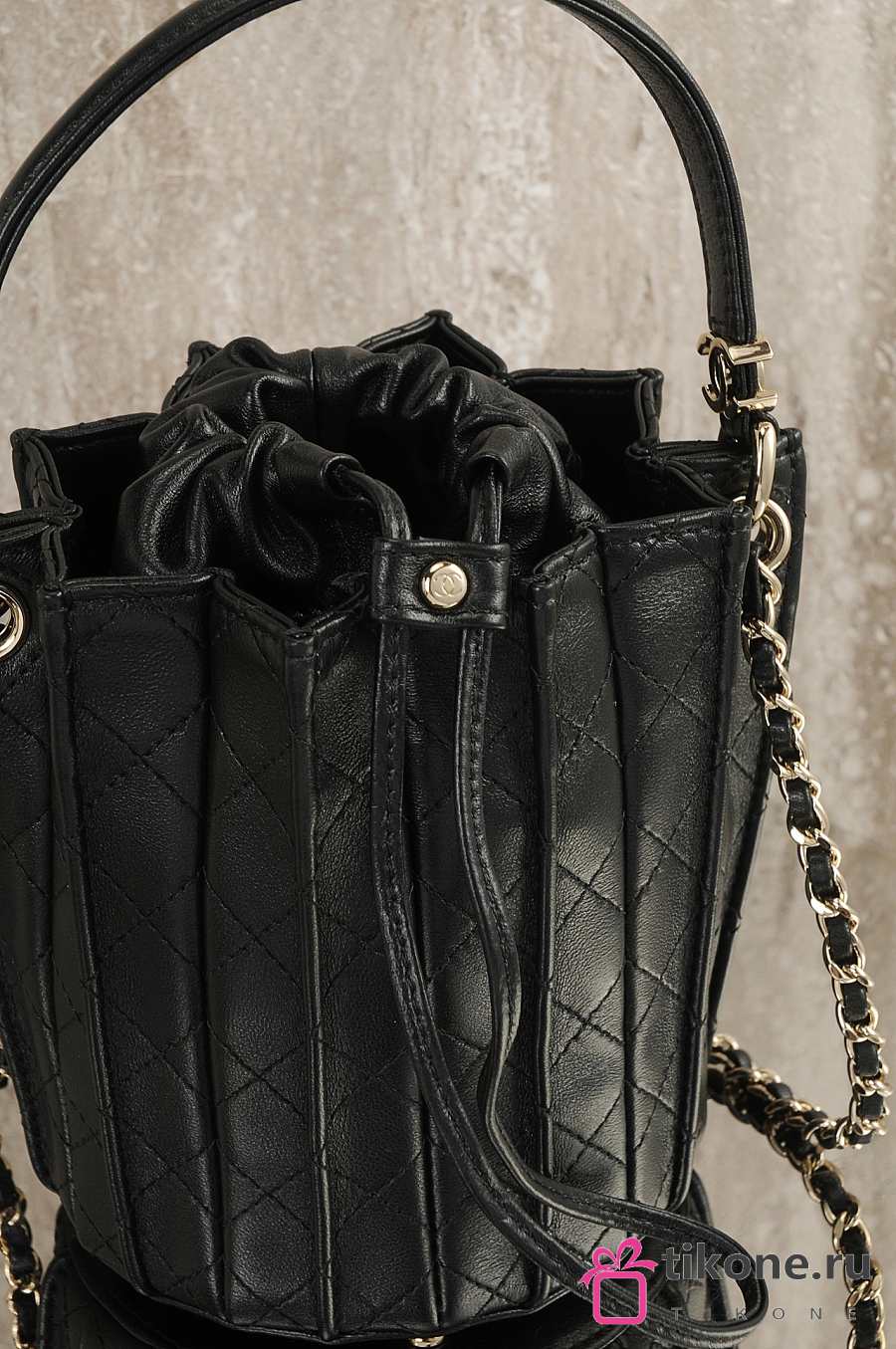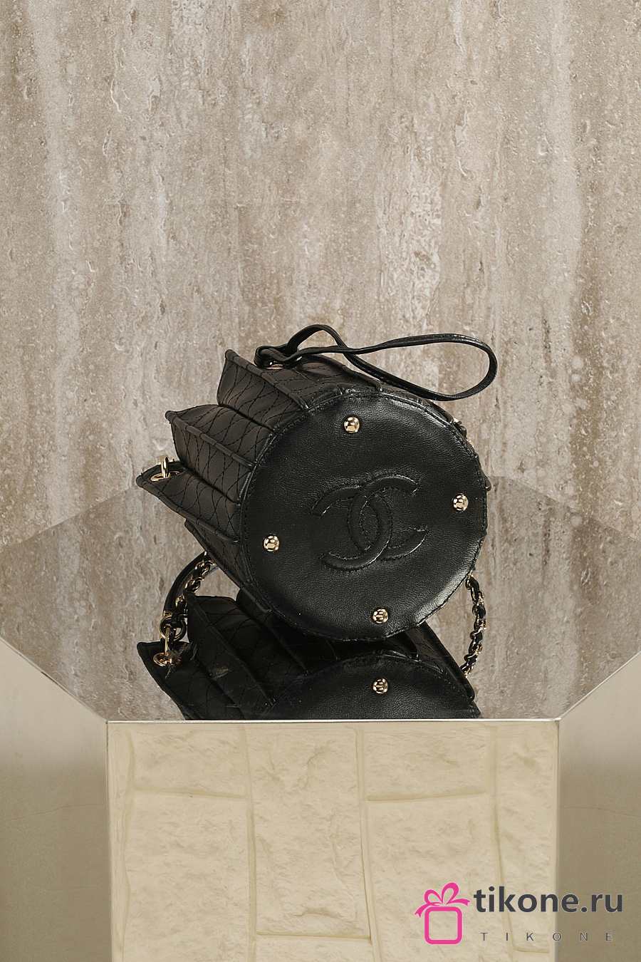Chanel Small Bucket Bag Lambskin Gold Tone Metal Black - 15.2x14x14cm
