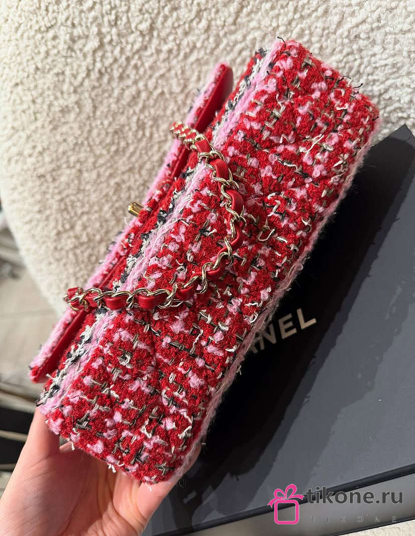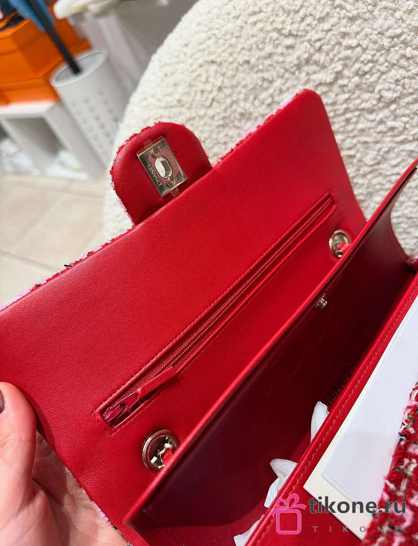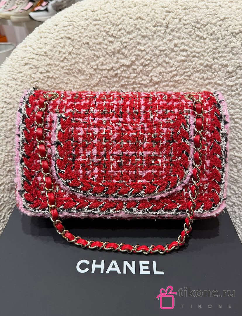 Chanel Small Classic Handbag Tweed & Gold Metal Red Pink & Black - 23x14.5x6cm