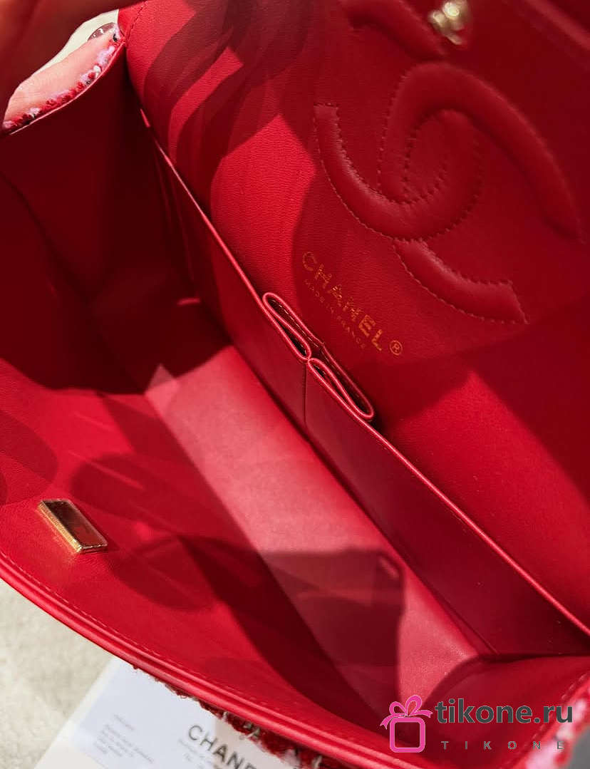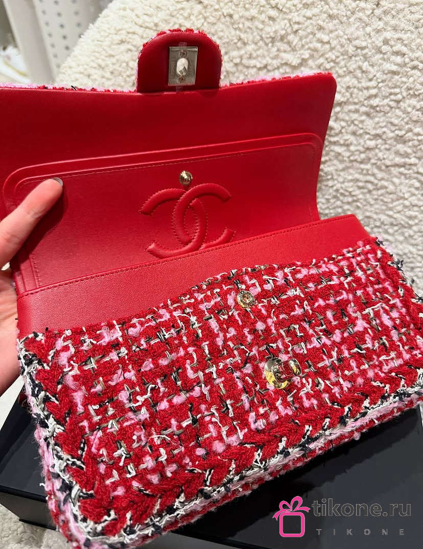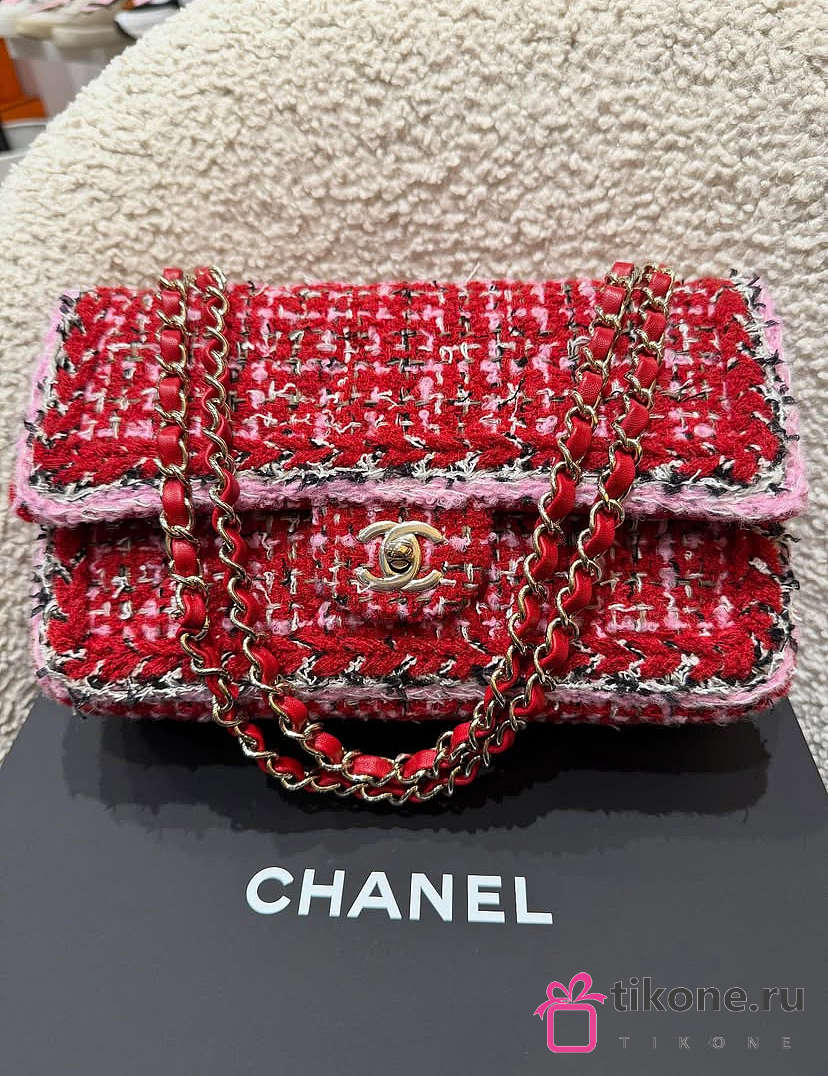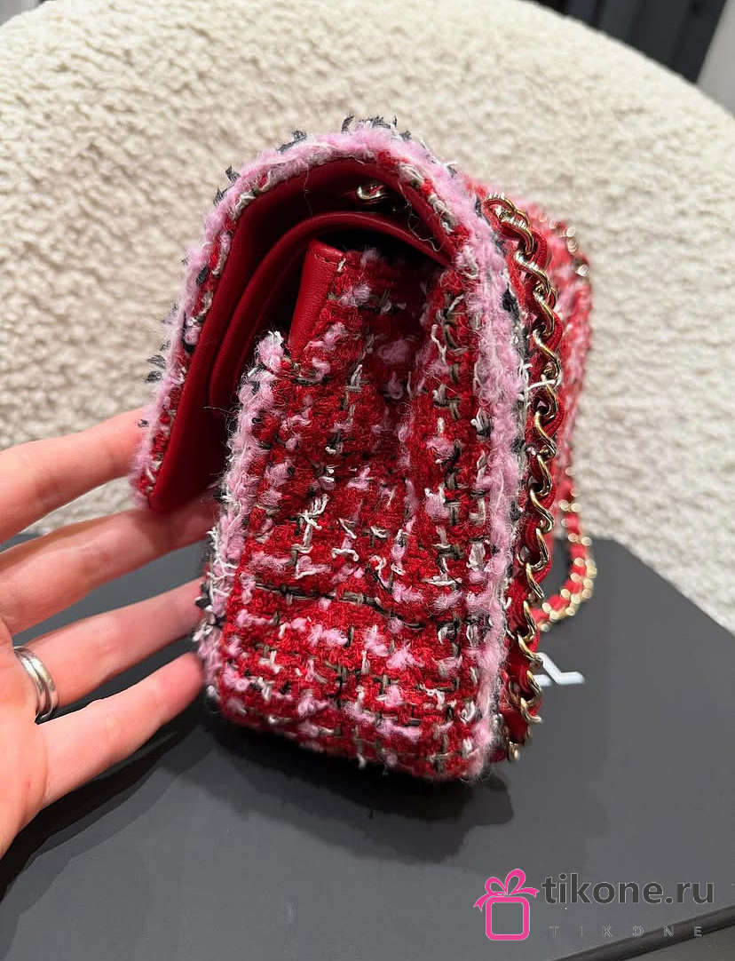 Chanel Small Classic Handbag Tweed & Gold Metal Red Pink & Black - 23x14.5x6cm