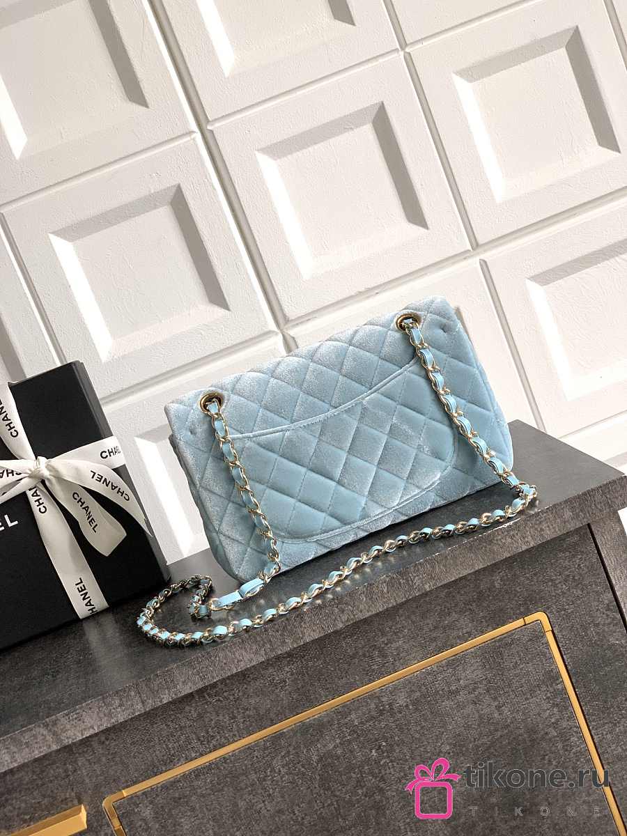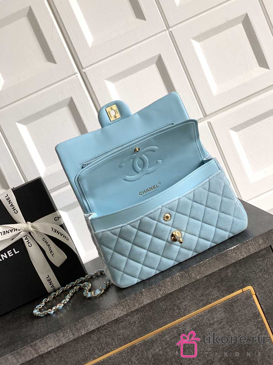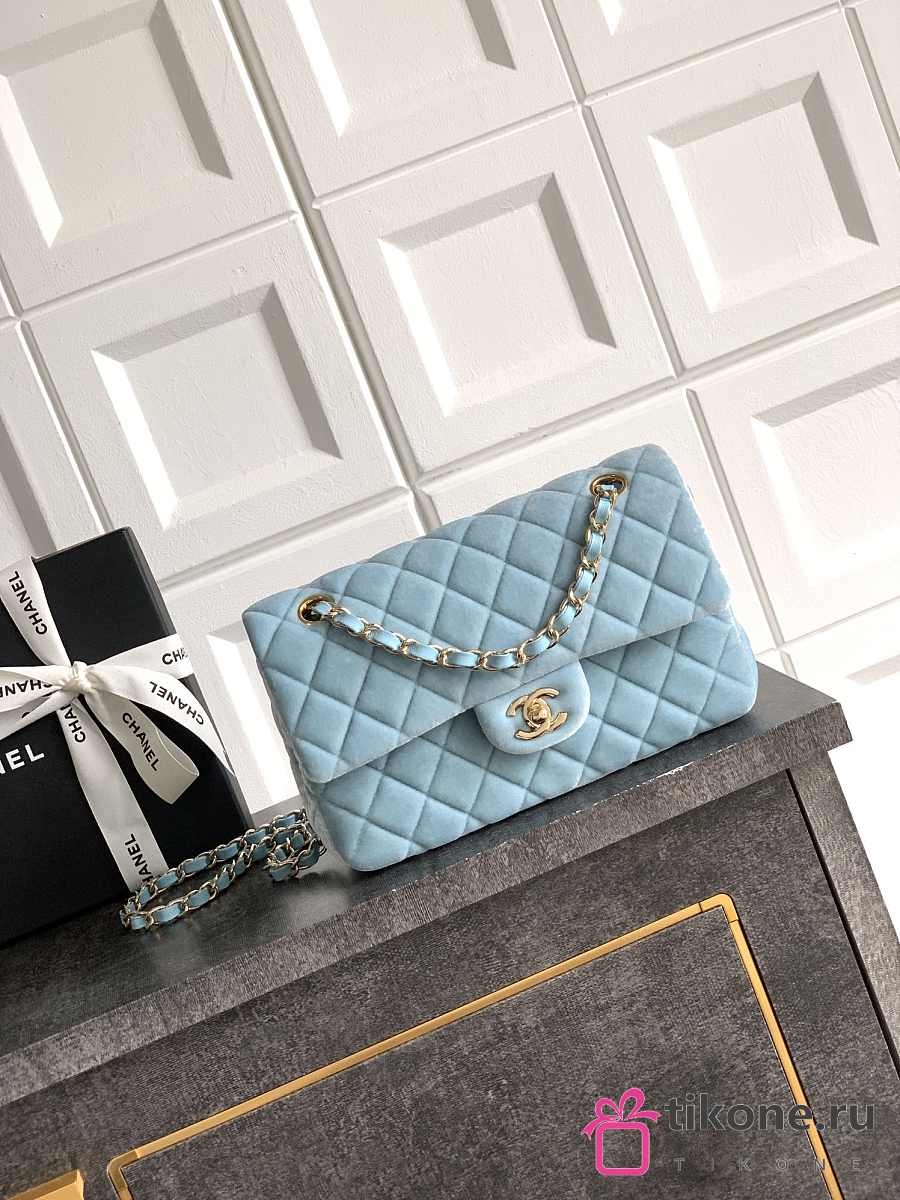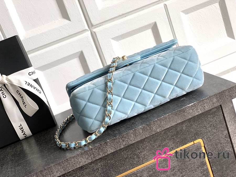 Chanel Small Classic Handbag Velvet & Gold Metal Blue - 23x14.5x6cm