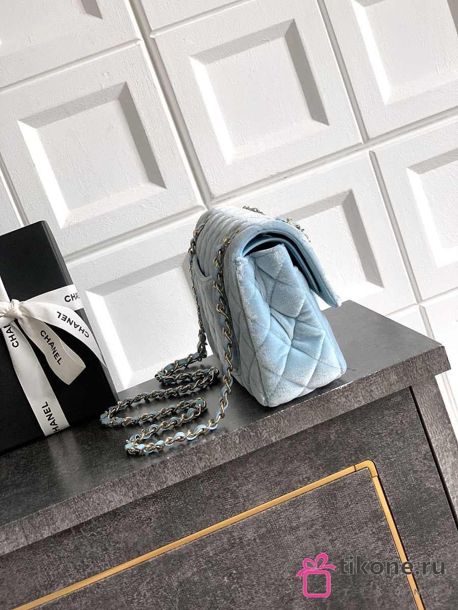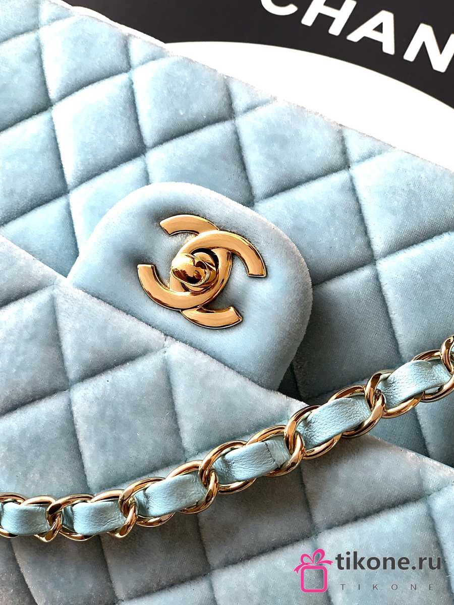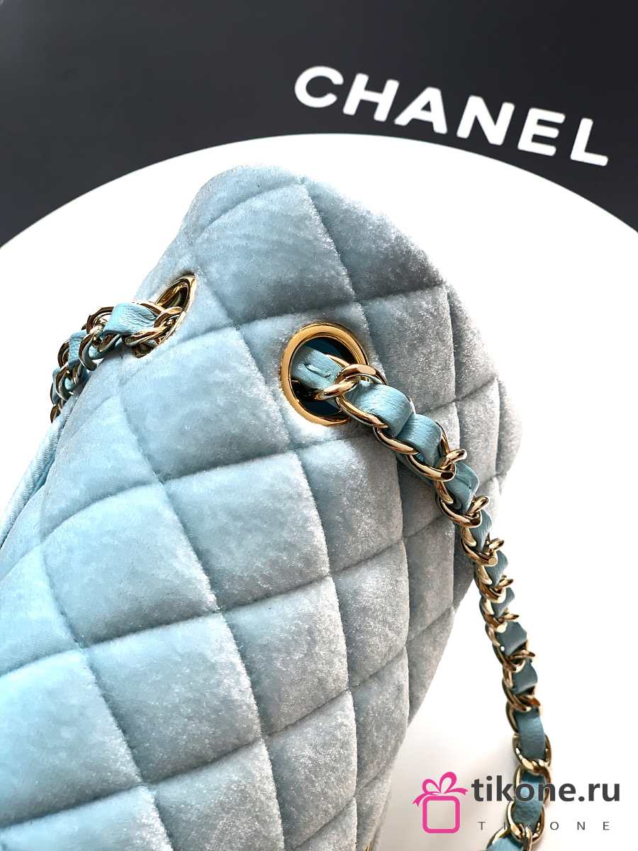 Chanel Small Classic Handbag Velvet & Gold Metal Blue - 23x14.5x6cm