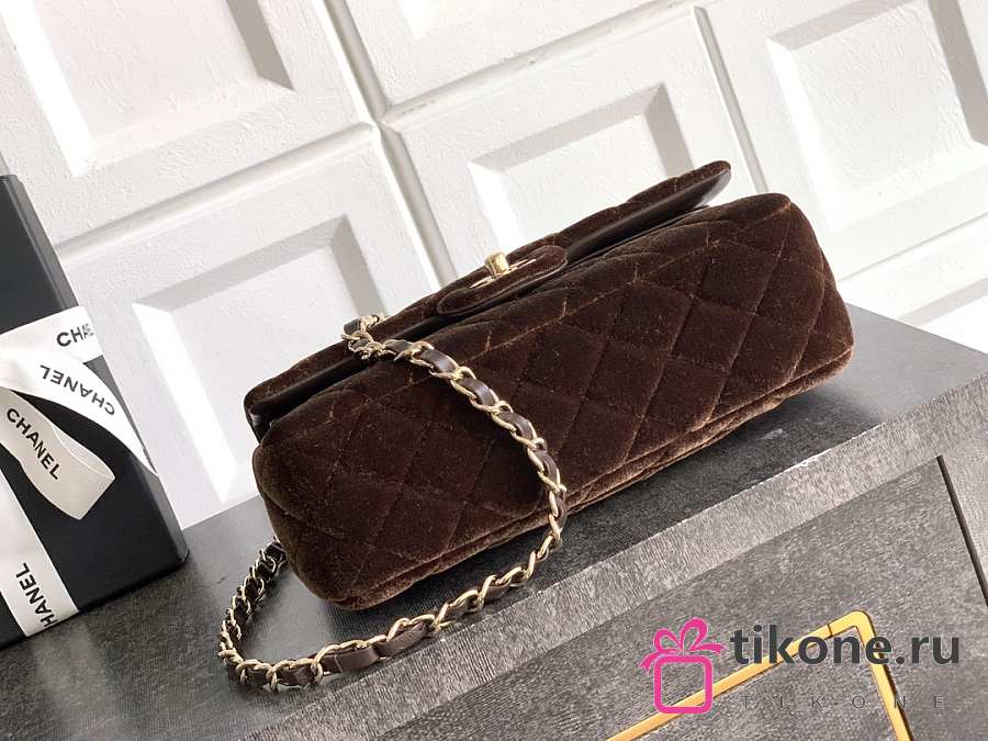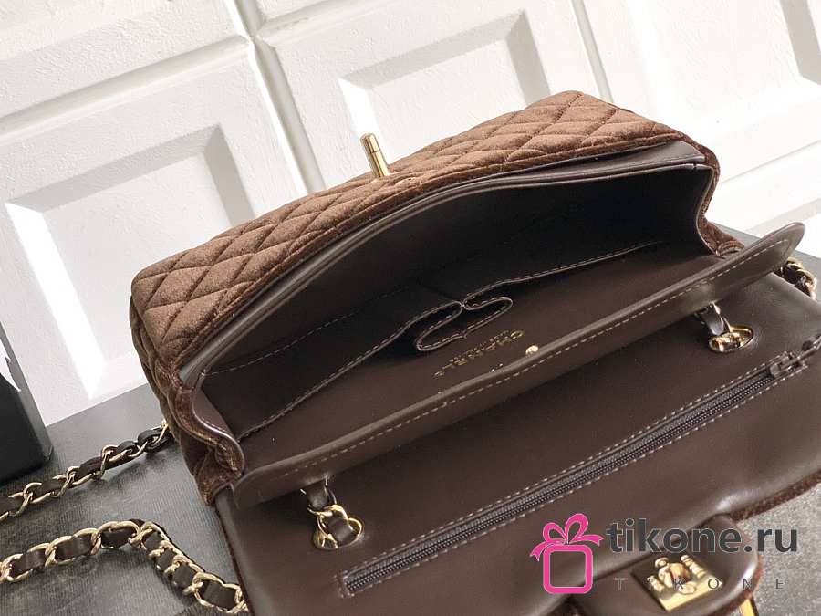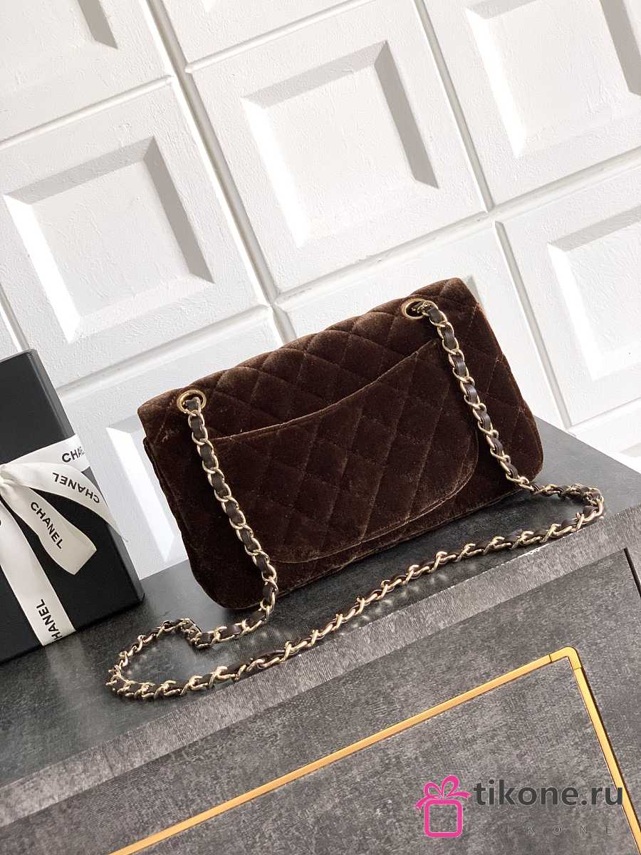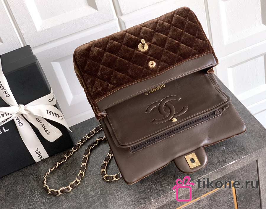 Chanel Small Classic Handbag Velvet & Gold Metal Dark Brown - 23x14.5x6cm