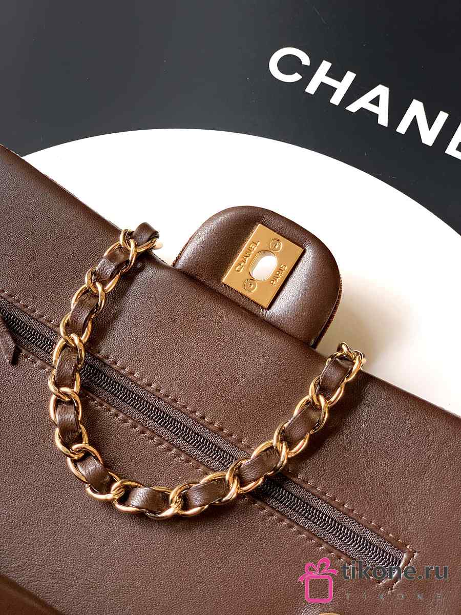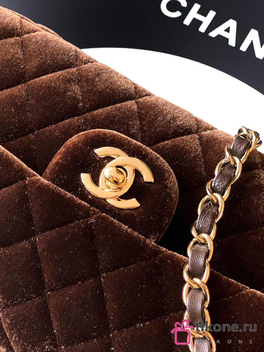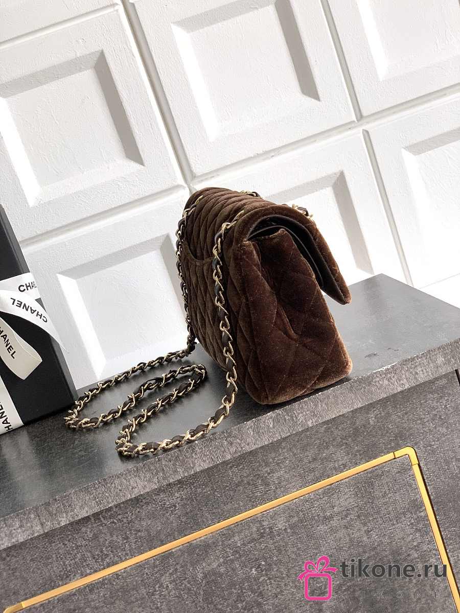 Chanel Small Classic Handbag Velvet & Gold Metal Dark Brown - 23x14.5x6cm