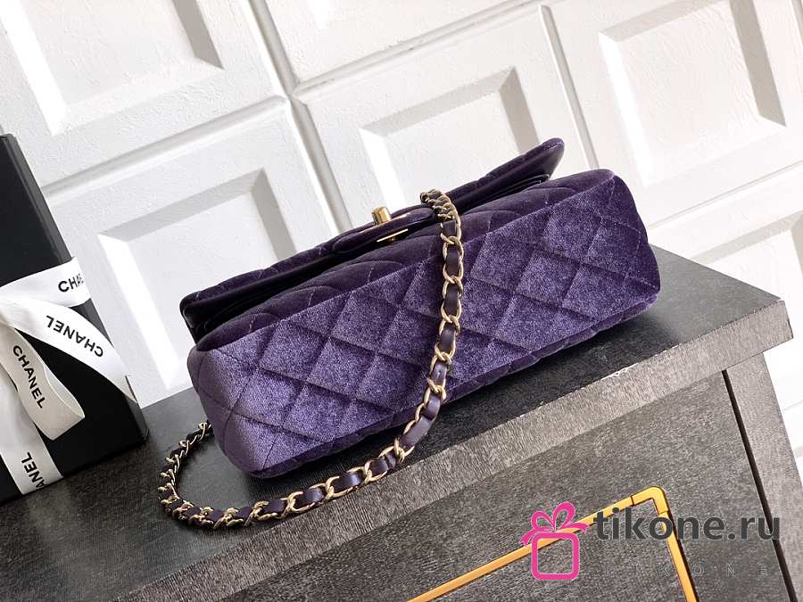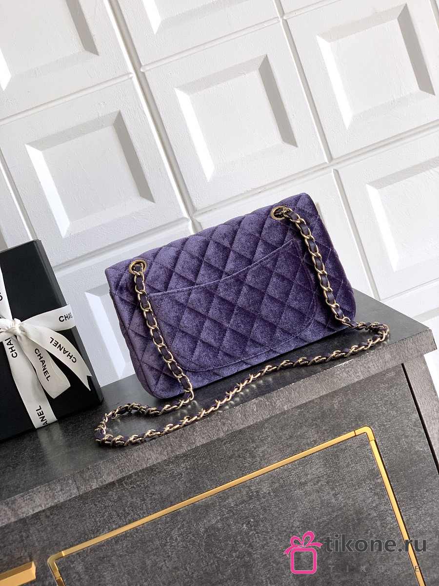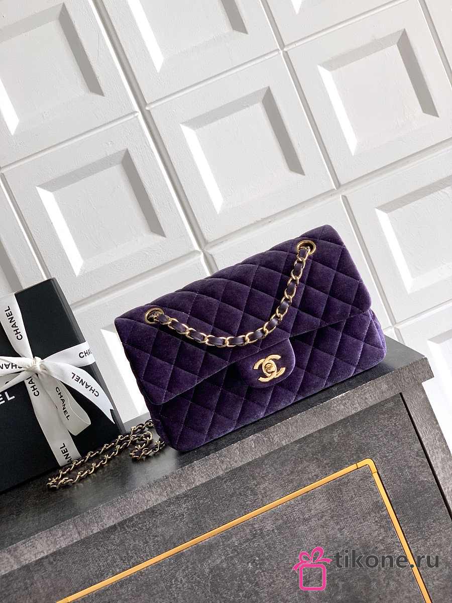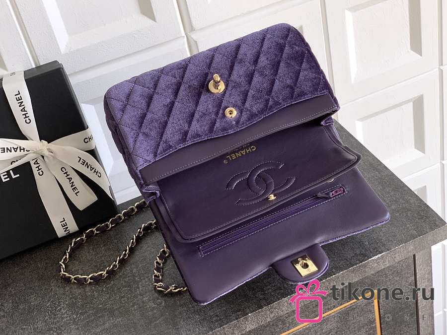 Chanel Small Classic Handbag Velvet & Gold Metal Purple - 23x14.5x6cm