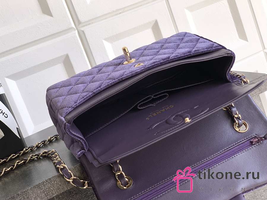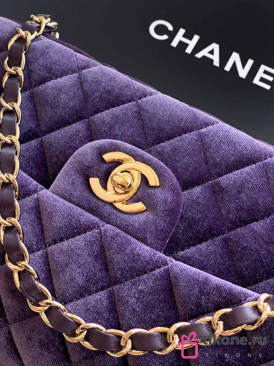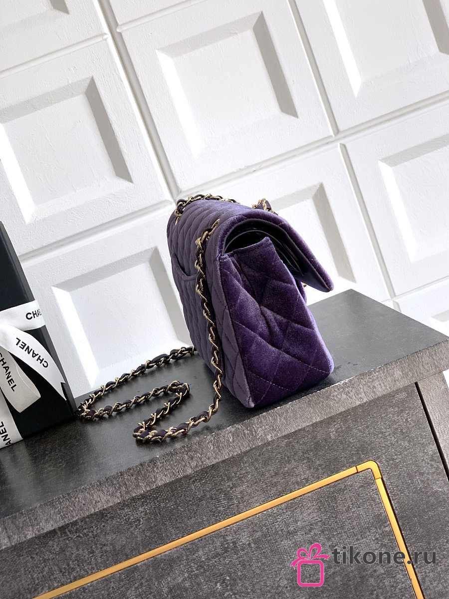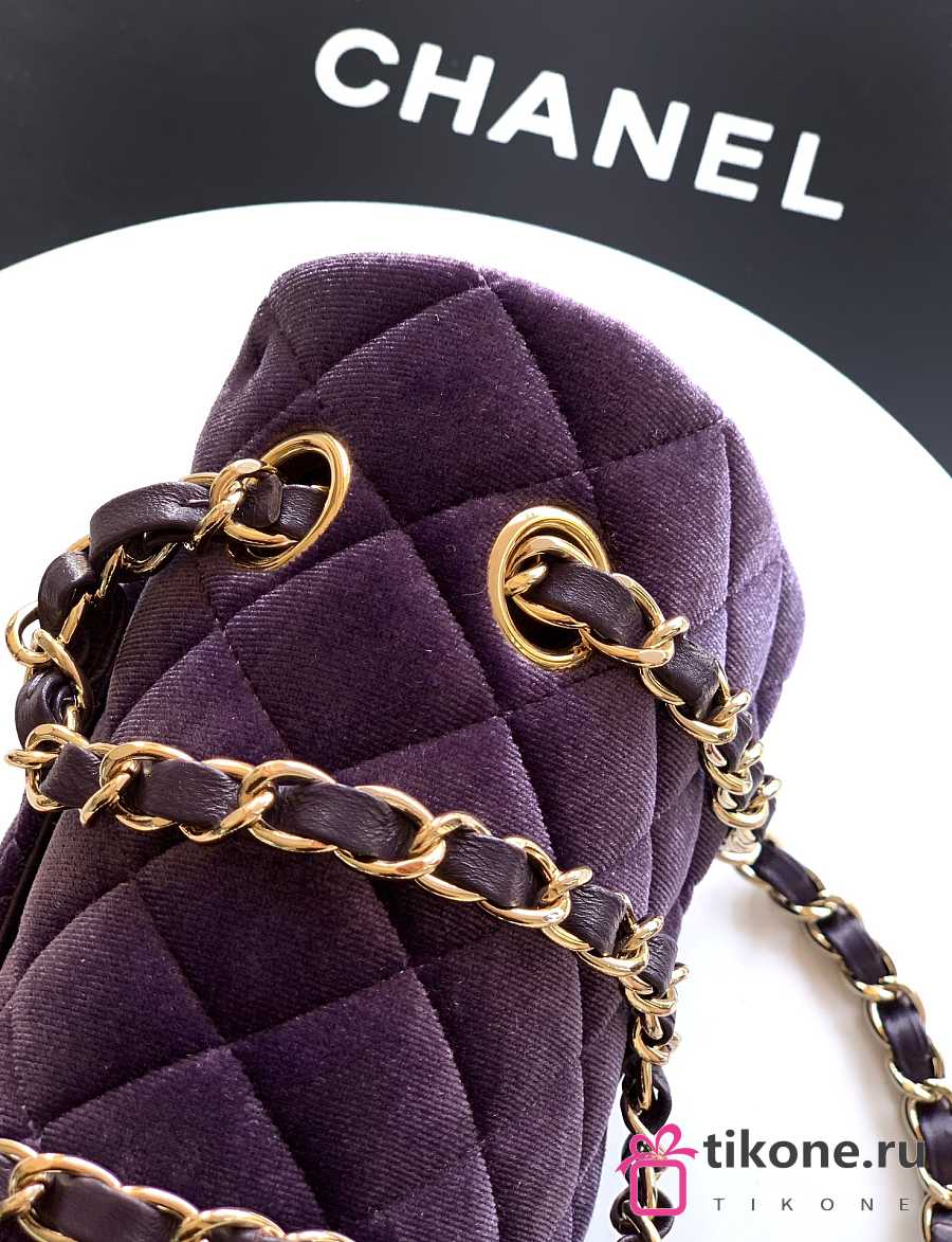 Chanel Small Classic Handbag Velvet & Gold Metal Purple - 23x14.5x6cm