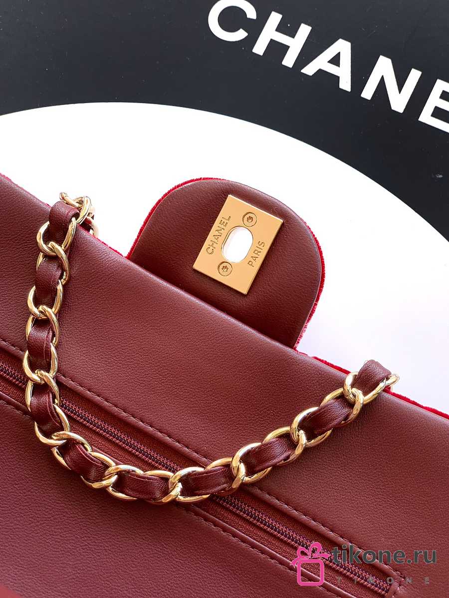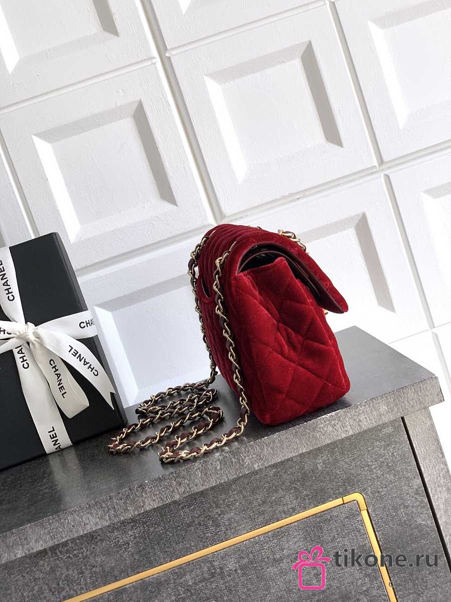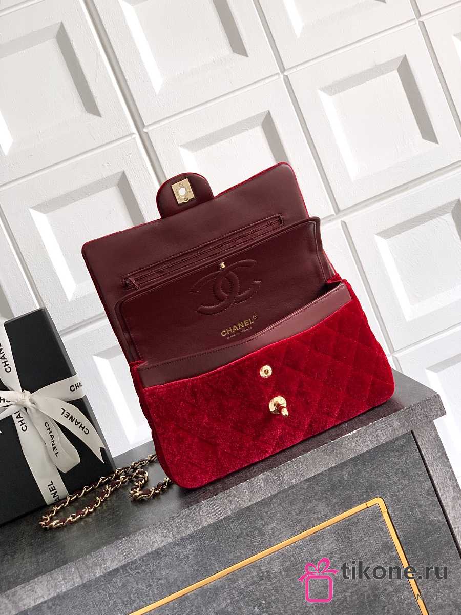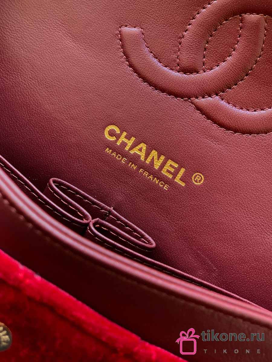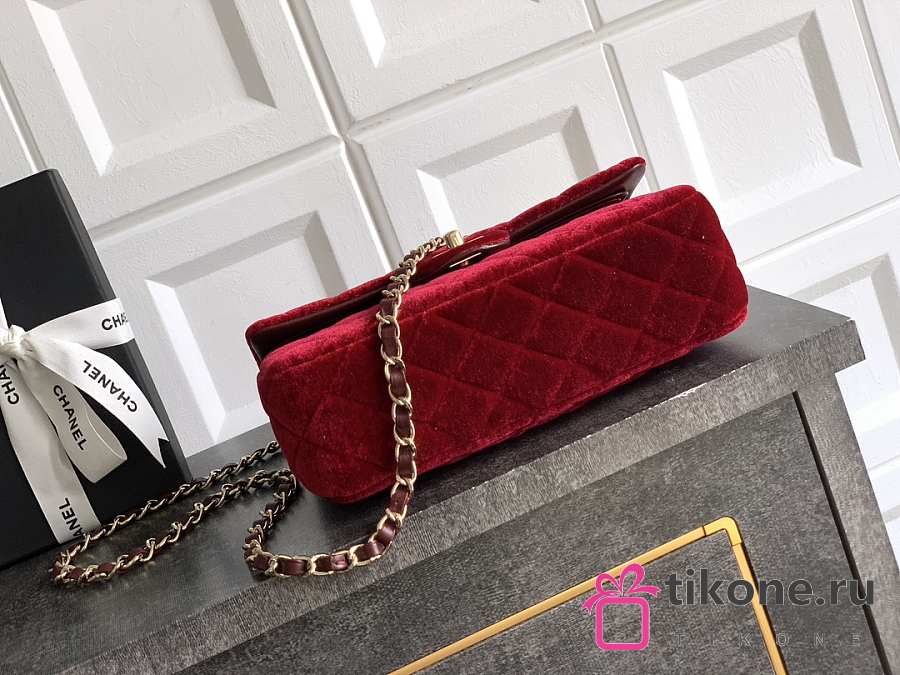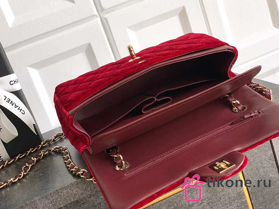 Chanel Small Classic Handbag Velvet & Gold Metal Red - 23x14.5x6cm