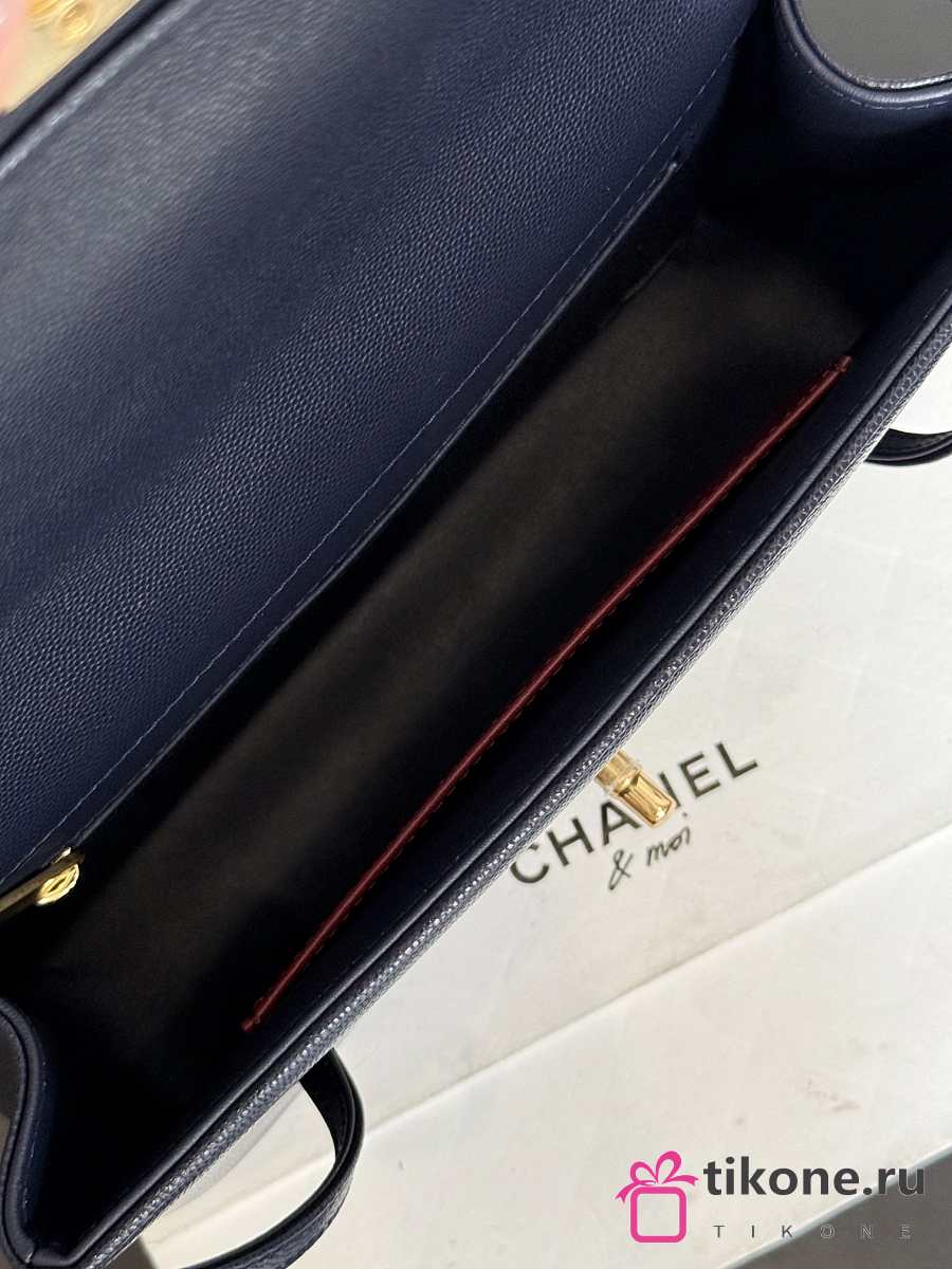 Chanel Small Flap Bag Grained Shiny Calfskin & Gold-Tone Metal Dark Blue - 15x22x7cm