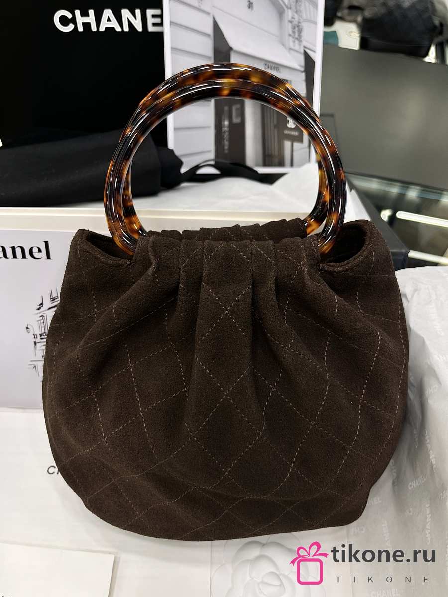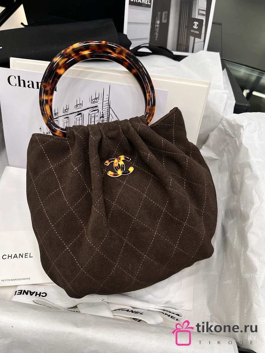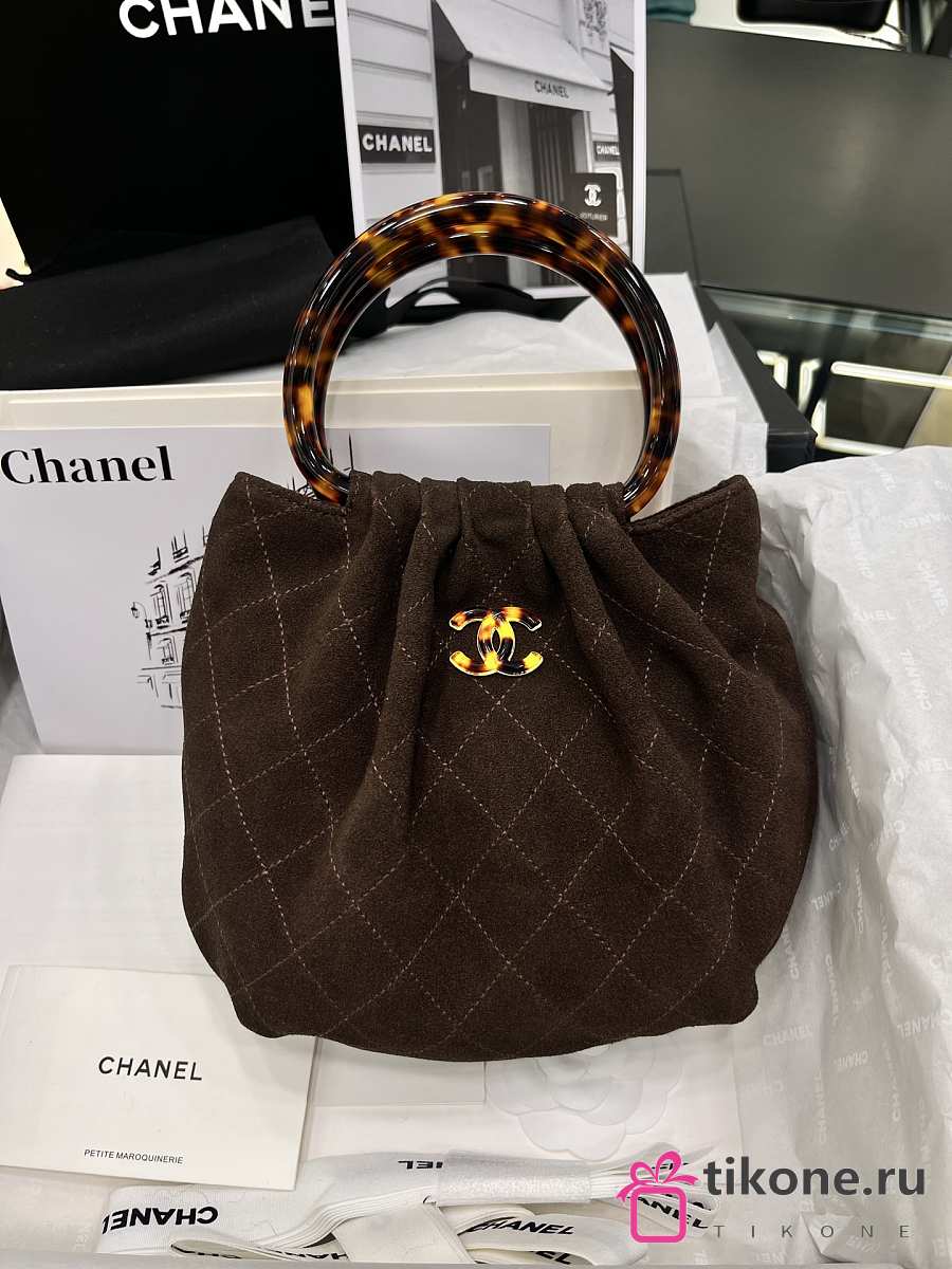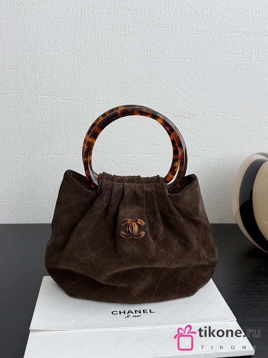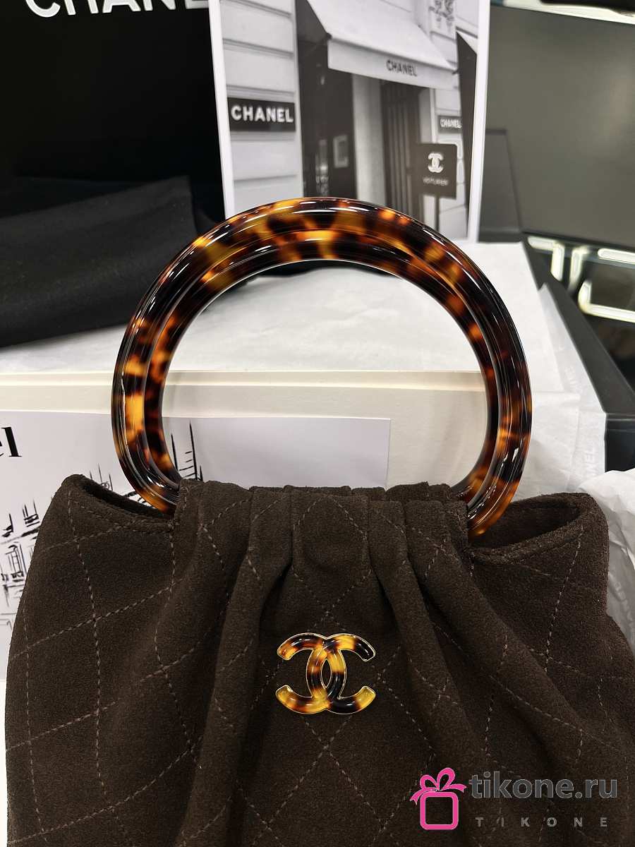Chanel Small Hobo Bag Suede Calfskin Turtoise Shell Effect Plexi & Gold Tone Metal Brown - 24x18x12cm