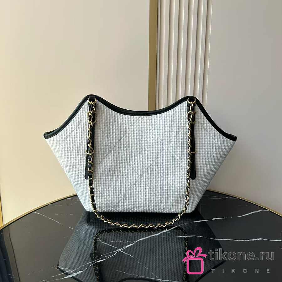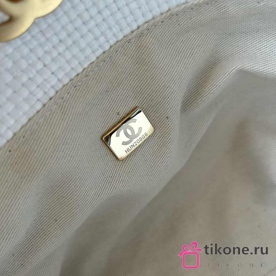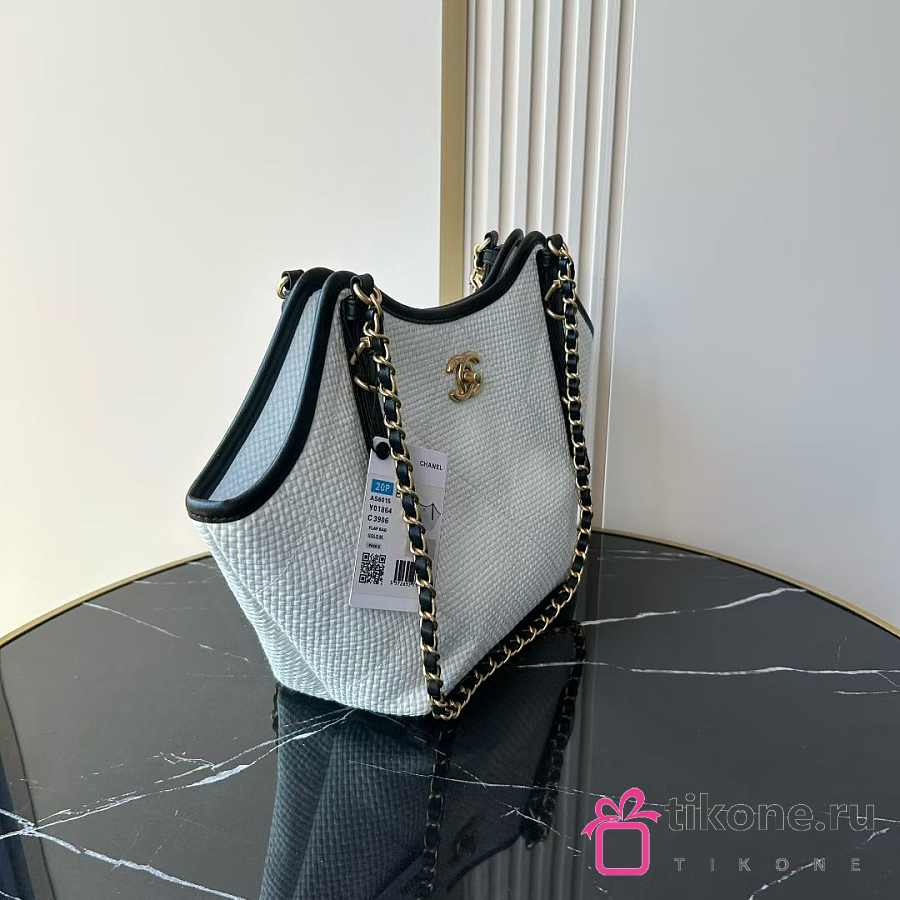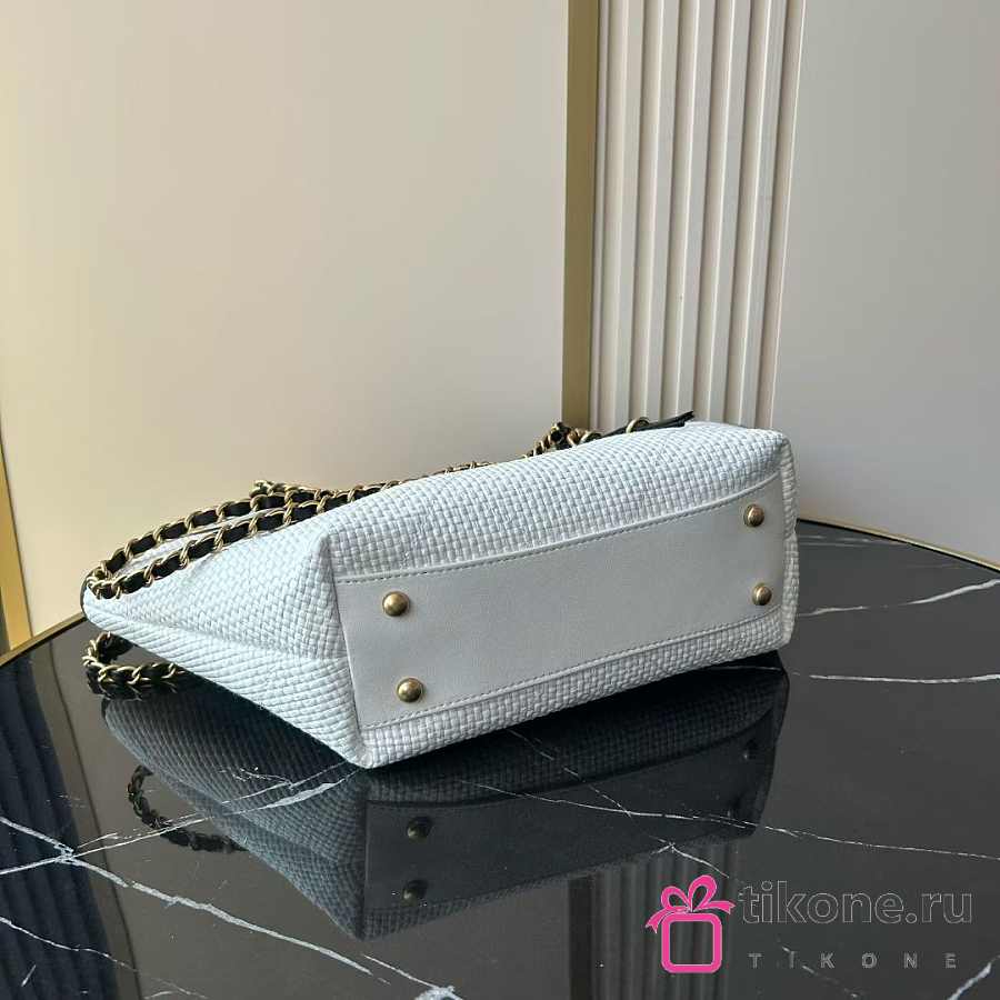 Chanel Small Shopping Bag Braided Raffia Calfskin & Gold Tone Metal White & Black - 20x28x7cm