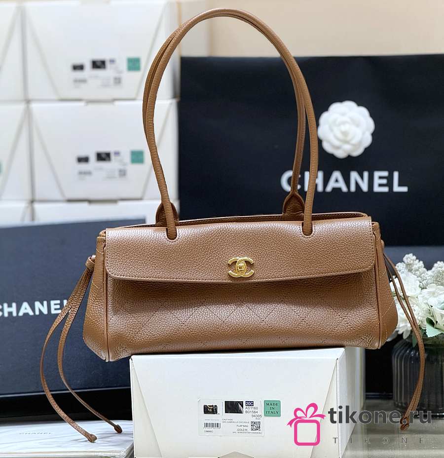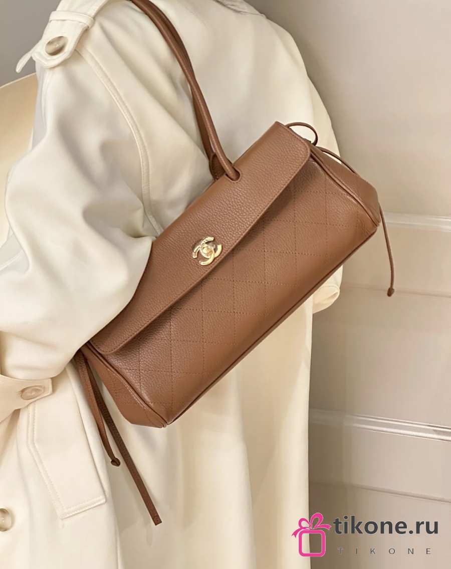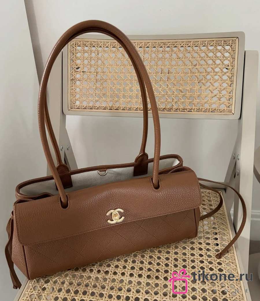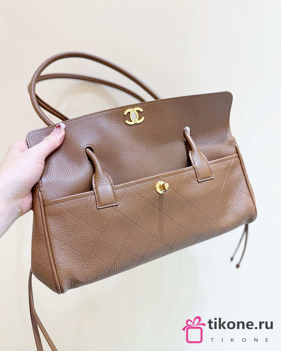 Chanel Small Tote Grained Calfskin & Gold-Tone Metal Brown - 30.5x15x11.5cm