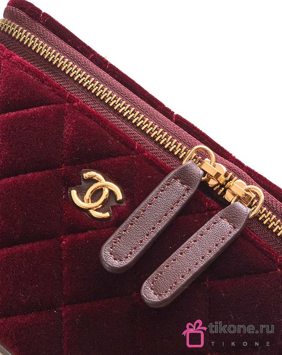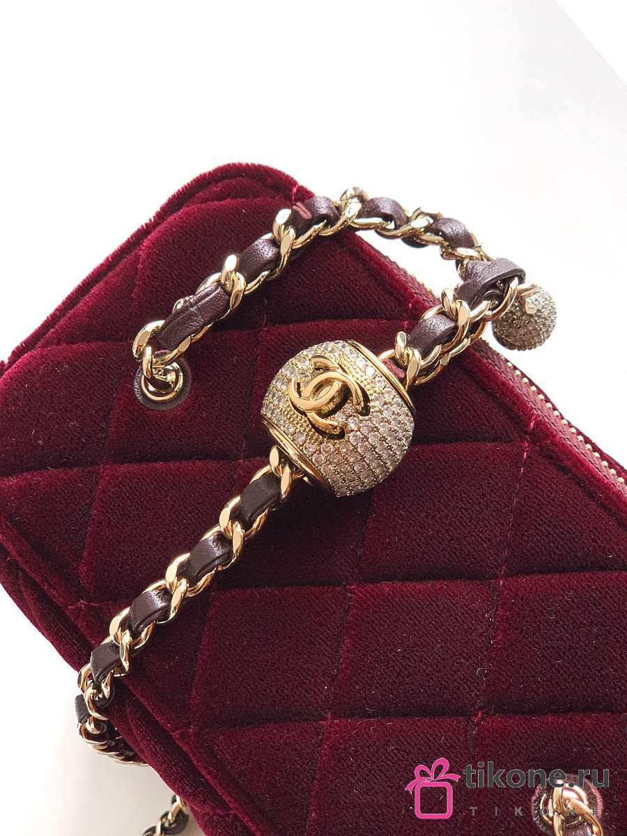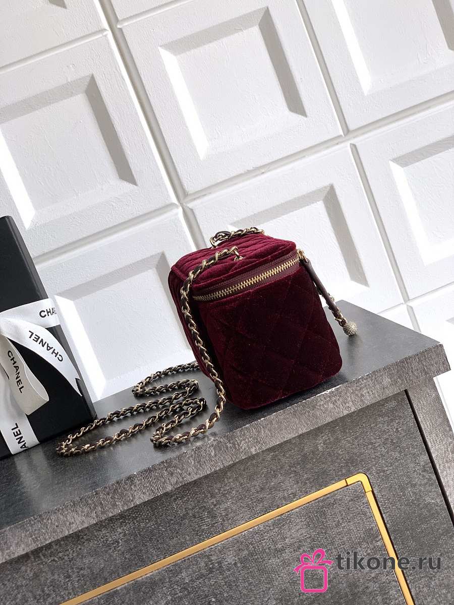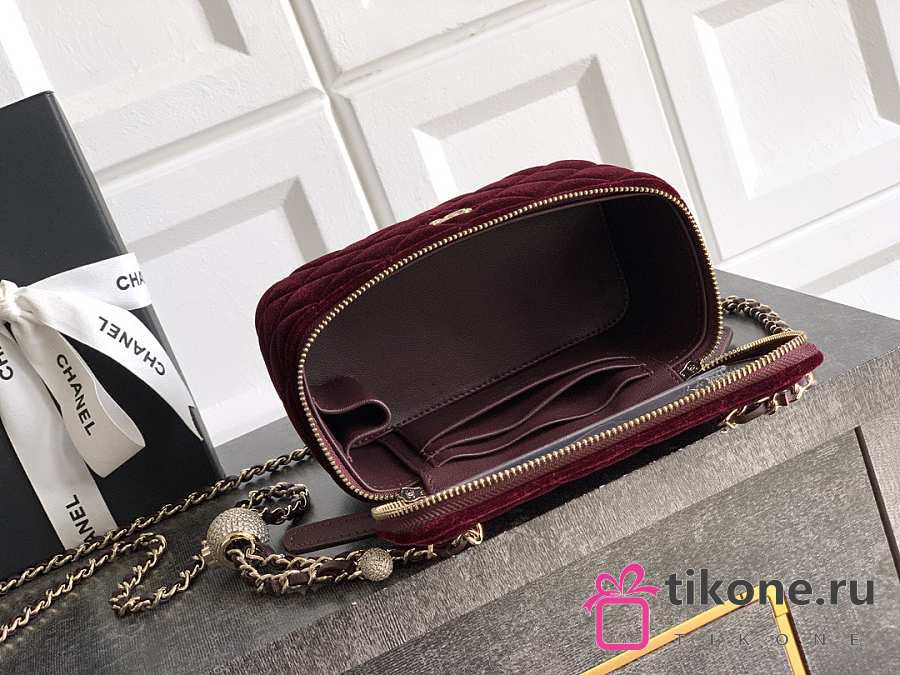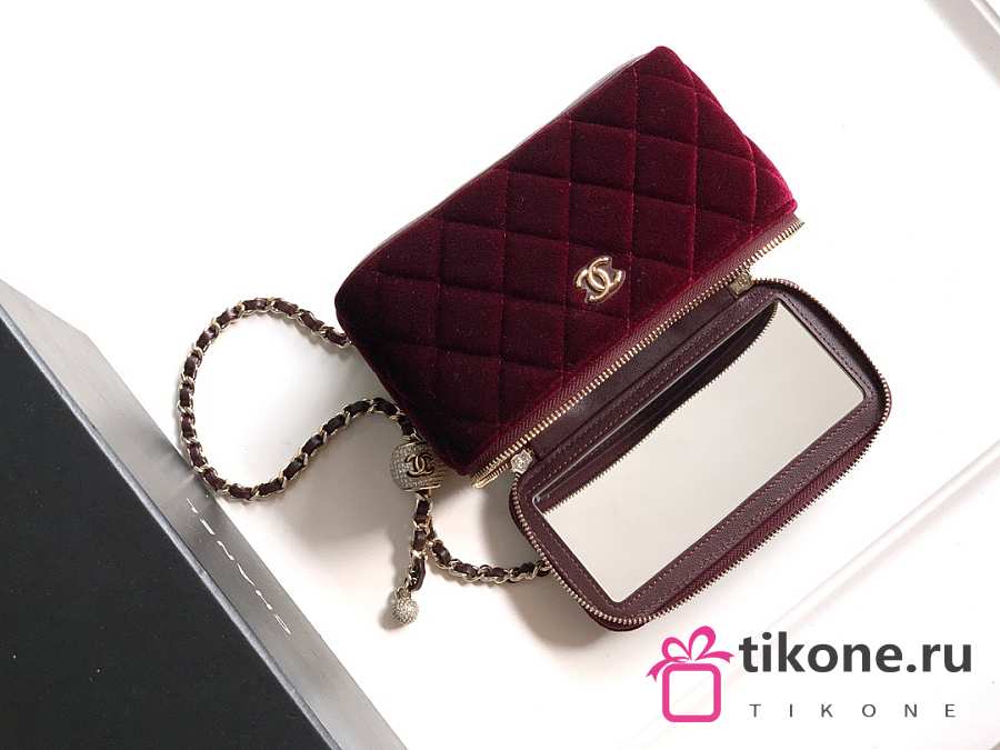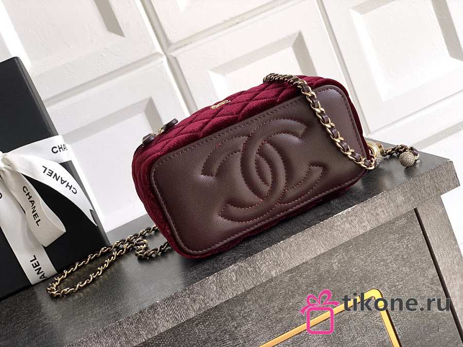 Chanel Small Vanity with Chain Velvet Strass & Gold Tone Metal Burgundy - 17x8x9.5cm