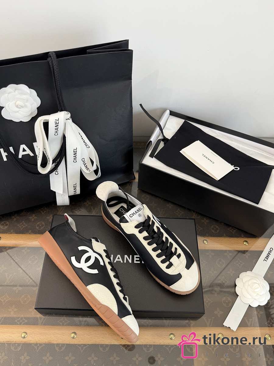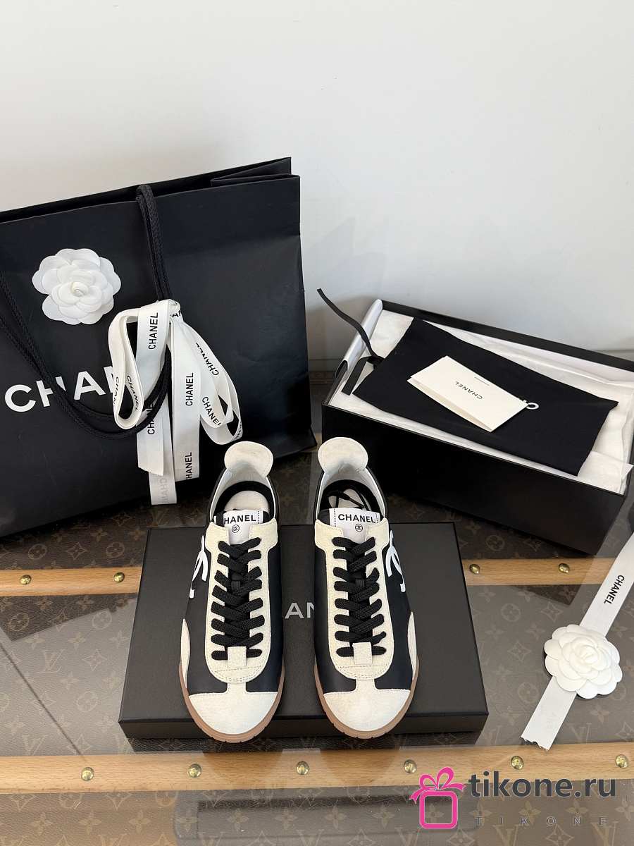 Chanel Sneakers Calfskin & Embossed Suede Calfskin Black & White G47125