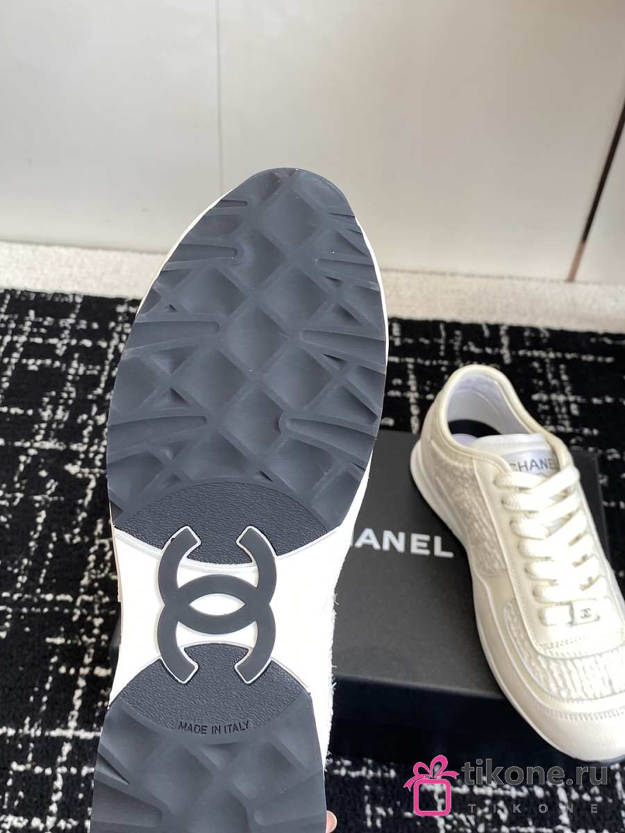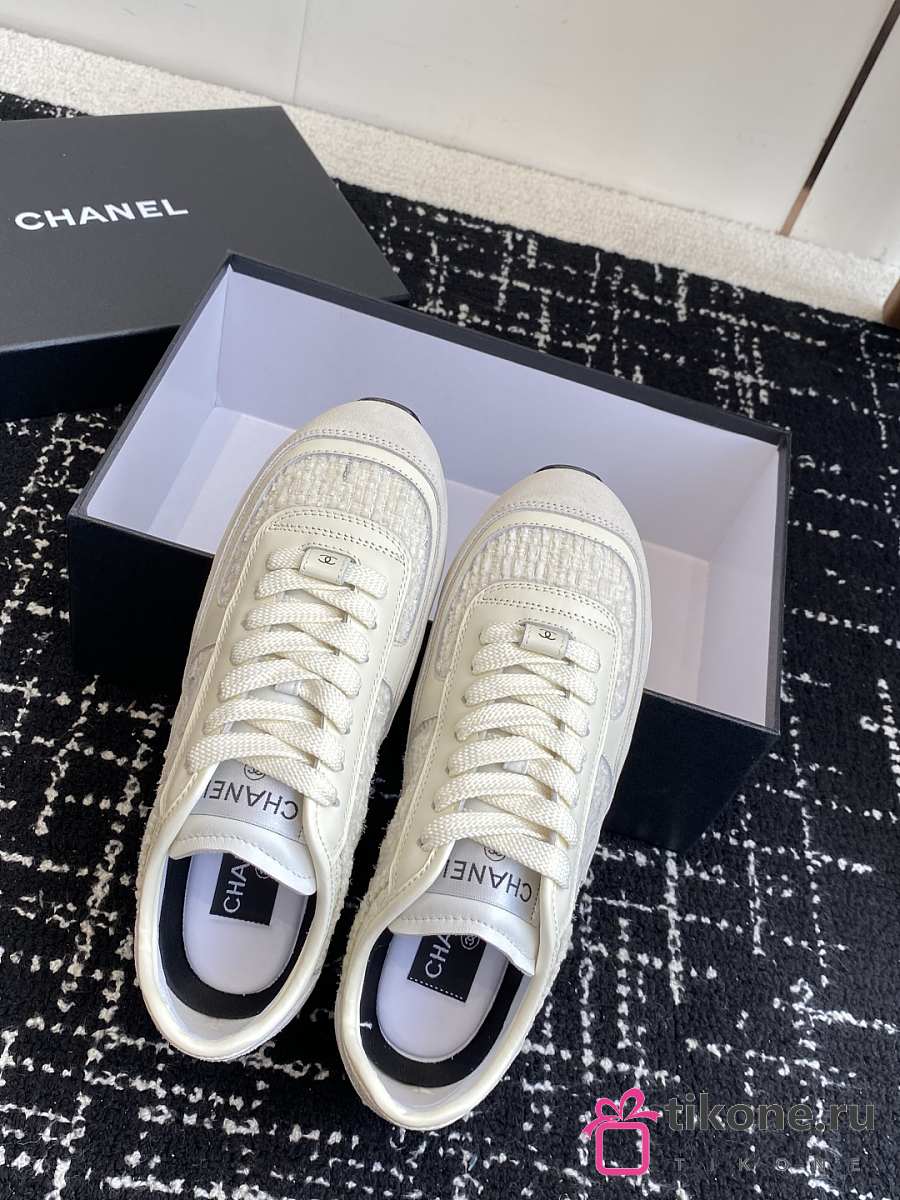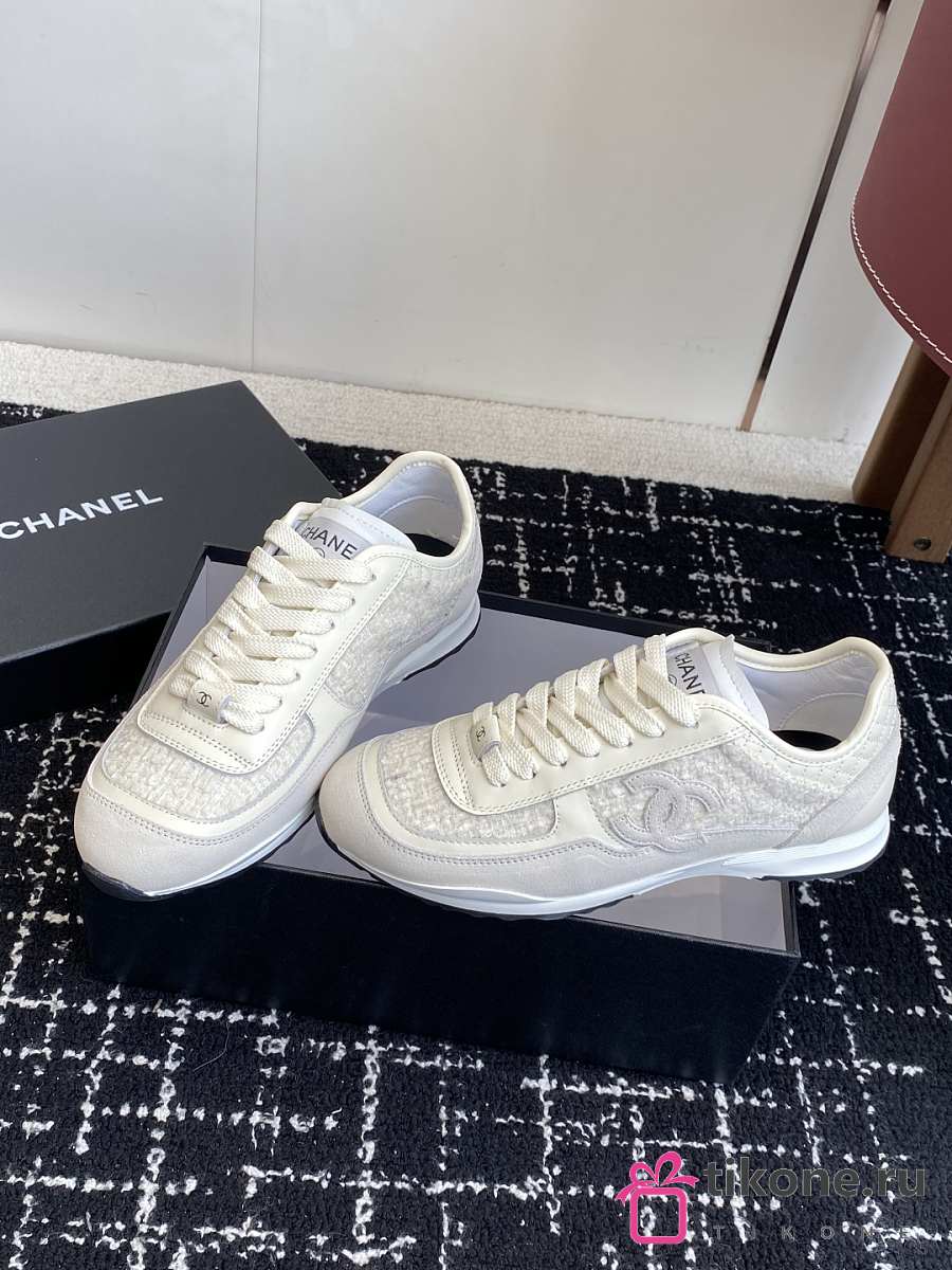 Chanel Sneakers Glittered Tweed Suede & Patent Calfskin White