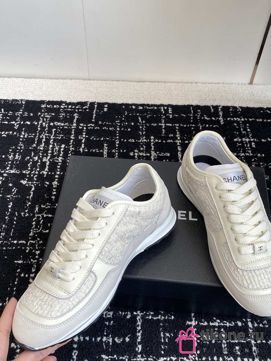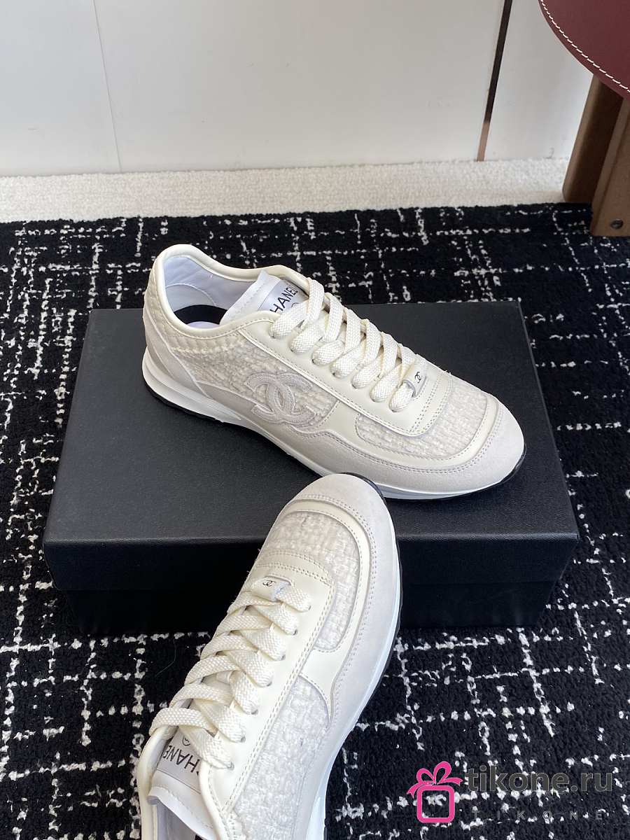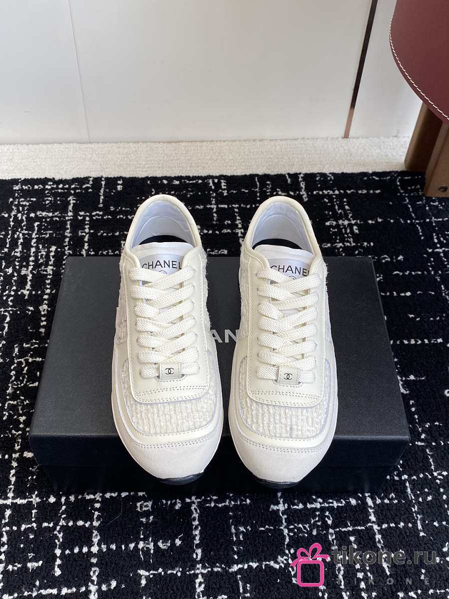 Chanel Sneakers Glittered Tweed Suede & Patent Calfskin White