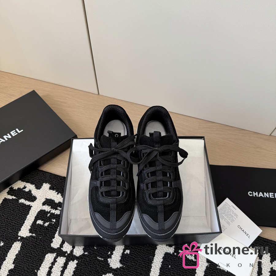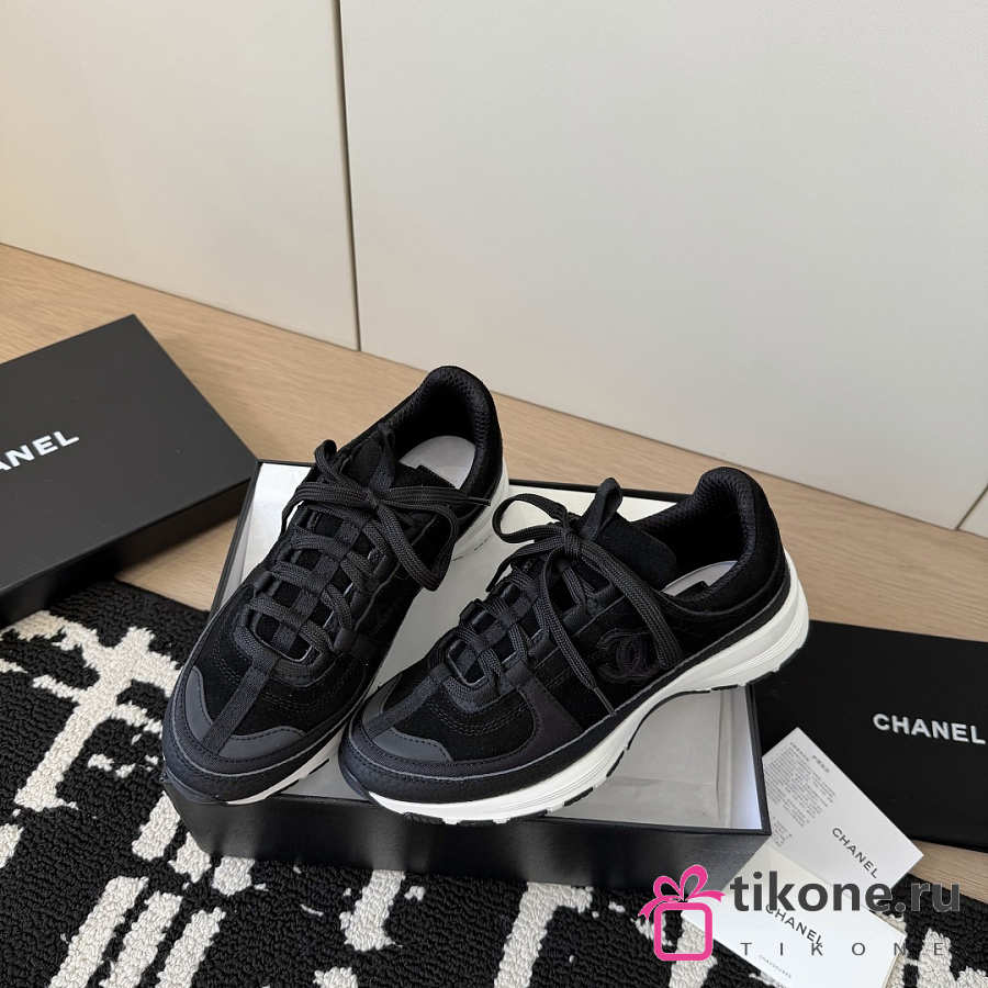 Chanel Sneakers Suede Calfskin Calfskin & Grosgrain Black