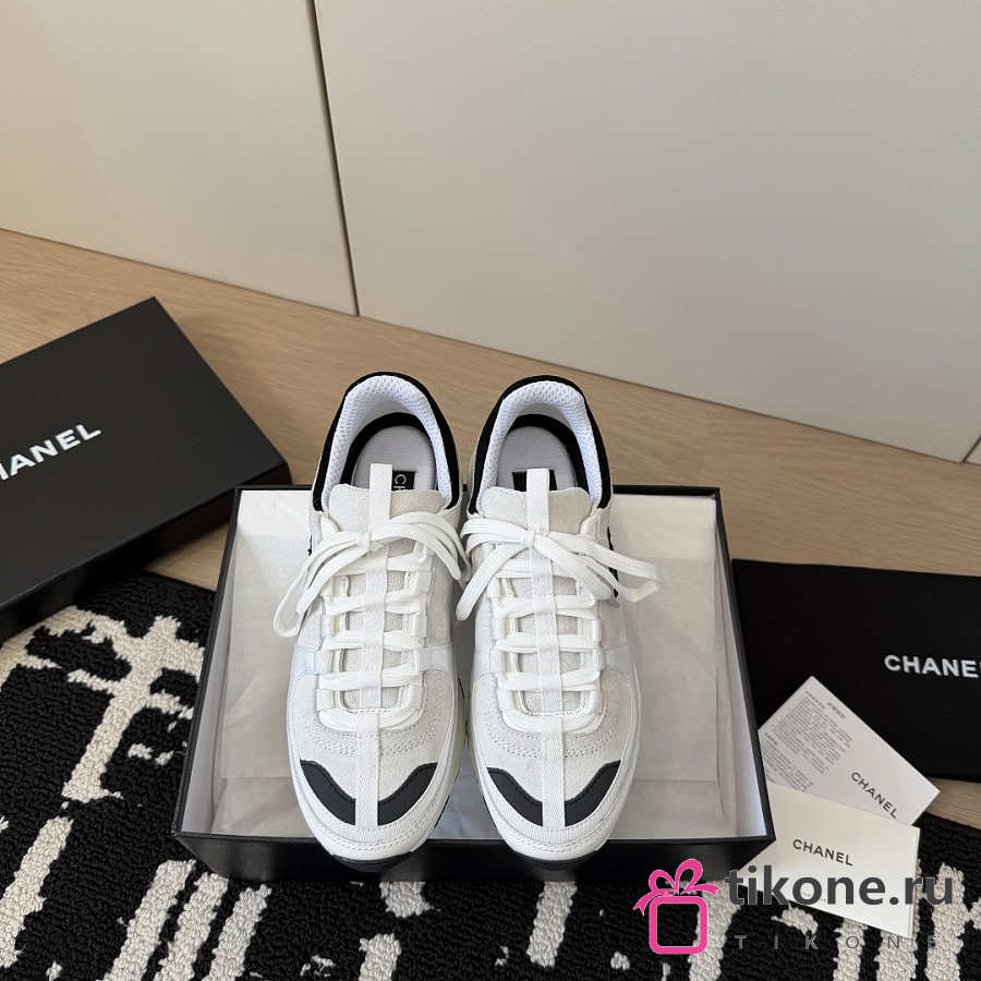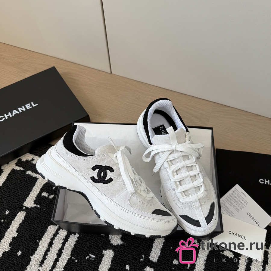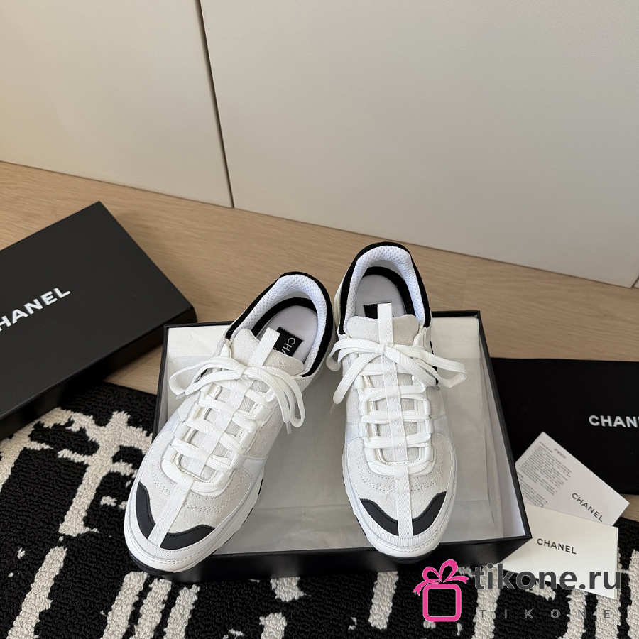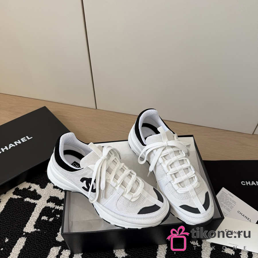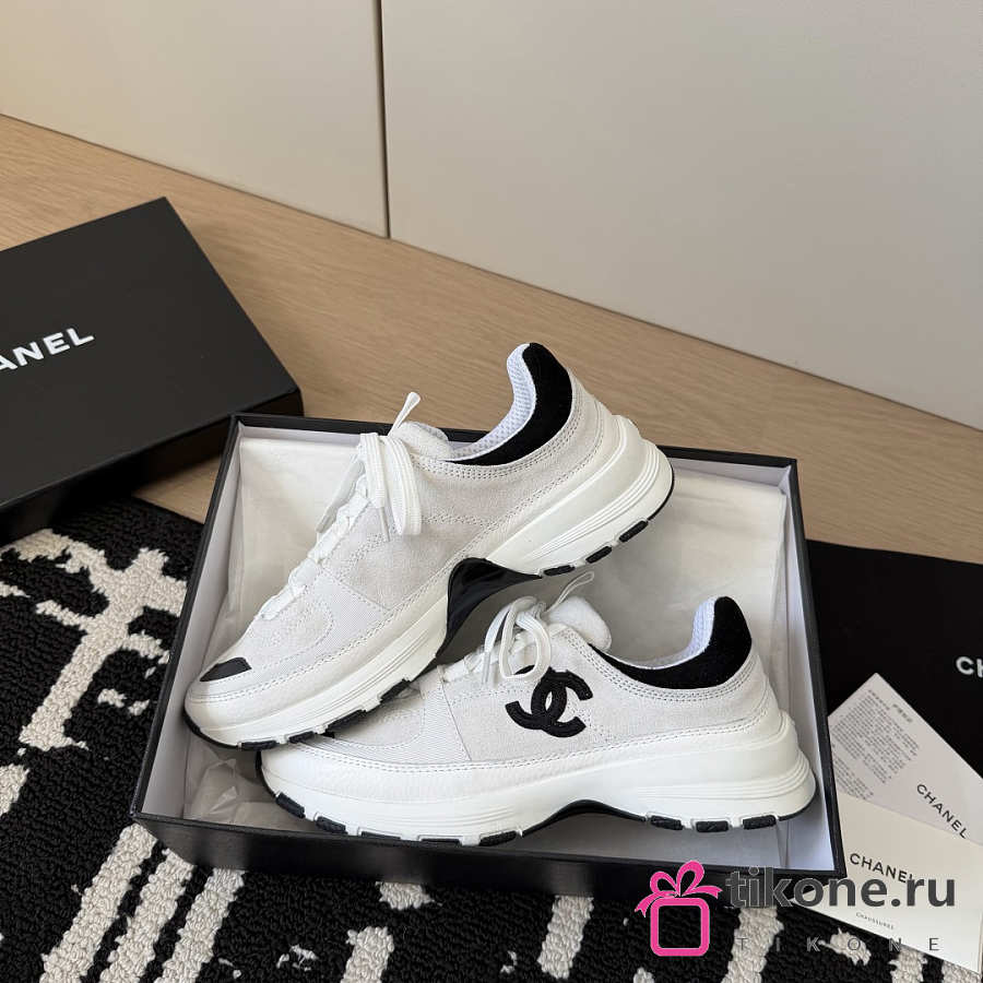 Chanel Sneakers Suede Calfskin Calfskin & Grosgrain White & Black