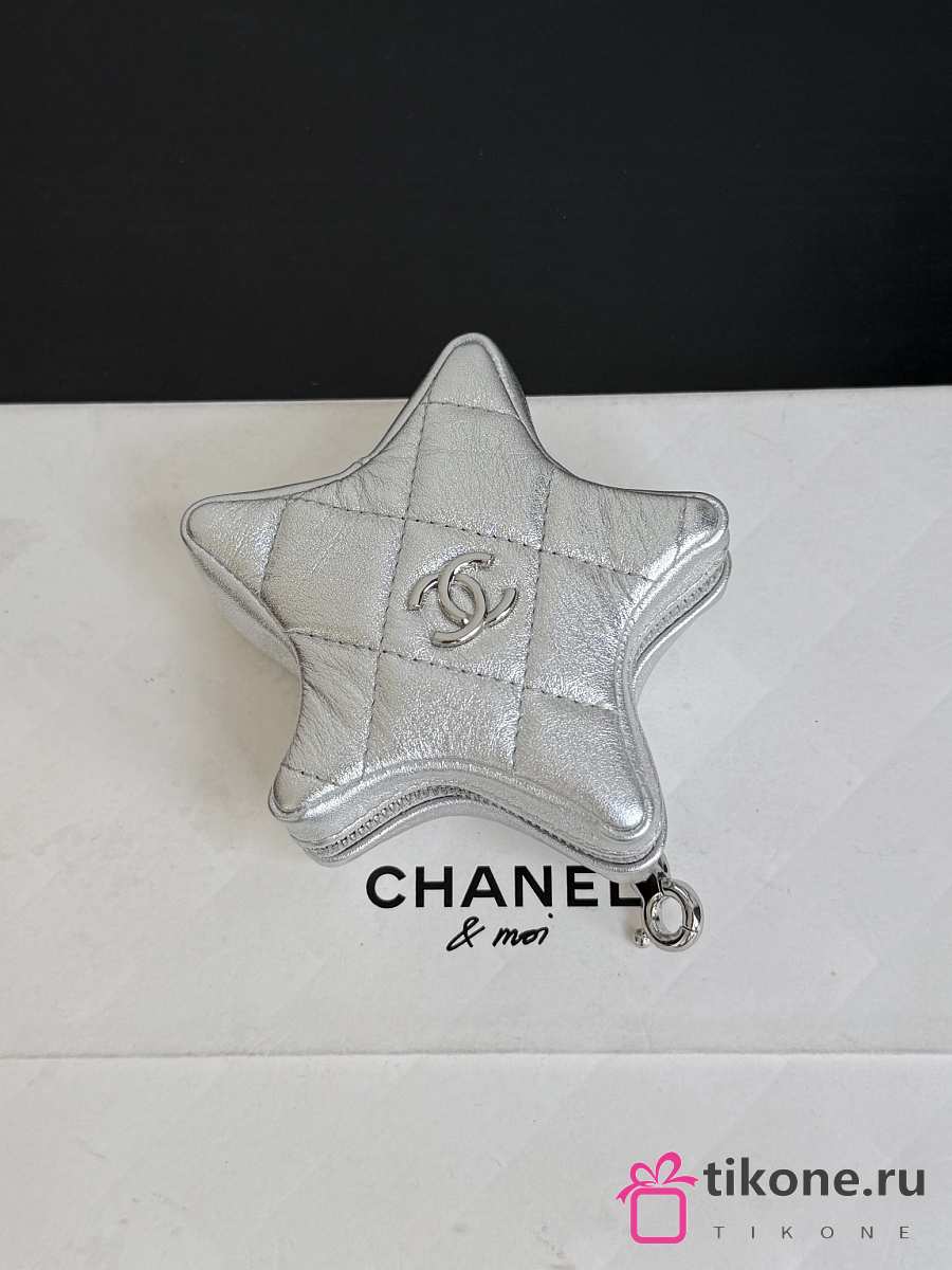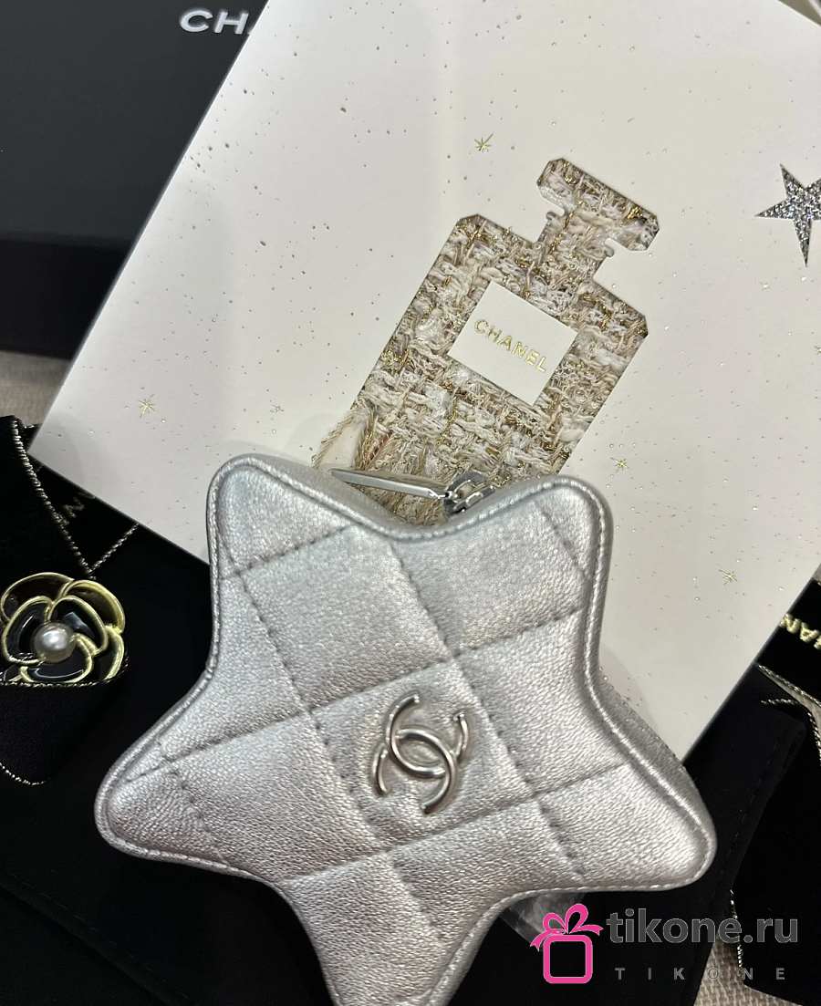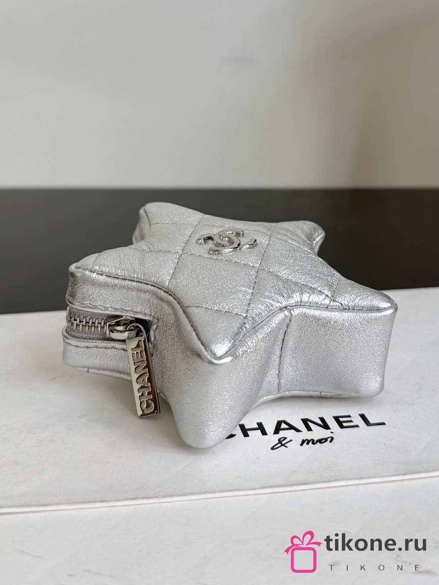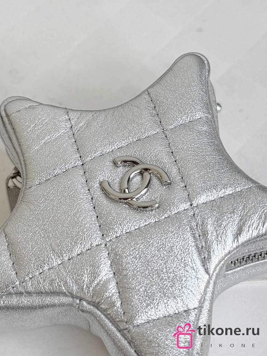 Chanel Star Coin Purse Metallic Lambskin & Silver Tone Metal Silver