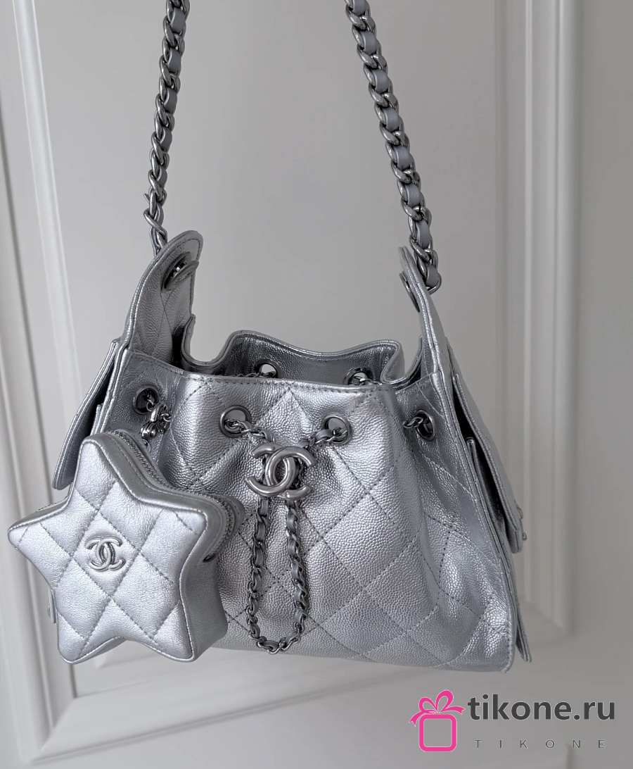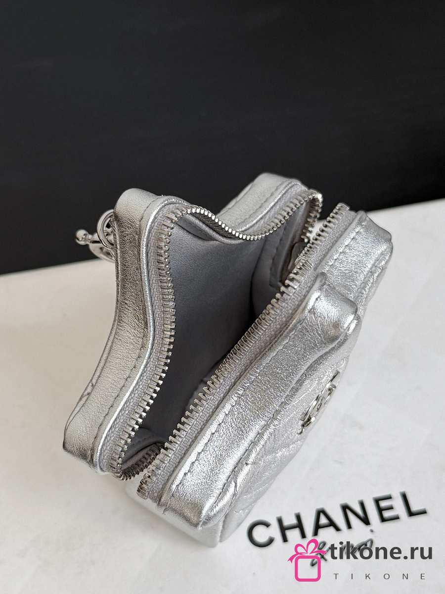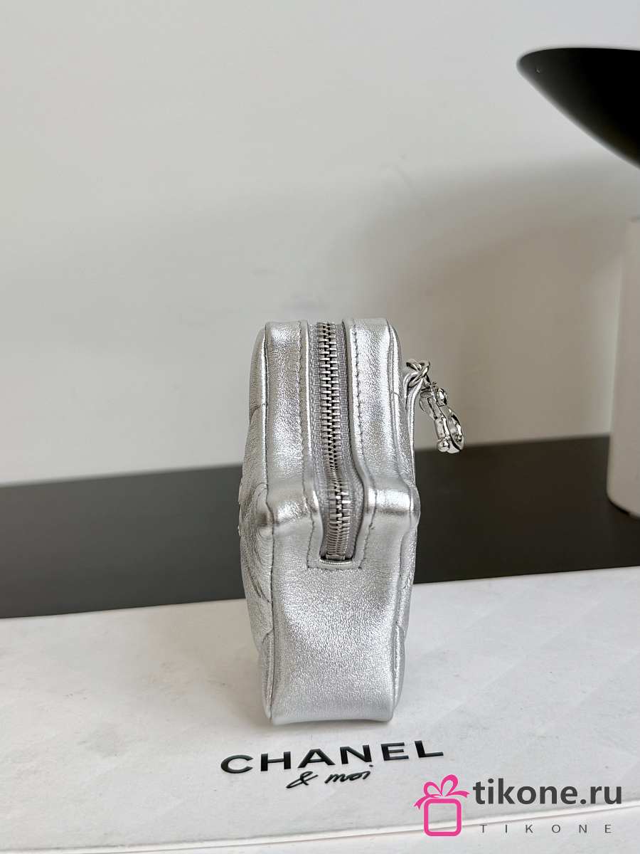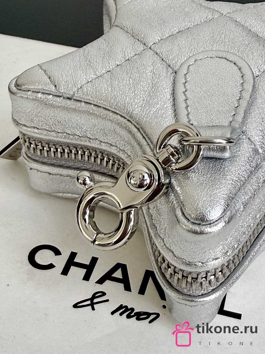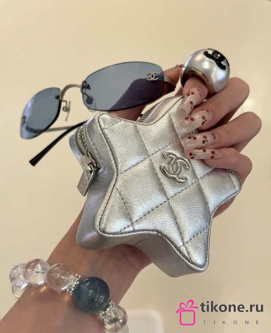 Chanel Star Coin Purse Metallic Lambskin & Silver Tone Metal Silver
